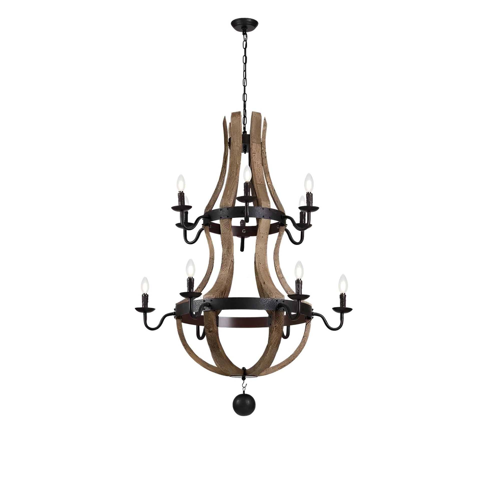 12 Light French Country Style Two Tier Wine Barrel Chandelier