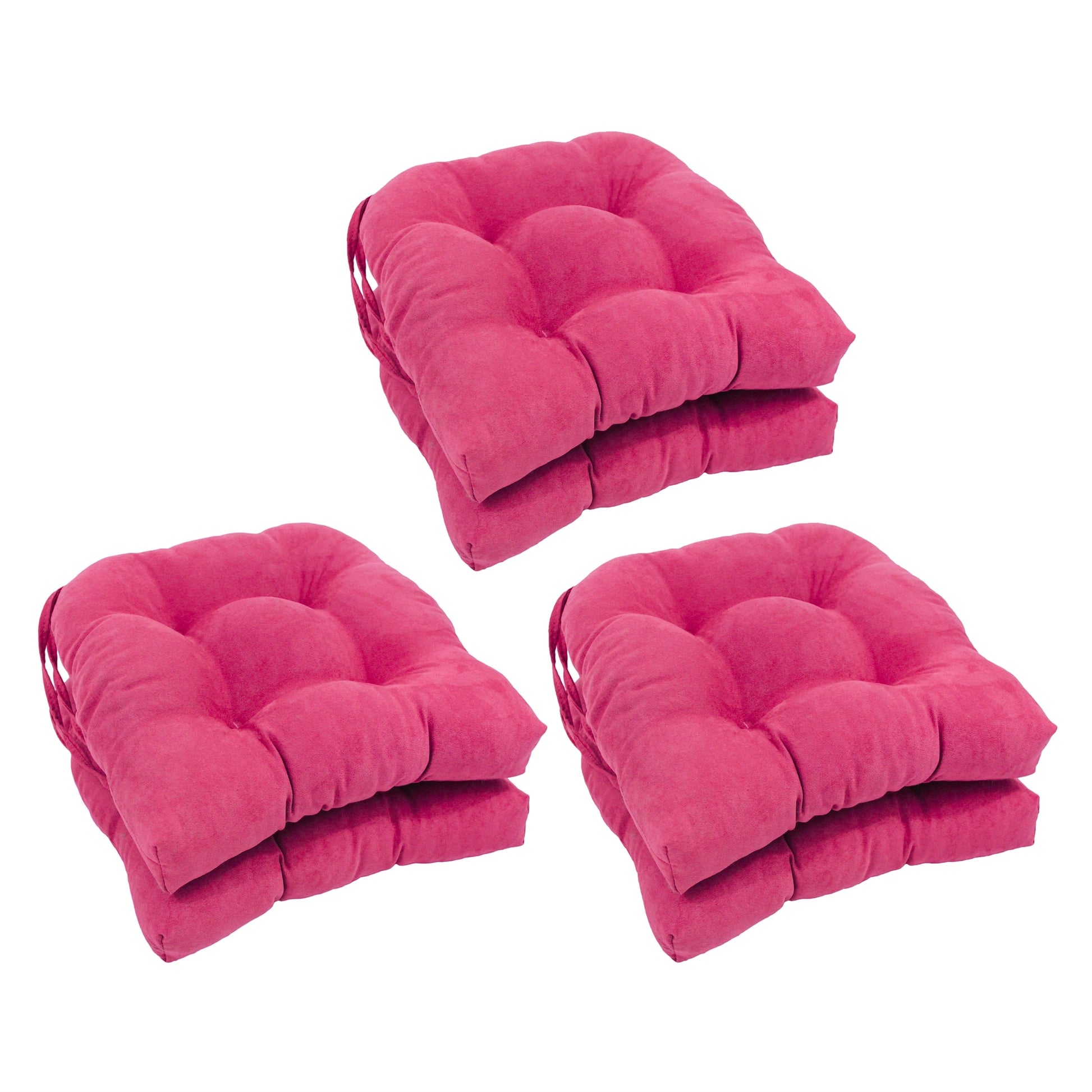 Add extra comfort and style to your indoor seating with these U-shaped microsuede chair cushions. Each cushion is generously filled with a long-lasting polyester fiber fill and features a circular tufted design for maximum comfort. With multiple sets available, you can find the perfect quantity to fit your seating needs. The cushions securely attach to your chairs with fabric ties, making them perfect for dining, accent, or bistro chairs. Plus, with a wide range of premium microsuede color options, you can easily match your home decor.