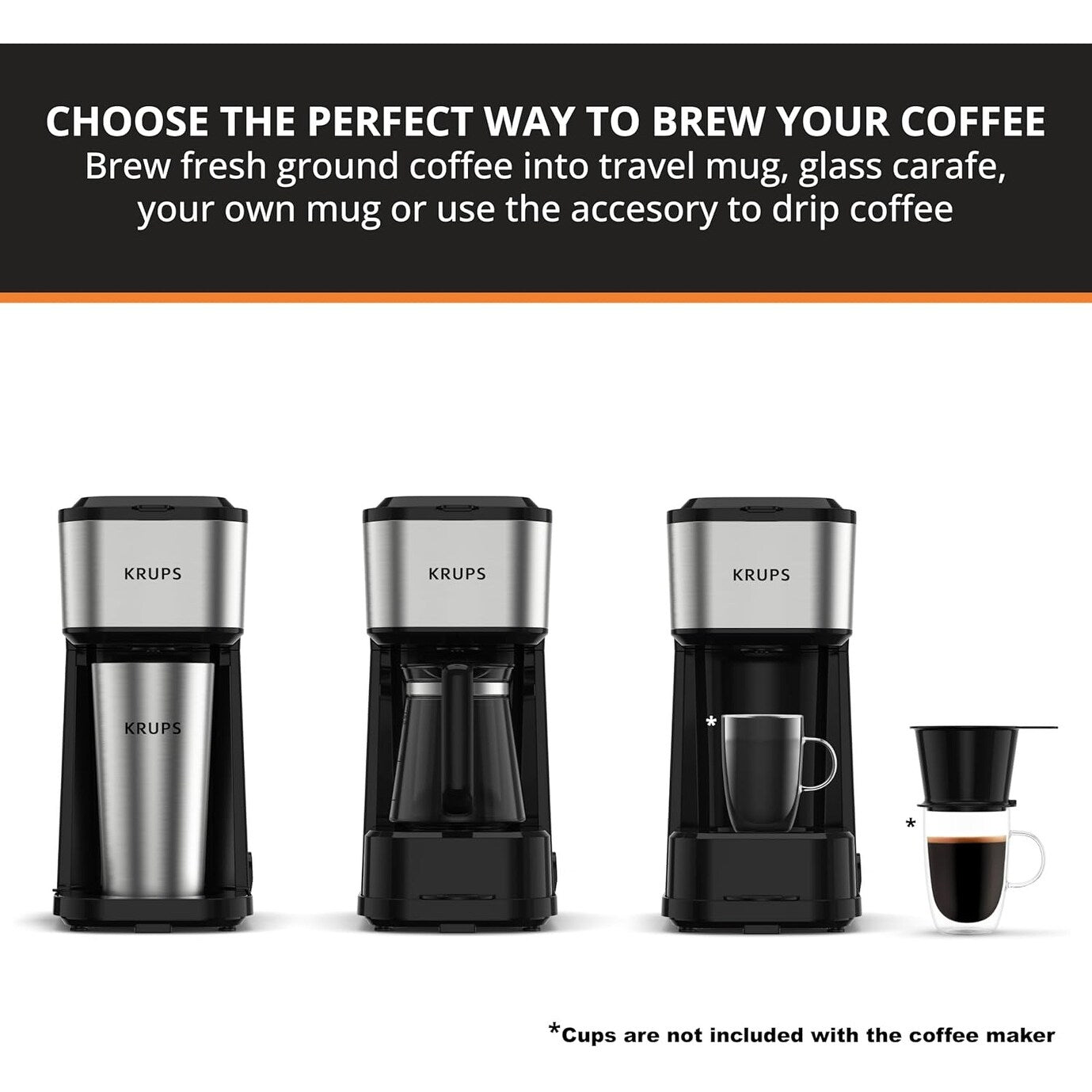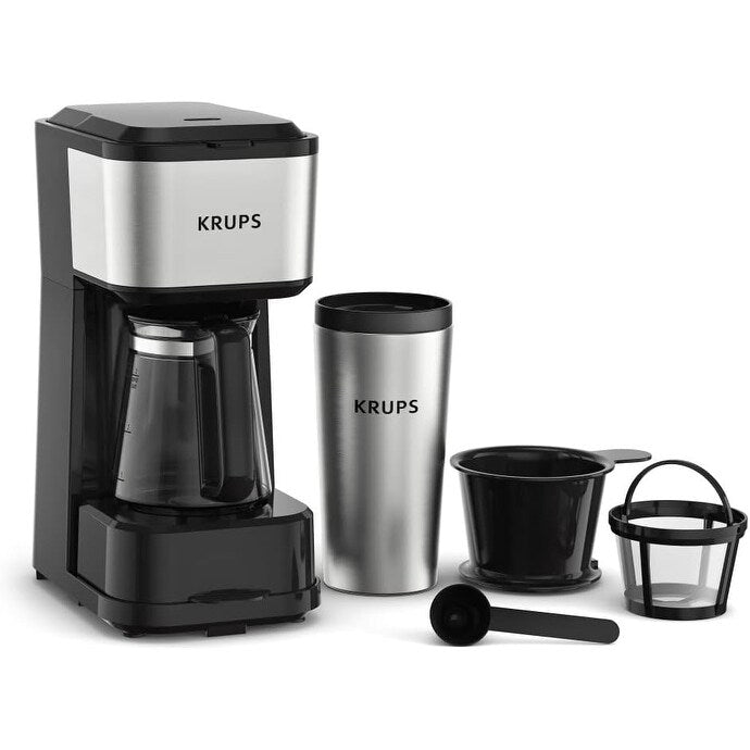 VERSATILE: several options to brew your coffee, brew directly into your tumbler, mug or glass carafe. NO PODS REQUIRED: Simply scoop ground coffee into the included permanent filter and brew. COMPACT DESIGN: Seamless stainless steel coffee maker with minimal footprint. Perfect for small households. DOUBLE WALL CONSTRUCTION THERMAL TRAVEL TUMBLER: This coffee machine included is a double wall stainless steel (inside and out) travel tumbler that holds up to 15oz. Keep your coffee hot for longer. INCLUDES: Simply Brew Multi Serve Brewer coffee maker; stainless steel, 15 fl oz double-walled tumbler; 14fl oz glass carafe; pour-over accessory for manual brewing; permanent filter basket; and measuring spoon. INCLUDES: Simply Brew Multi Serve Brewer coffee maker; stainless steel, 15 fl oz double-walled tumbler; 14fl oz glass carafe; pour-over accessory for manual brewing; permanent filter basket; and measuring spoon.