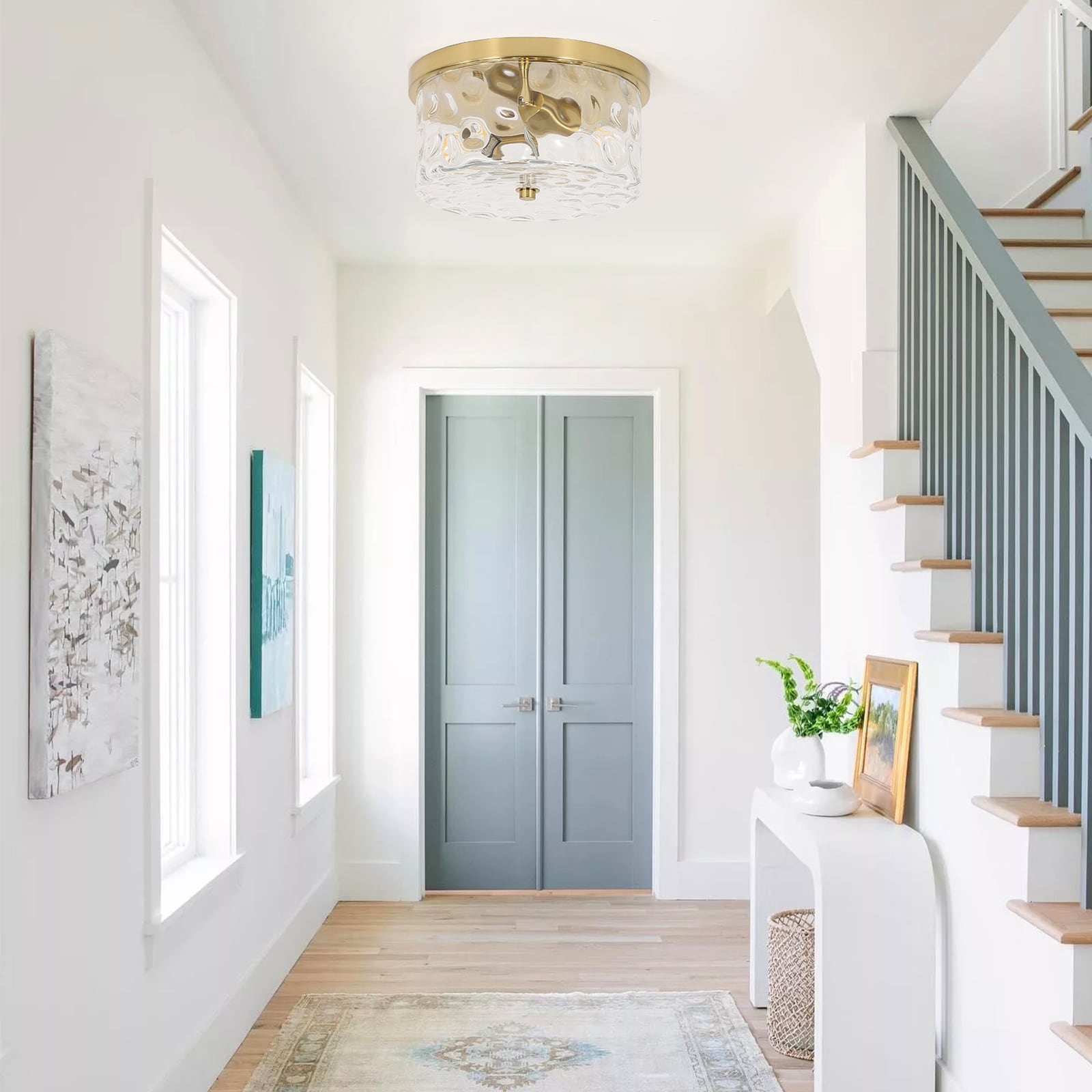- Modern and Farmhouse Design: This flush mount features metal frame with hammered glass lampshade ,provides an appealing effect which perfectly be added to your mordern and farmhouse theme.