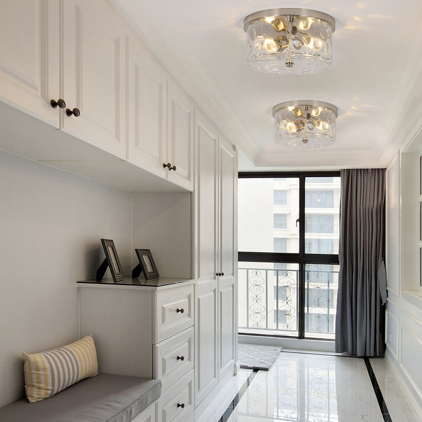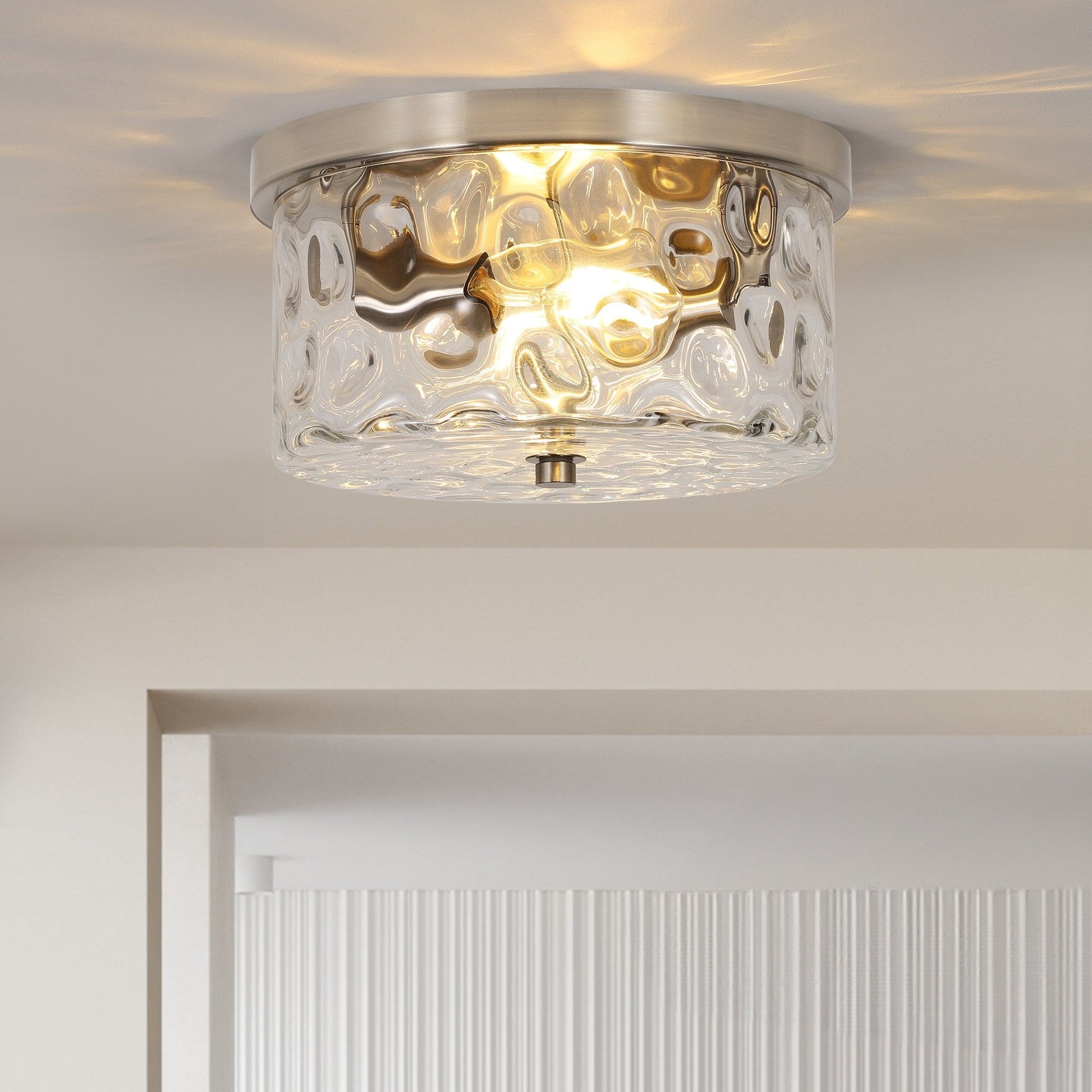 2-Light Flush Mount Ceiling Light with Clear Hammered Glass