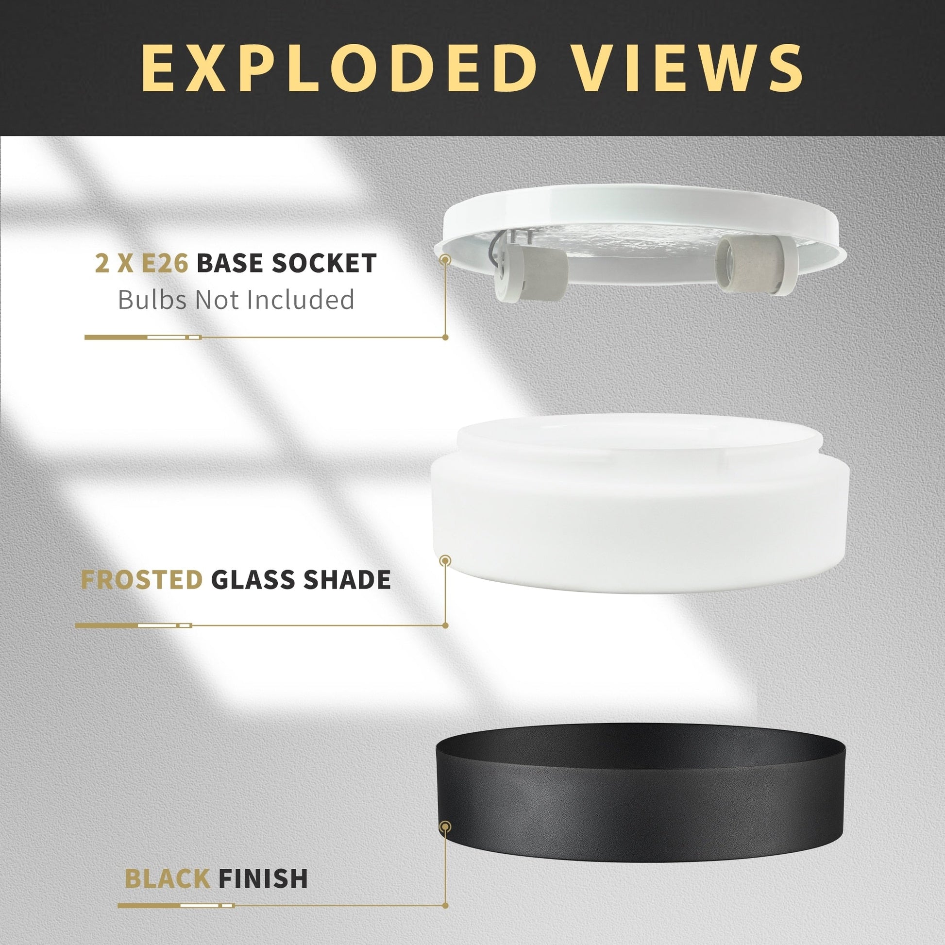 2-Light Flush Mount Ceiling Light with Frosted Glass Shade - 12.0 In. L X 12.0 In. W X 3.5 In. H