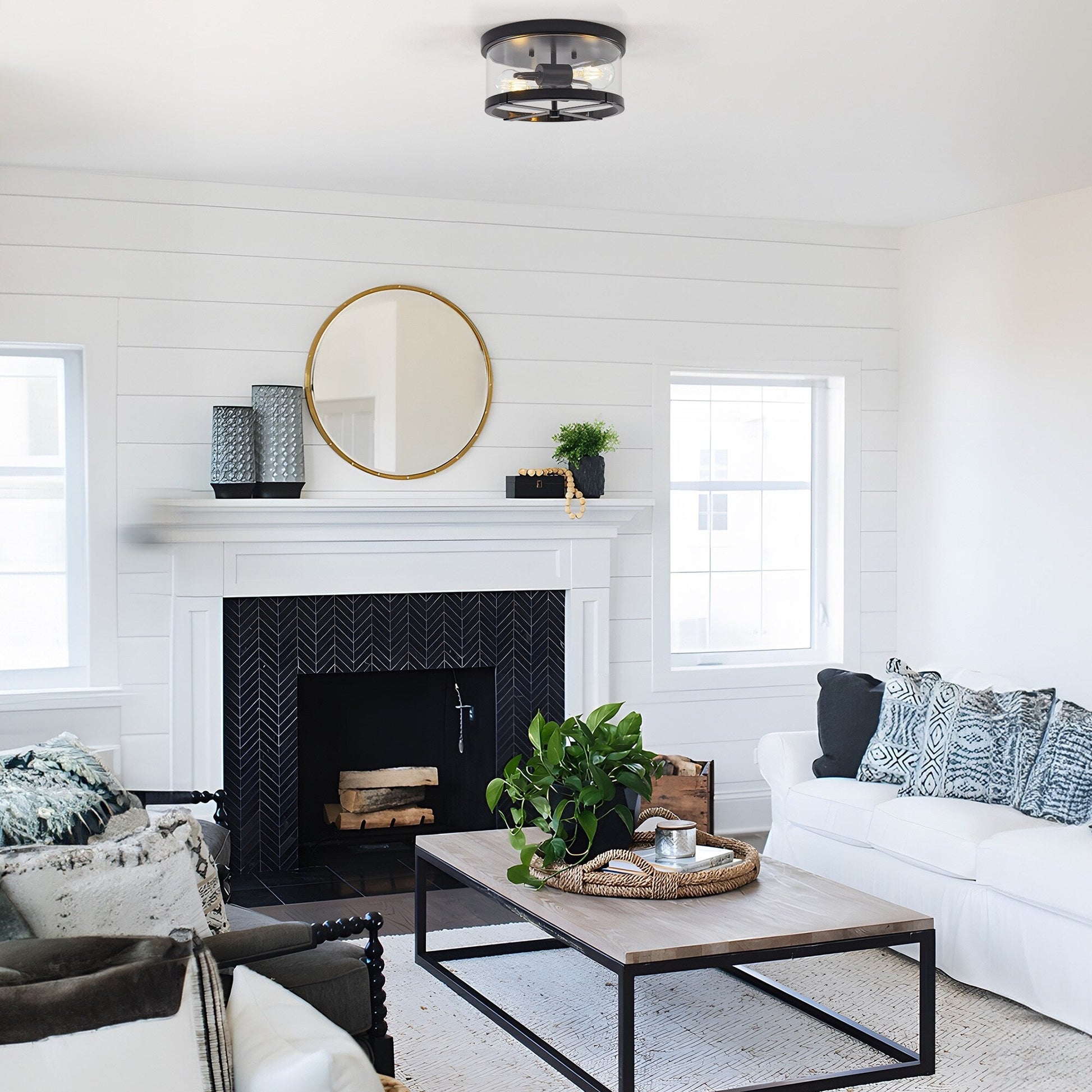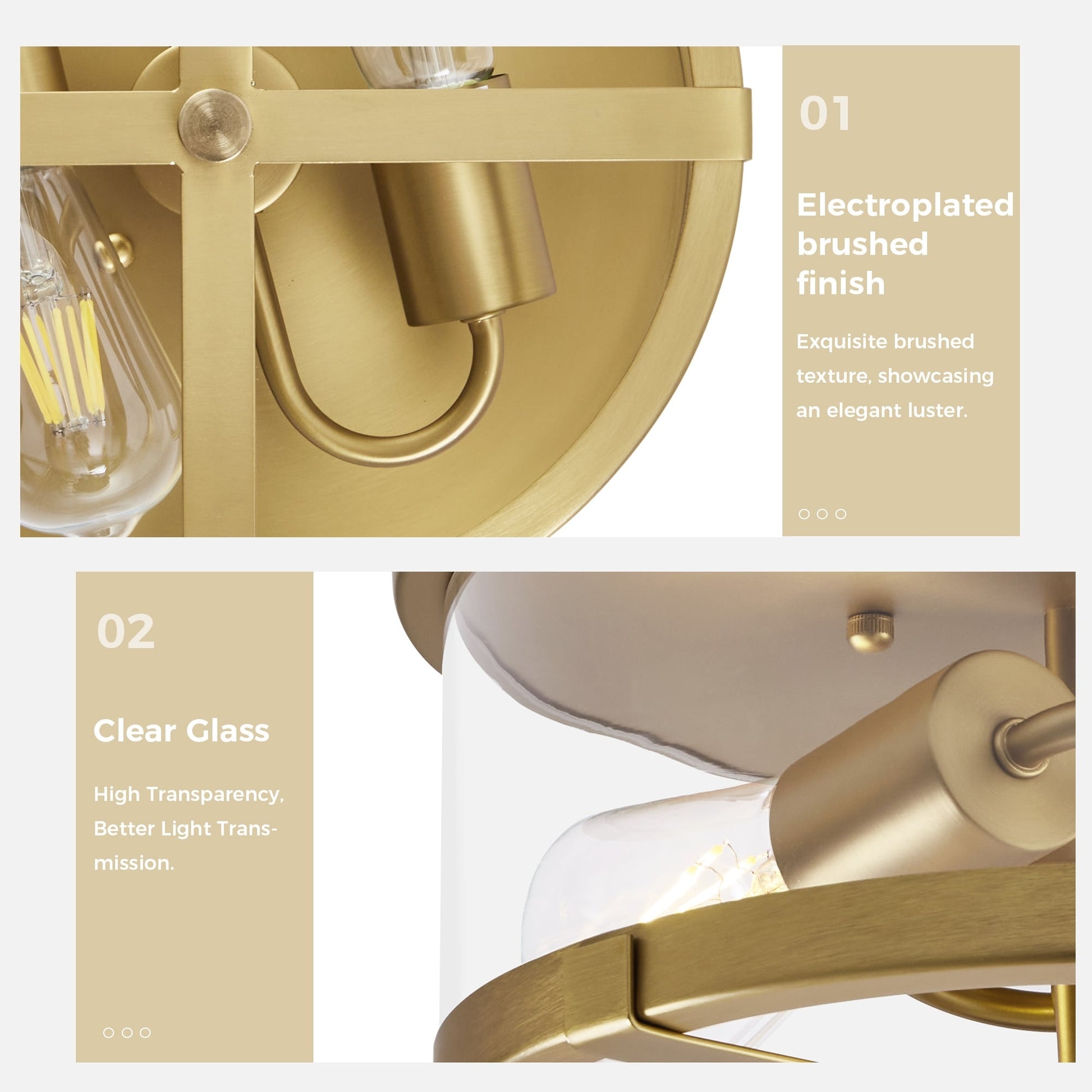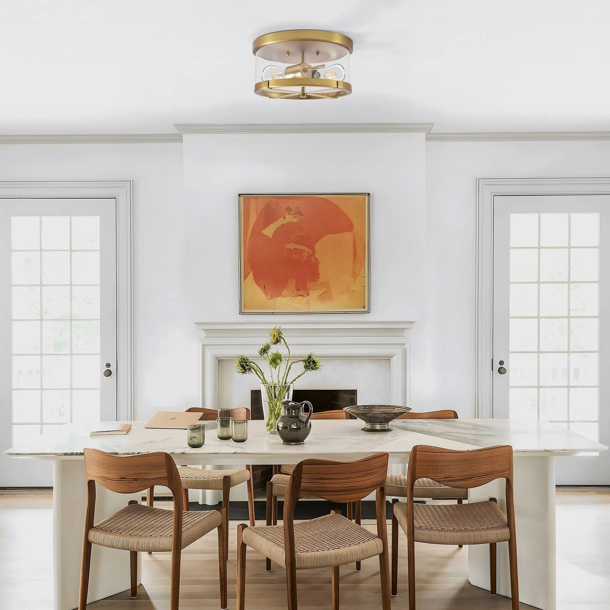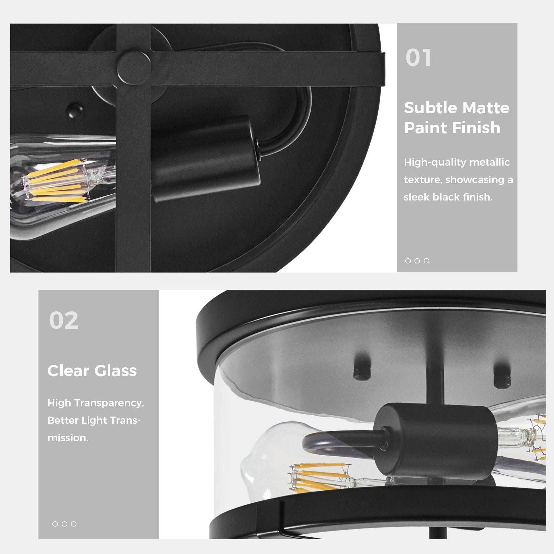 2-Light Flush Mount Clear Glass Ceiling Light with Metal Frame