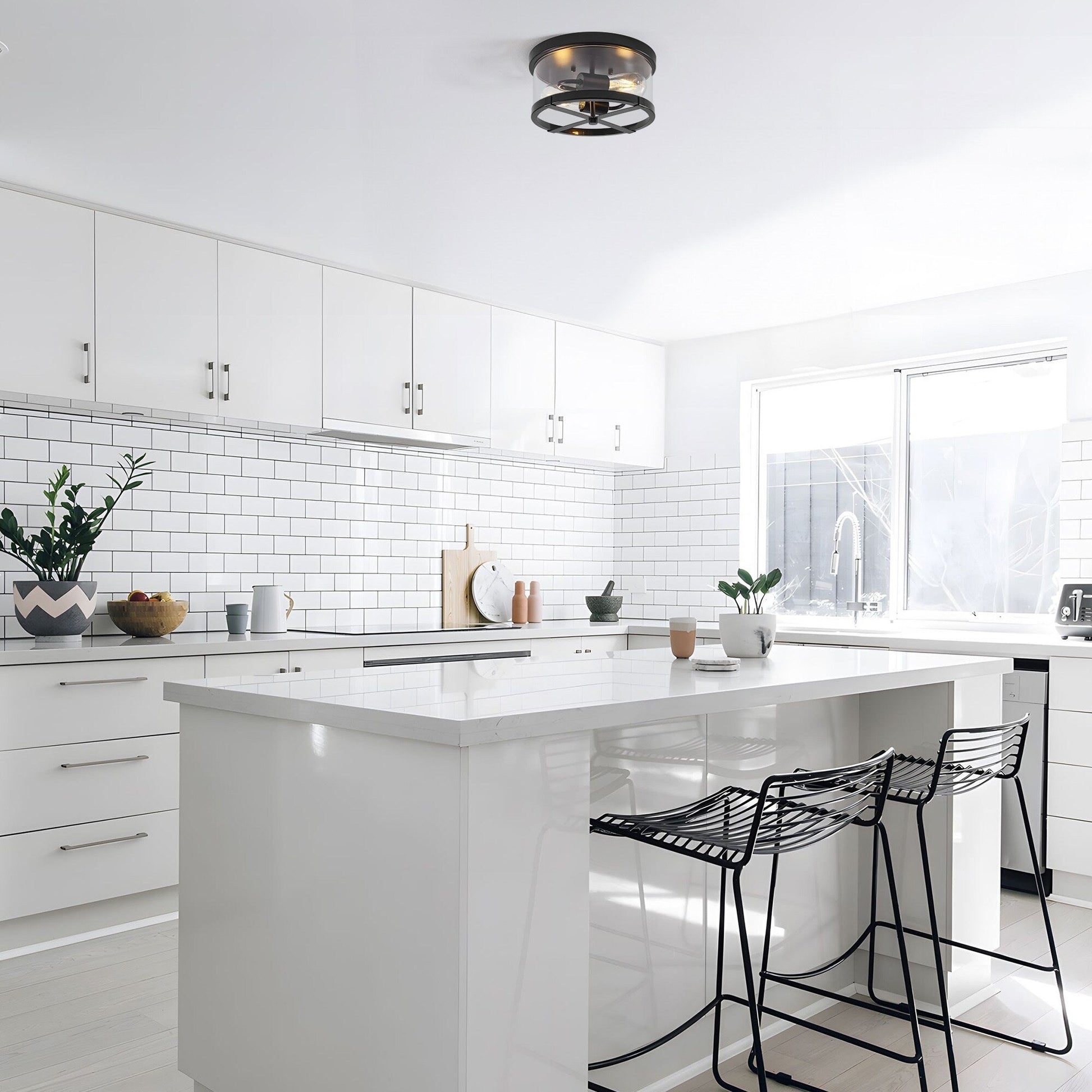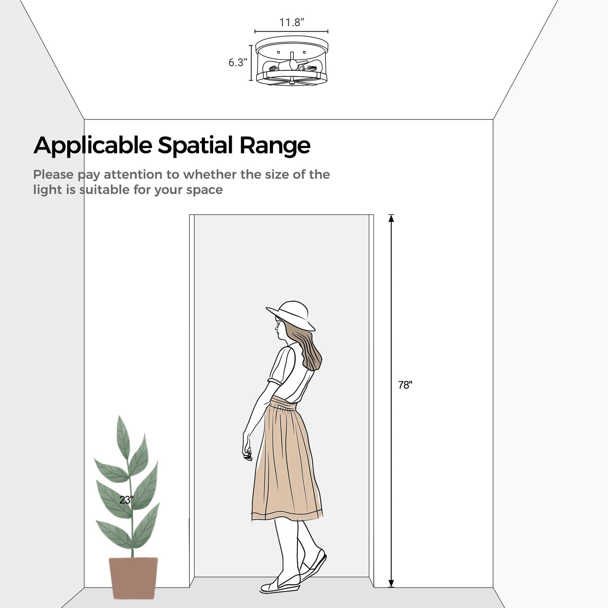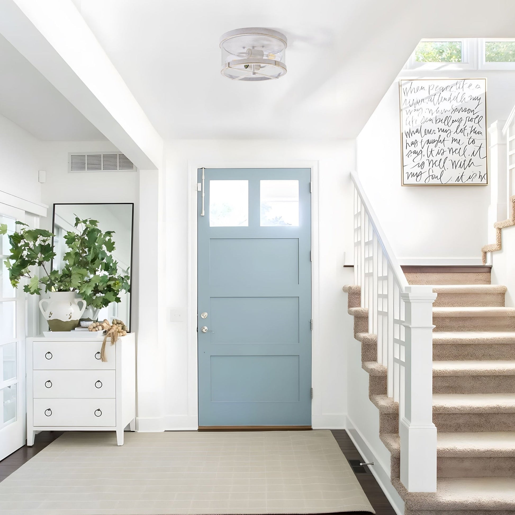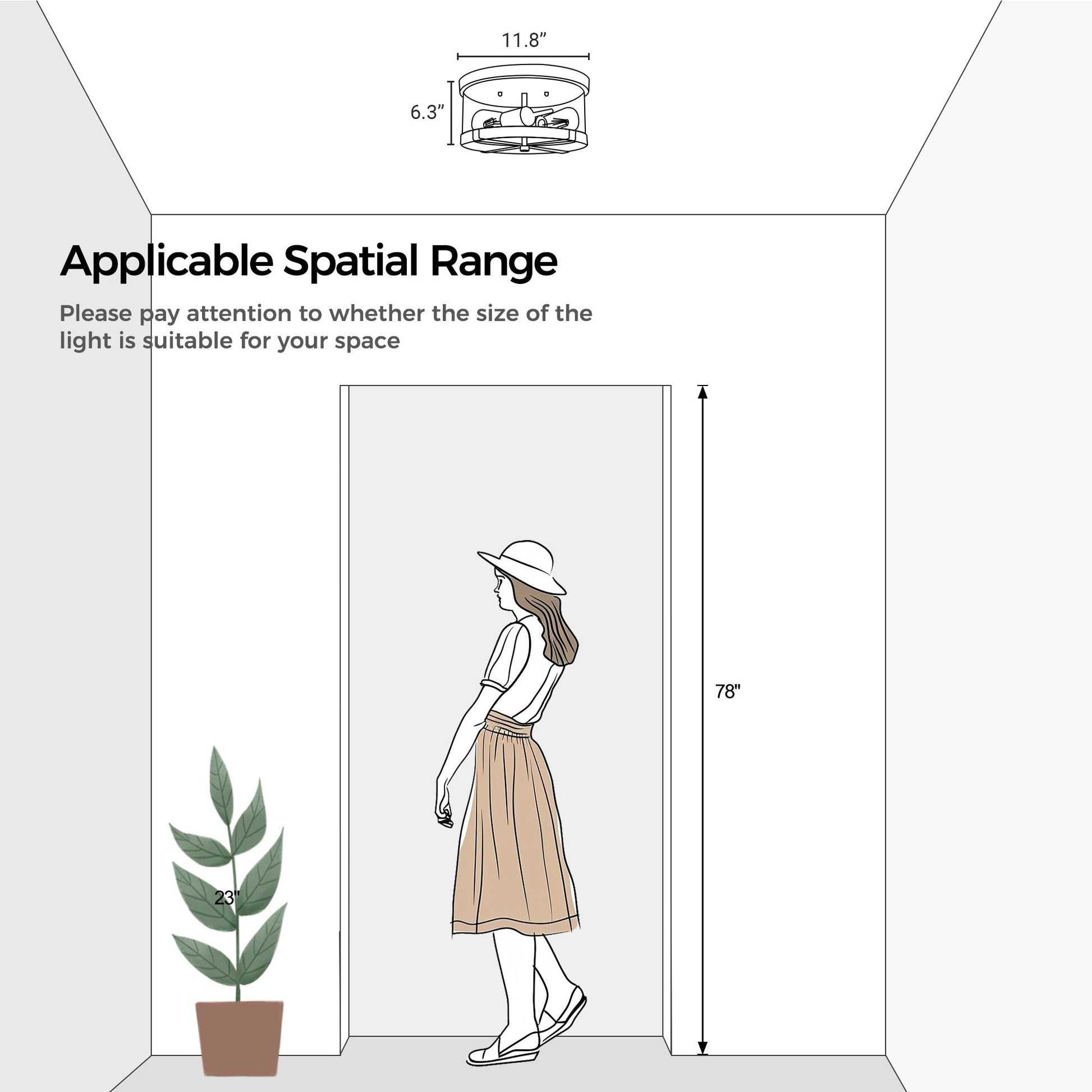 Elevate your space with this stunning 2-light flush mount ceiling light.It features a sleek and stylish design, making it perfect for installation in any spaces.It features clear glass on side, with the bottom left open (without glass) to emit captivating light.The outer part has a metal base and a decorative metal frame at the bottom. Crafted with high-quality materials to ensure durability and long-lasting use. 4 colors selectable suitable for your interior decor. Whether it's for the foyer, laundry room, bedroom, or hallway, this flush mount light adds a touch of modernity and sophistication to your space.