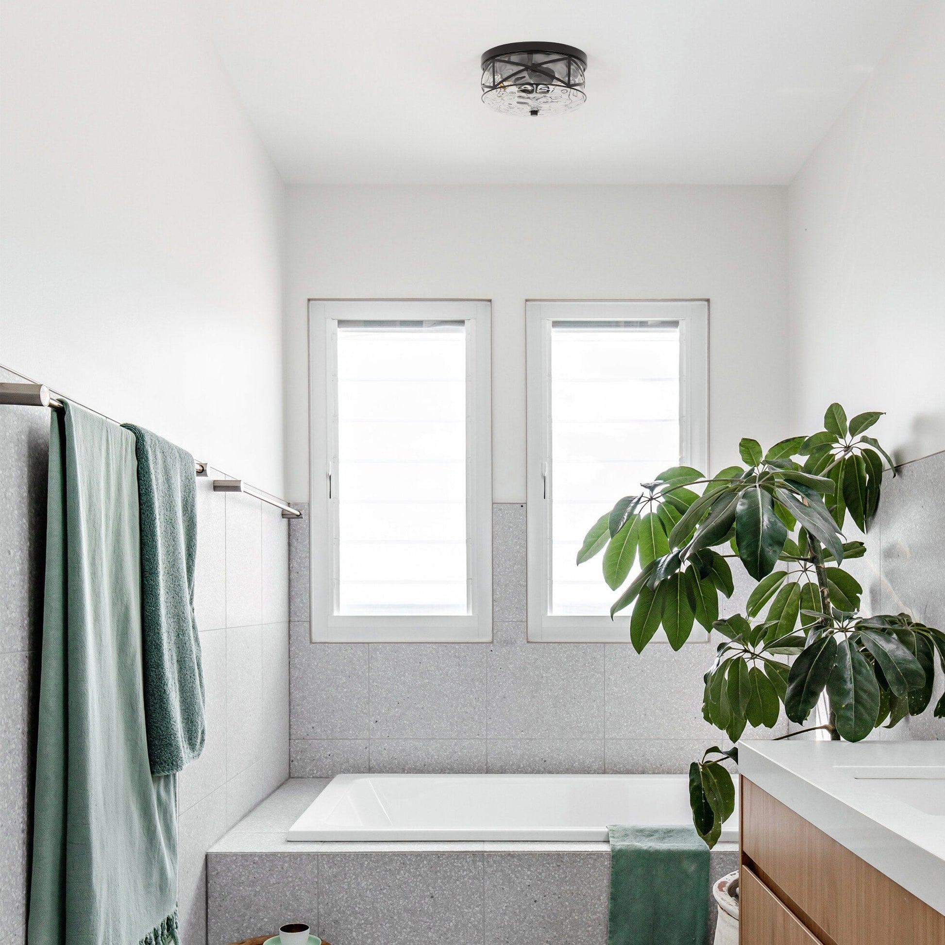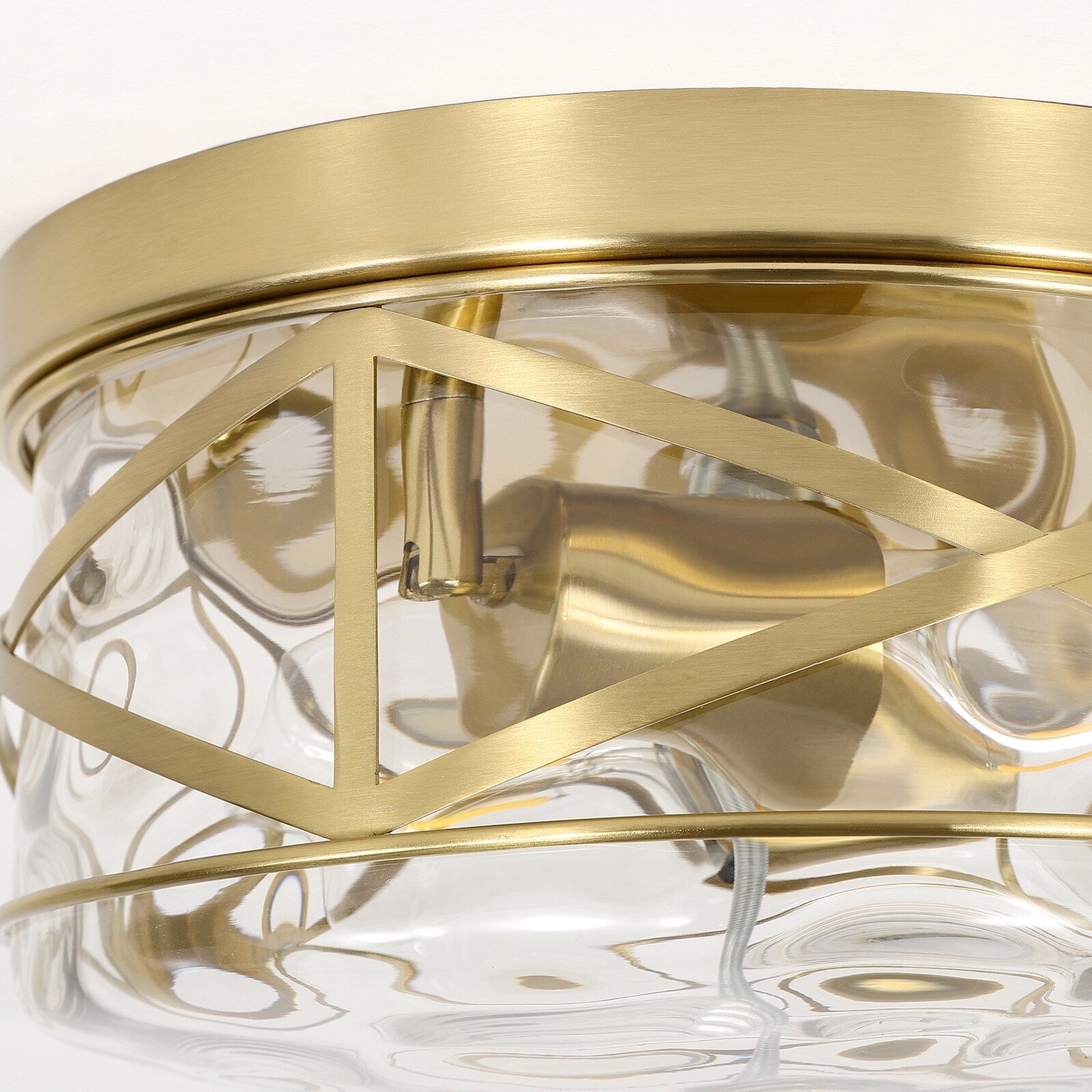 2-Light Flush Mount Glass Ceiling Light with Metal Frame