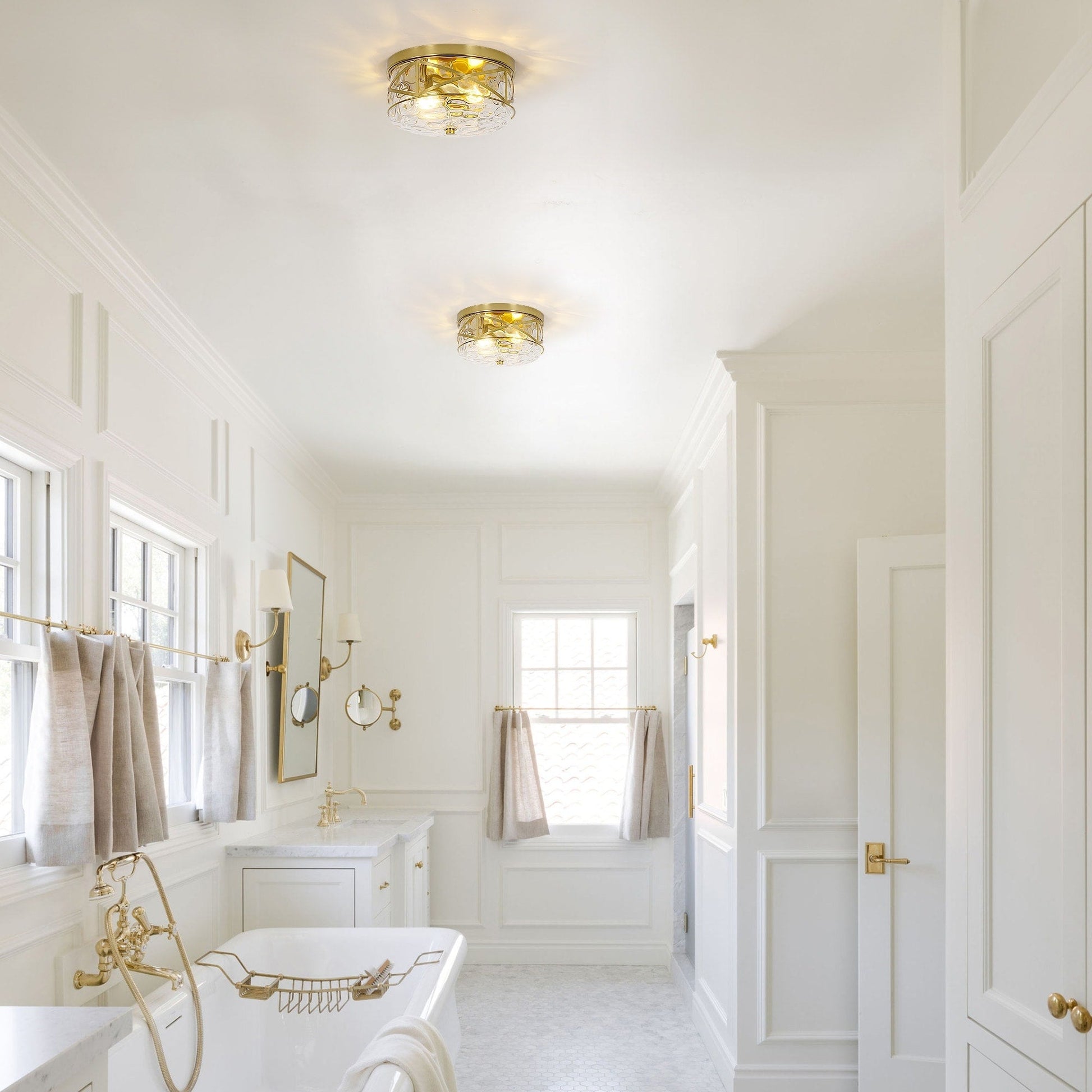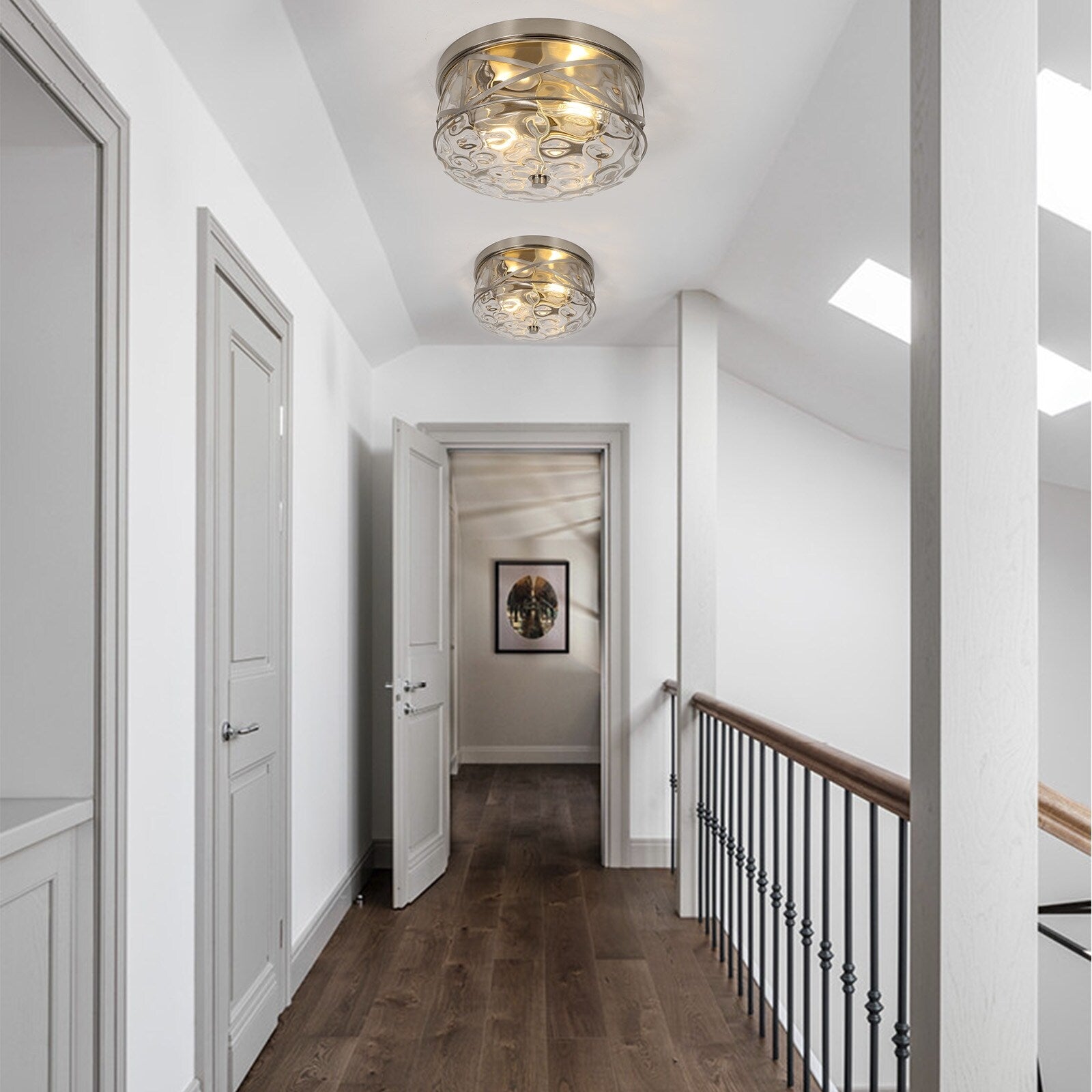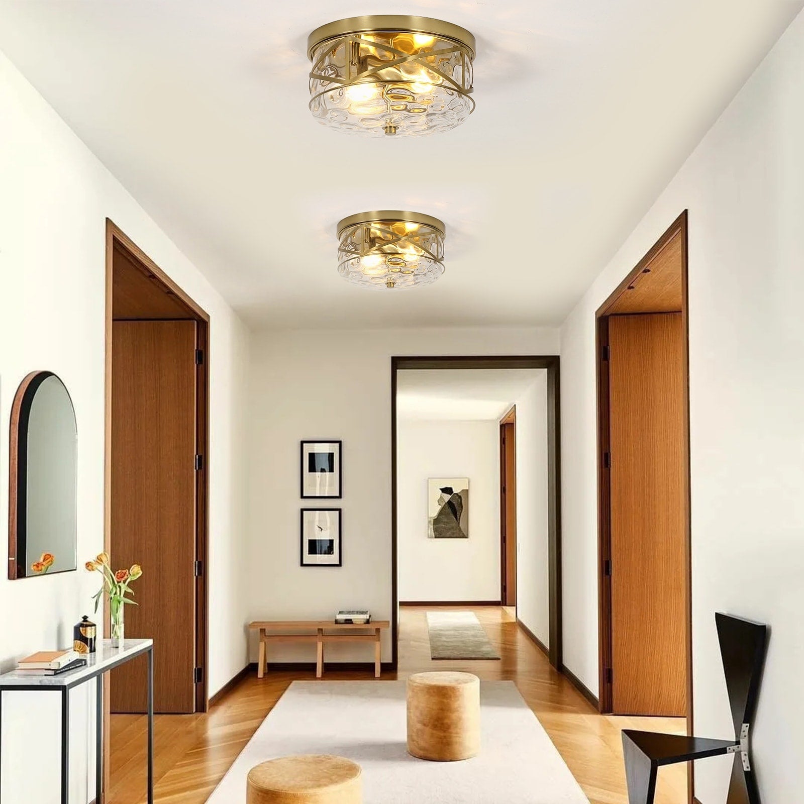 The glam flush mount ceiling light adopts high-quality metal and beautifully crafted hammered glass, a great addition to your modern farmhouse decors. It shapes an enclosed glass shade, embraced by regular rhombic patterns, which will present gorgeous light shadows while providing enough illuminance in the dark, adding classic and timeless appeal to your house.Perfect for your hallway, bedroom, entryway, foyer, etc.