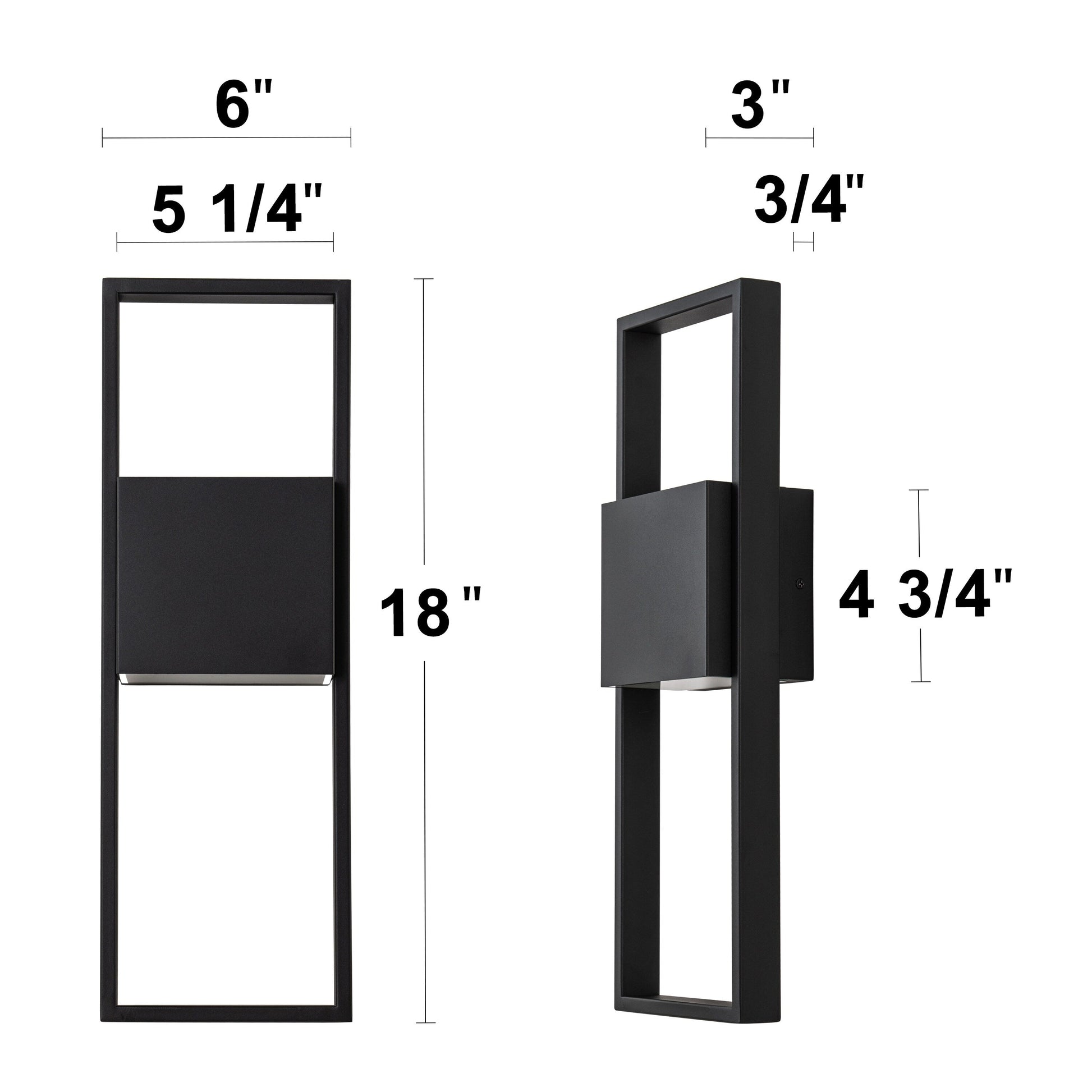 This outdoor wall light illuminates your porch or deck with a playful, modern aesthetic. Crafted from metal, it showcases a matte black finish that's weather-resistant, so it stands up to the elements. This light features an open, rectangular frame and a rectangular sconce with frosted glass that artfully diffuses the uplight and downlight. Integrated with energy-saving LED module and delivers 2000 Lumens of illumination. This outdoor light is rated for wet locations, making it the right lighting fixture to live outdoors and indoors.