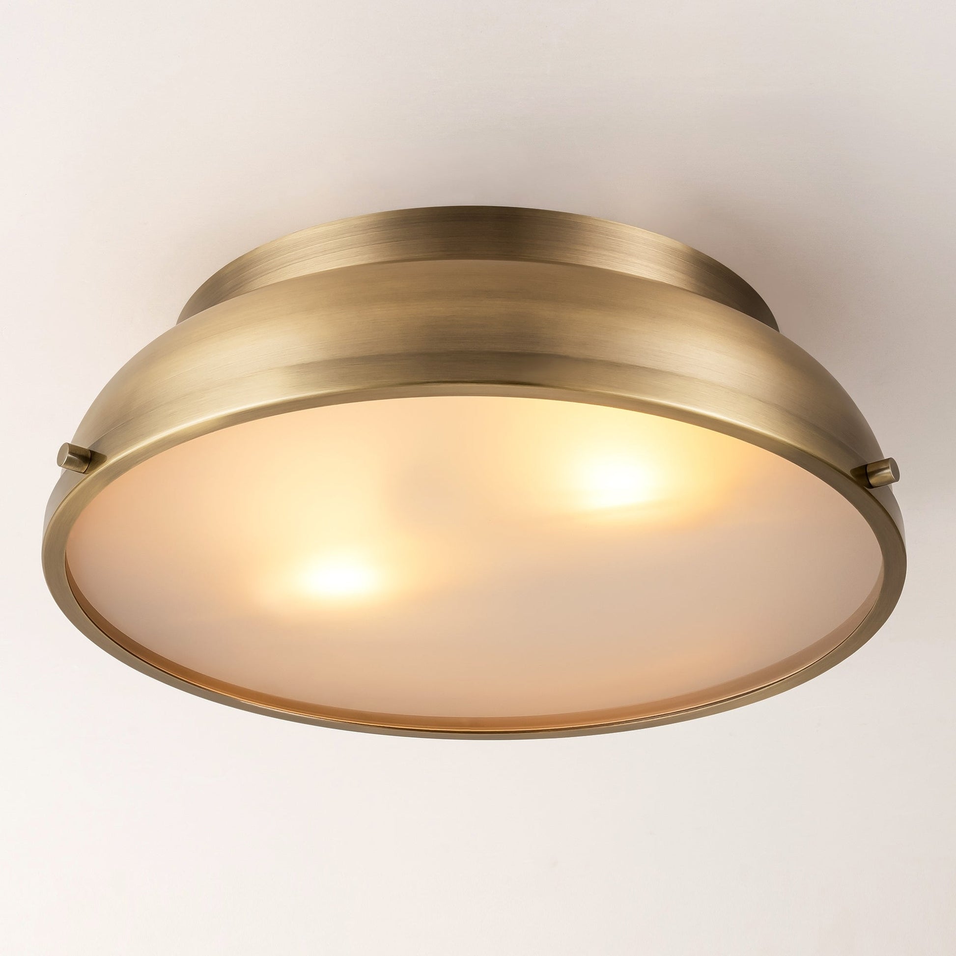 2-Light Mid-Century Modern Aged Bronze Frosted Glass Cylinder Drum Dome Flush Mount Ceiling Lights - Aged Bronze