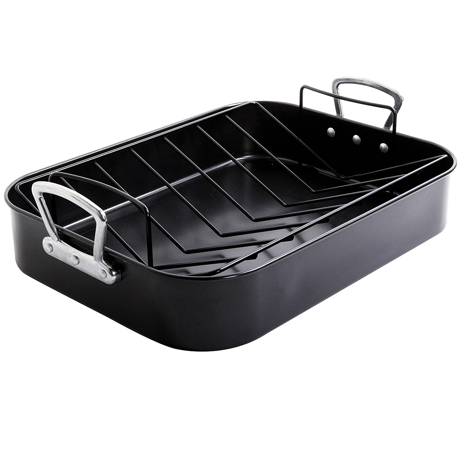 This set includes one 16.5-inch Turkey Roaster with metal rack. The Xylan nonstick interior makes for a quick clean up. Elegant French Handles will make you feel like a professional chef. Carbon steel construction makes this turkey roaster strong and durable.Hand wash onlyCarbon steel construction makes this turkey roaster strong and durable.Item Dimensions: 16.50x12.50x5 - 2.95LBSHand wash only