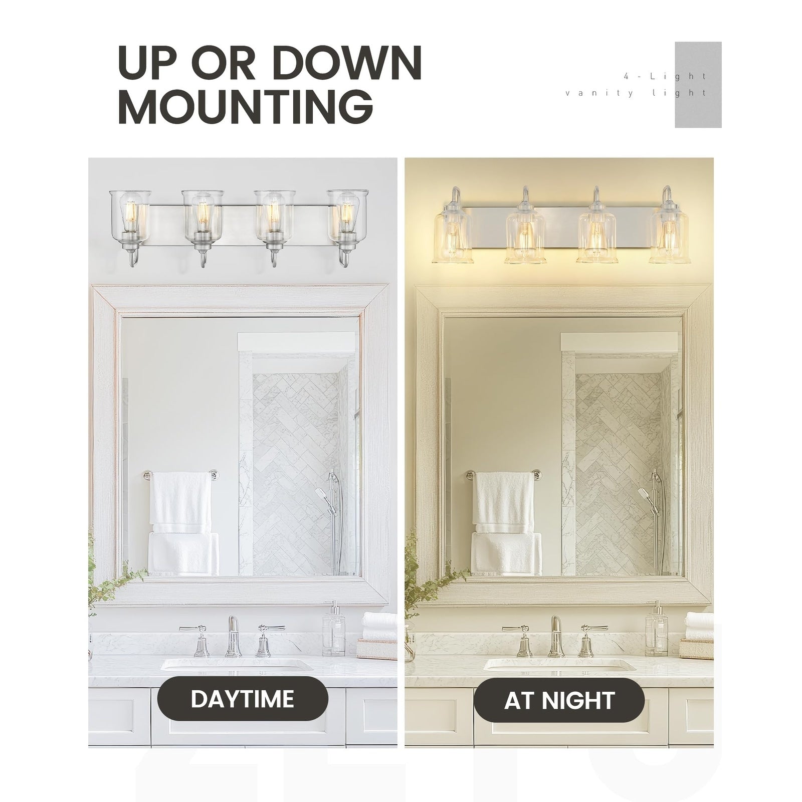 - 【UP/DOWN EASY INSTALLATION】: Hard wired. This bathroom vanity wall sconce can be mounted facing upward or downward to suit your needs. Includes all mounting hardware for quick and easy installation.