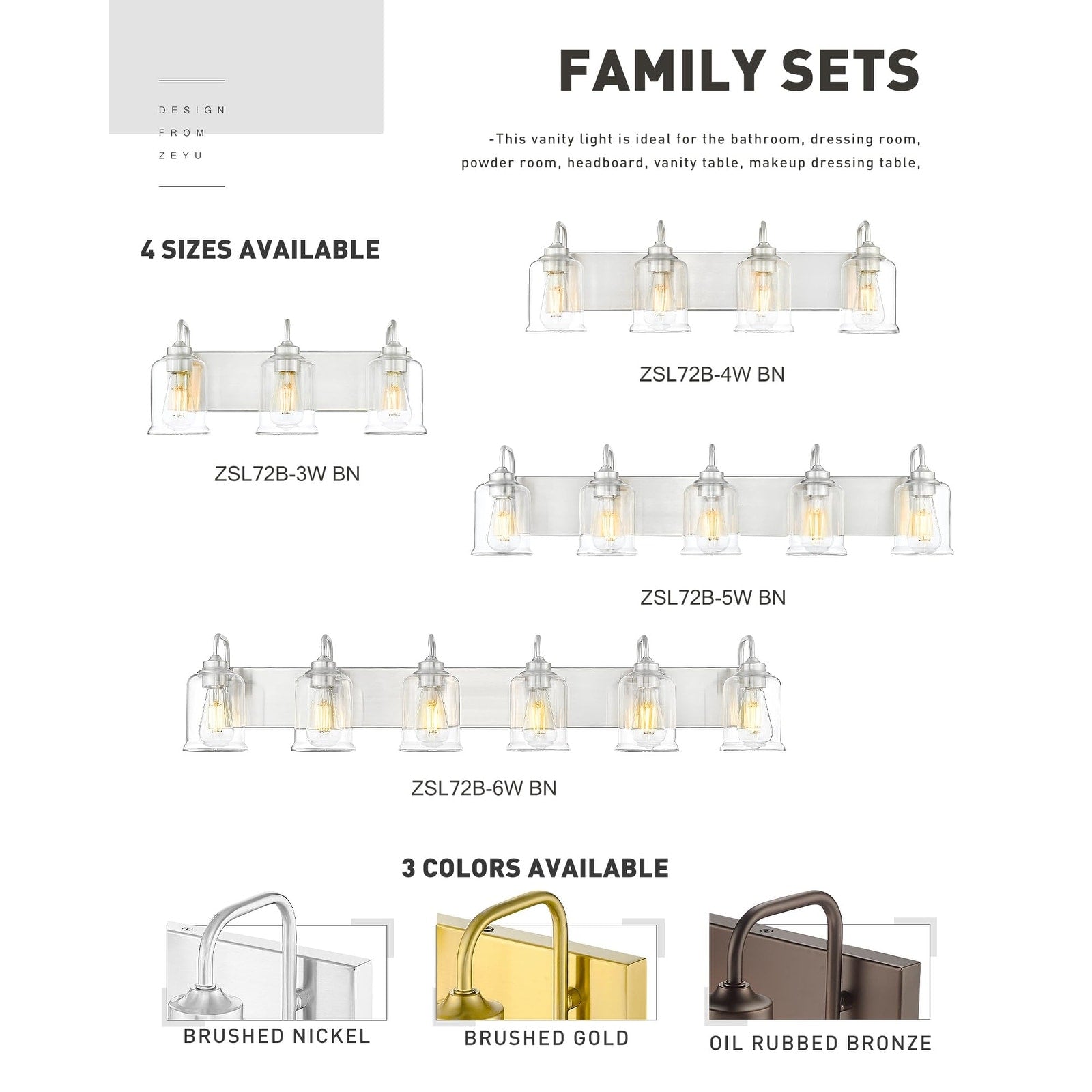 3/4/5/6-Light Modern Vanity Lights Over Mirror for Bathroom