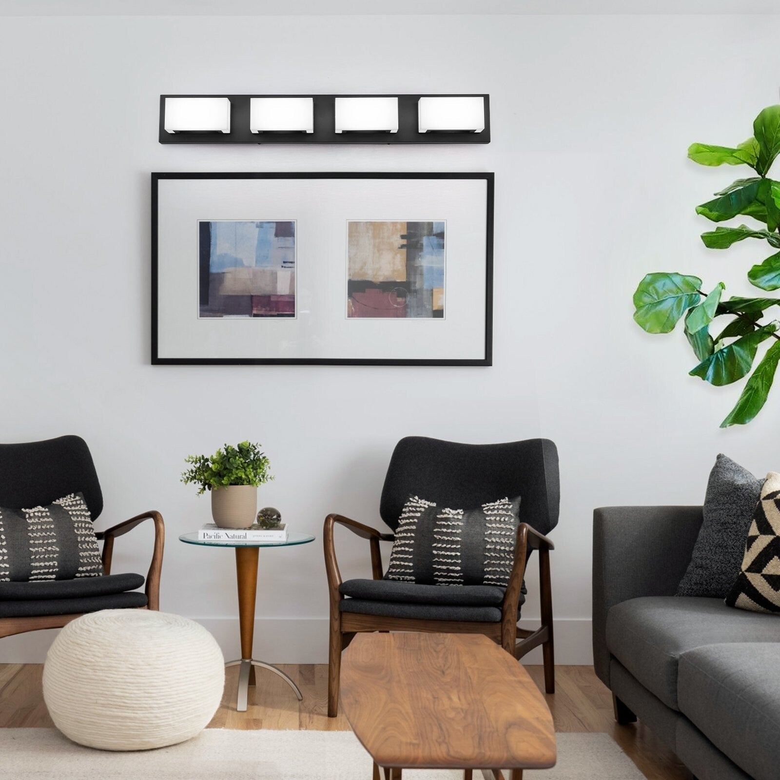 - 4 Lights Size: 30 in. W x 4.3 in. H x 3.9 in. D (extend from the wall)