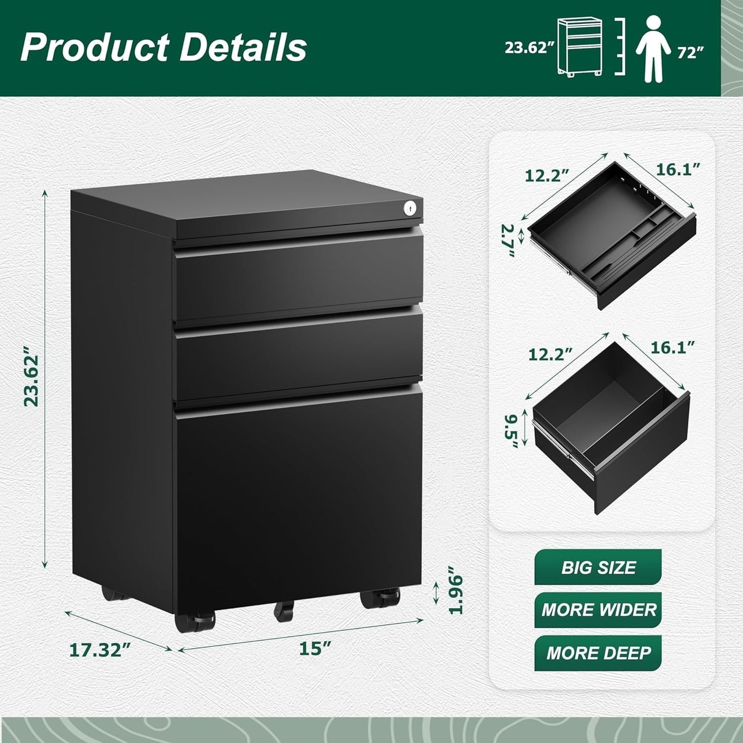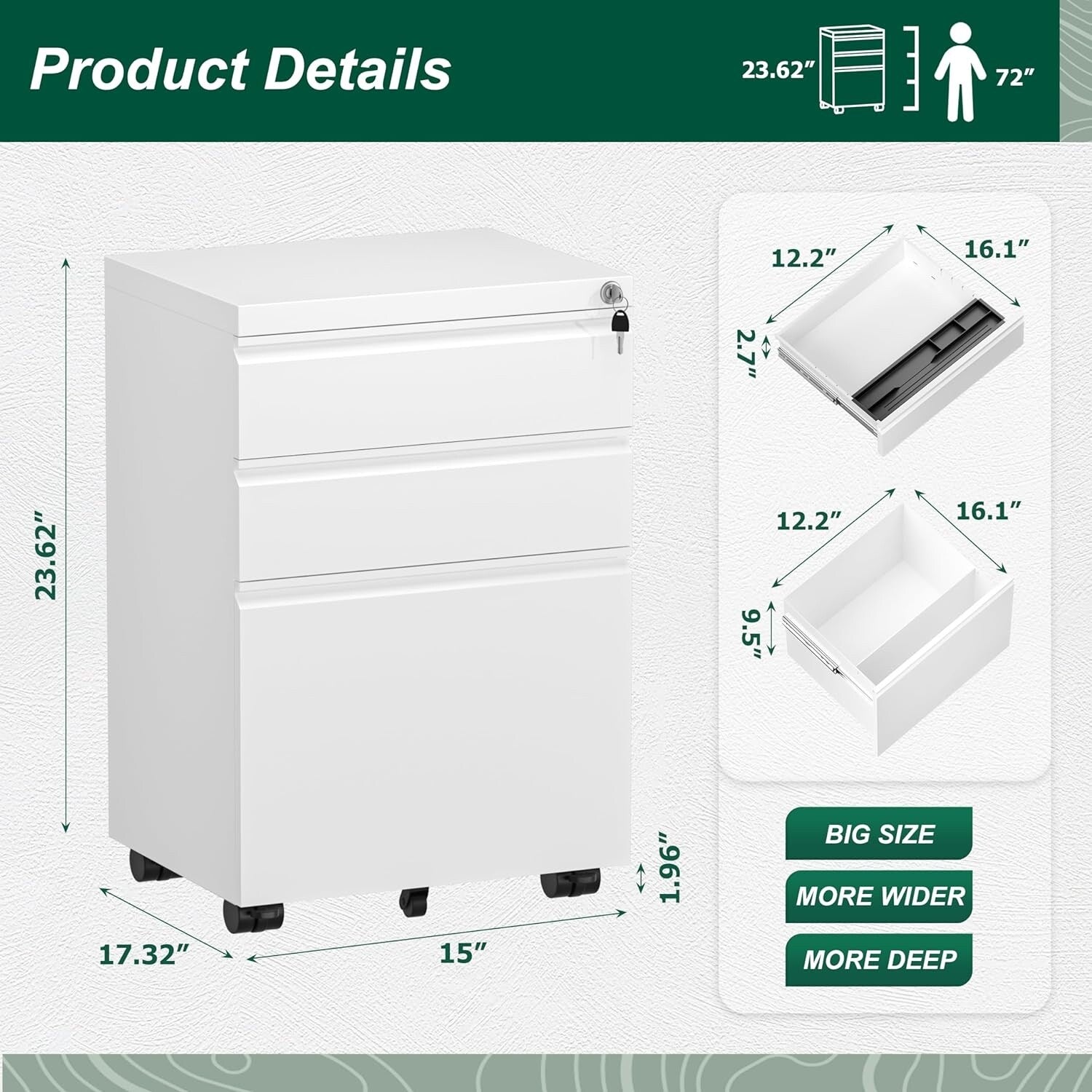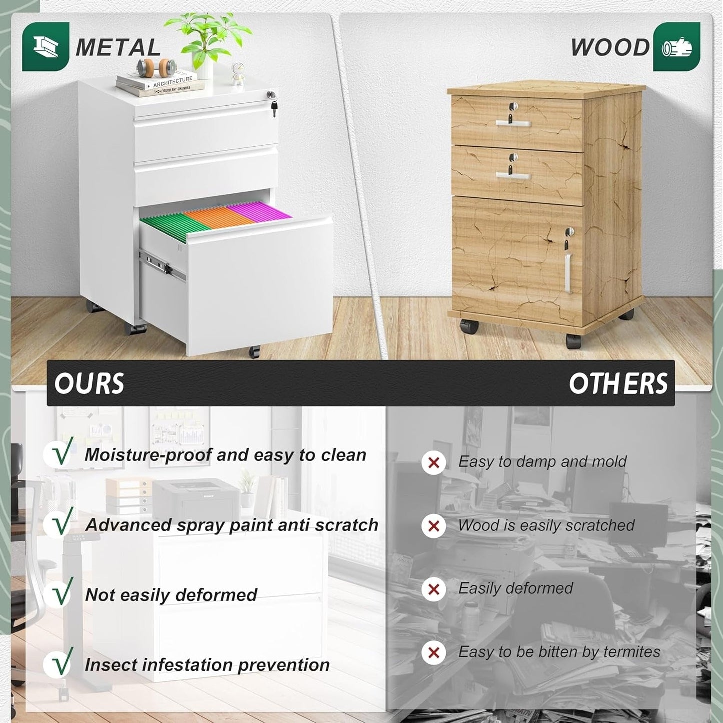 3 Drawer Mobile/Vertical File Cabinet for Home Office