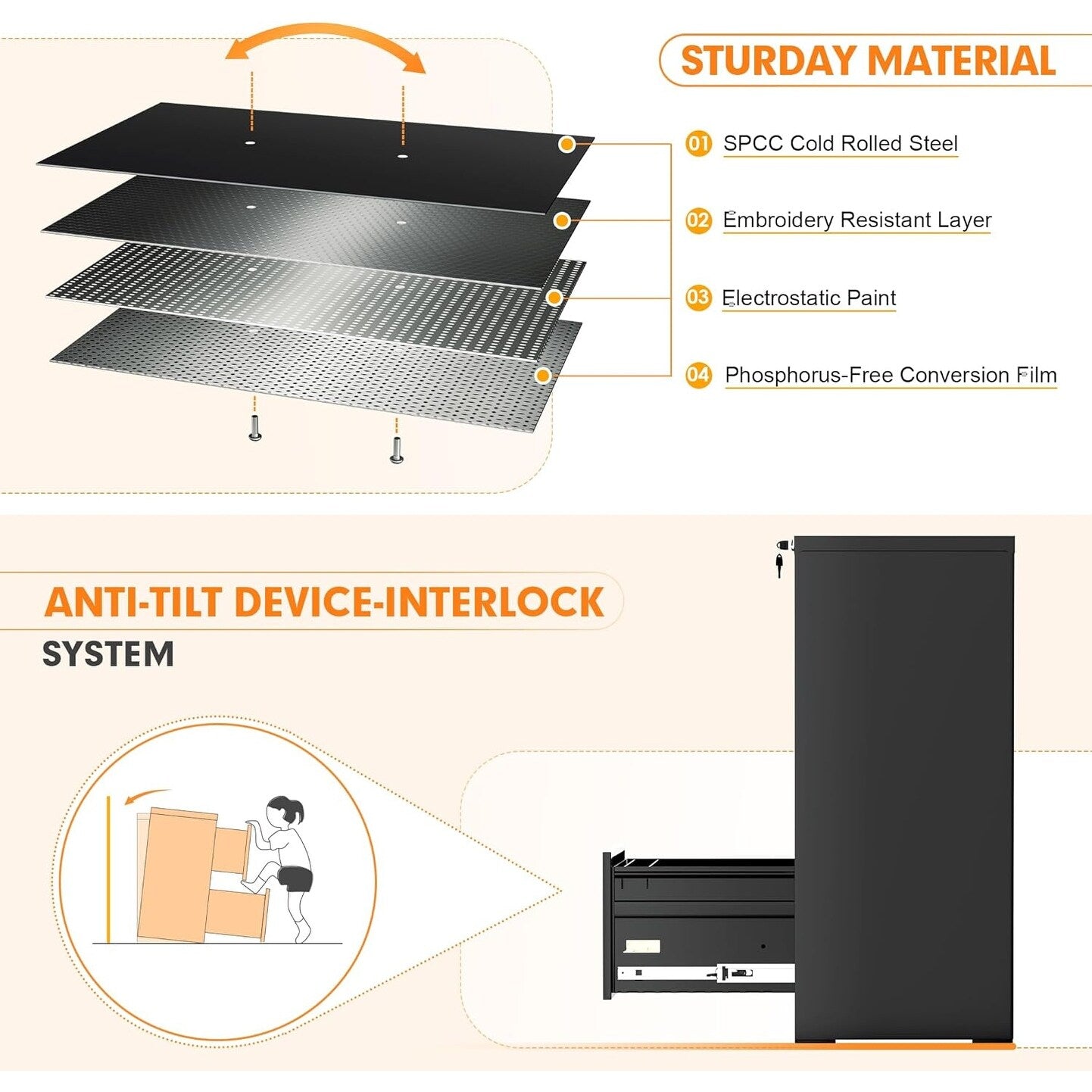 - With lock keys and features a interlock system that secures all drawers at once and keeps your important documents safe