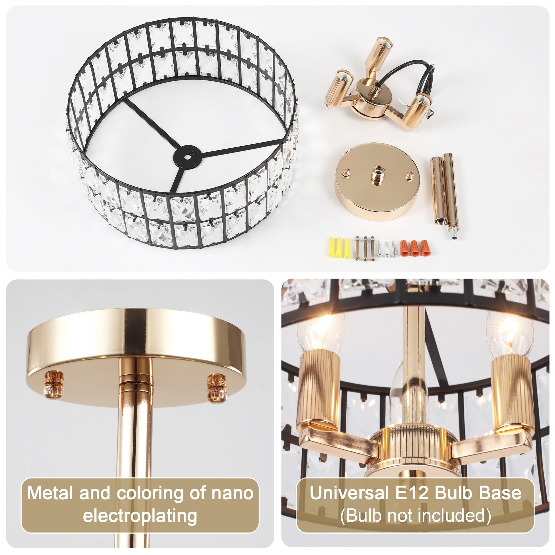 - Bulb Requirement: Create a cozy ambiance with our semi flush mount chandelier that require 3 x E12 Bulbs (Bulbs not included). They are compatible with LED, Edison, incandescent, halogen, CFL, and more. Each bulb can have a maximum wattage of 40 watts (bulbs not included). Enjoy full dimming capabilities when paired with compatible dimmable bulbs and dimmer switches (dimmer switch not included)