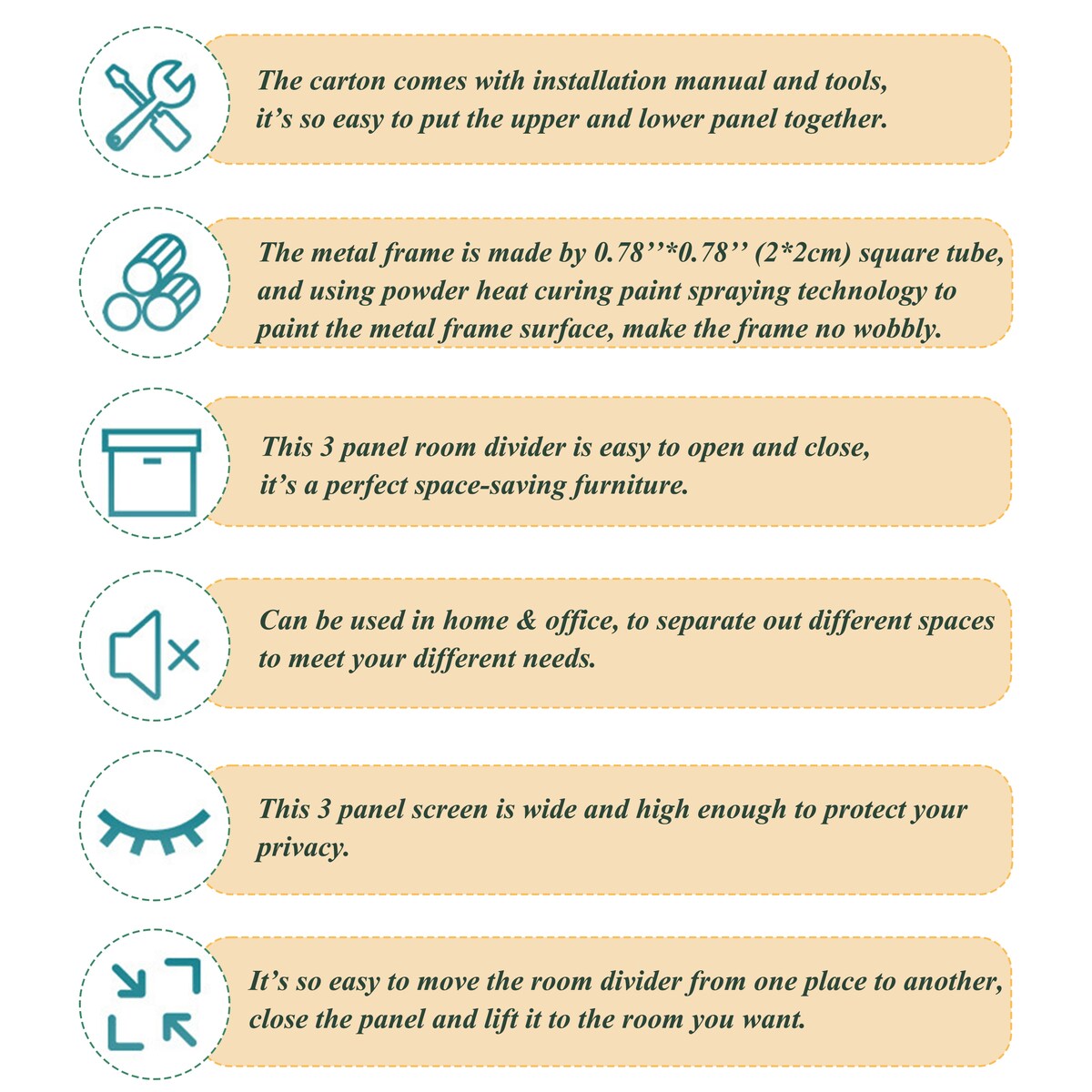 Transform your living space with our stunning 3-Panel Room Divider, a versatile and stylish addition to your home decor. Crafted from high-quality metal and paulownia wood, this free-standing room separator boasts a beautiful rustic aesthetic that seamlessly blends with any home style. Perfect for creating separate spaces for work, play, or relaxation, our room divider is incredibly easy to move around and can be used in various rooms, including the living room, bedroom, dining room, study room, and balcony.