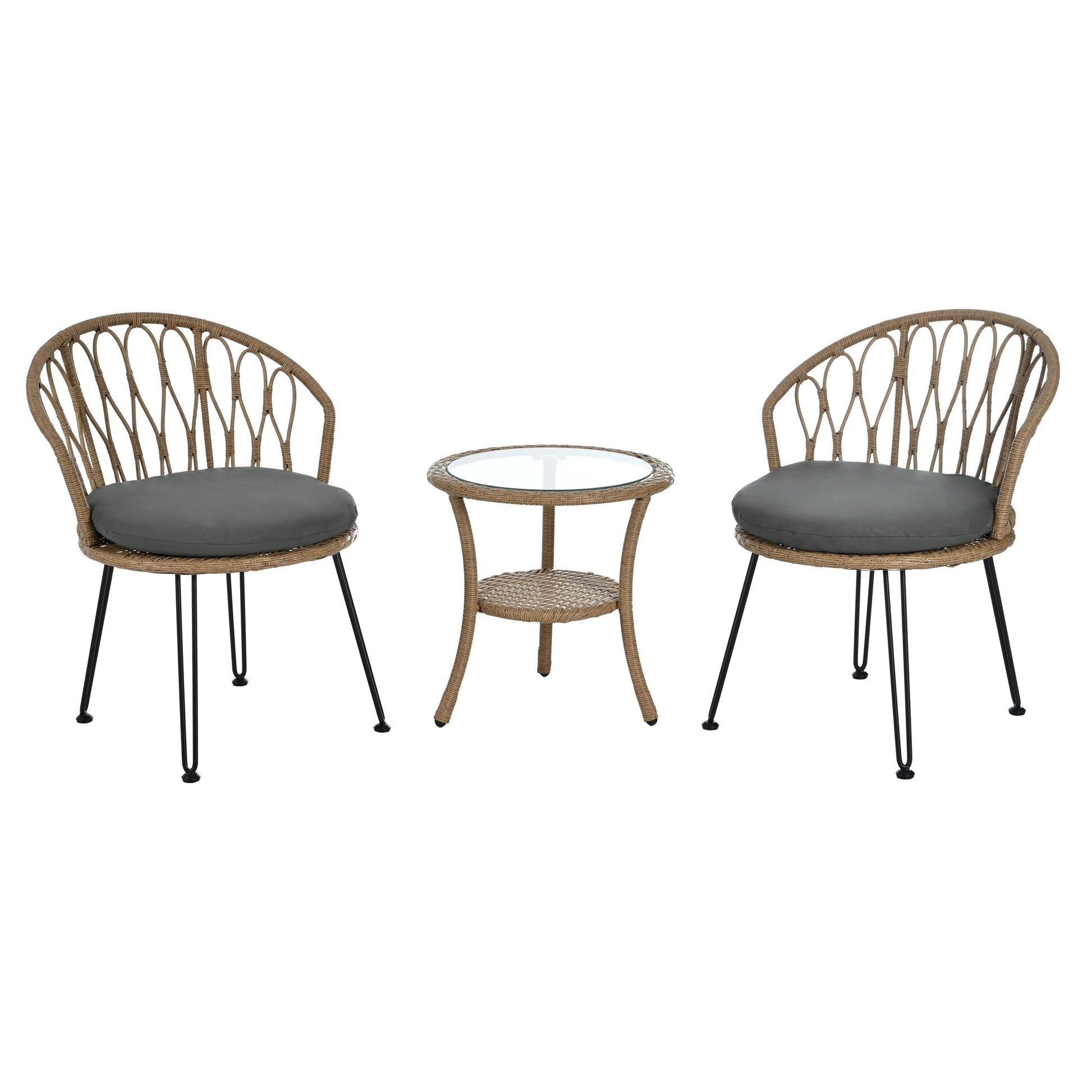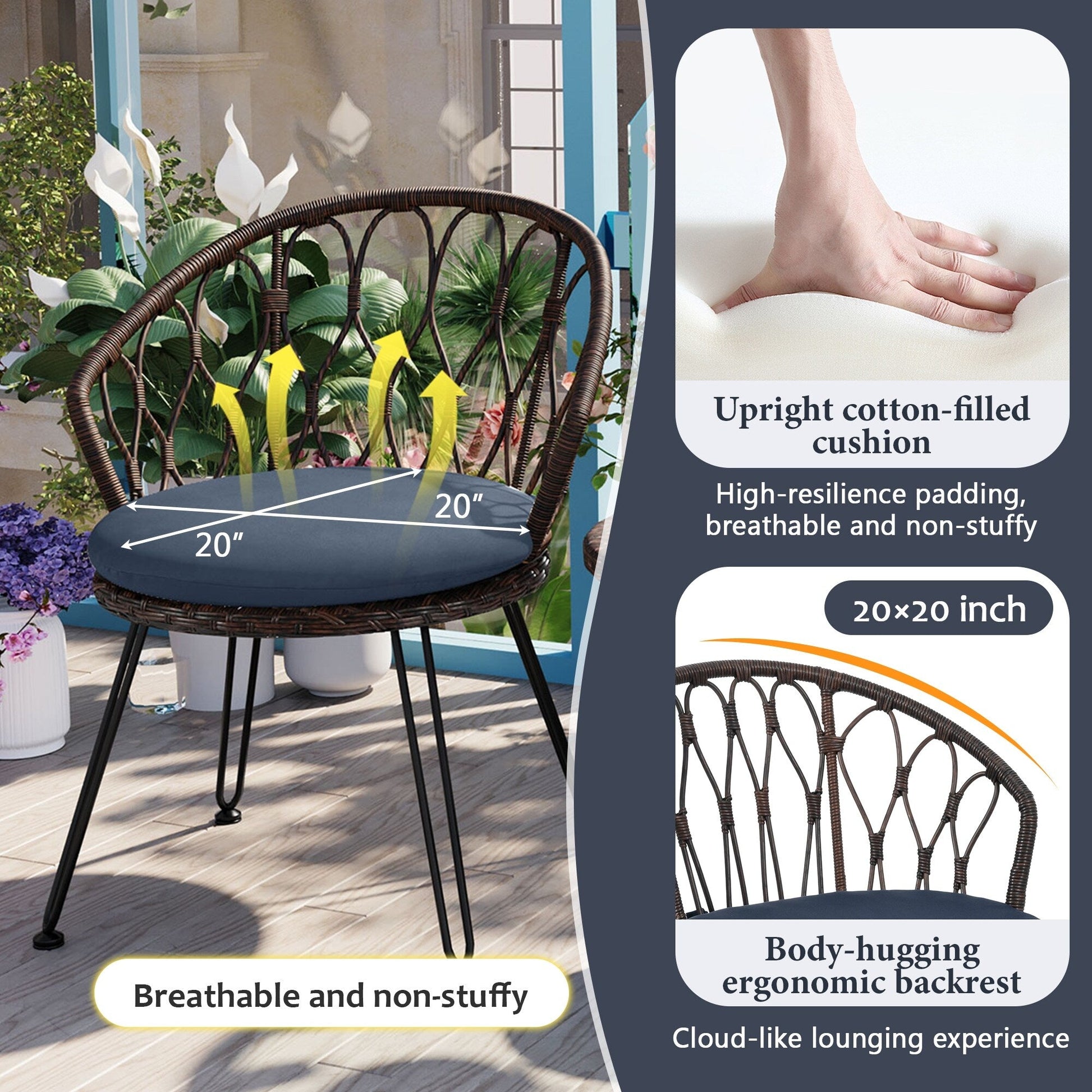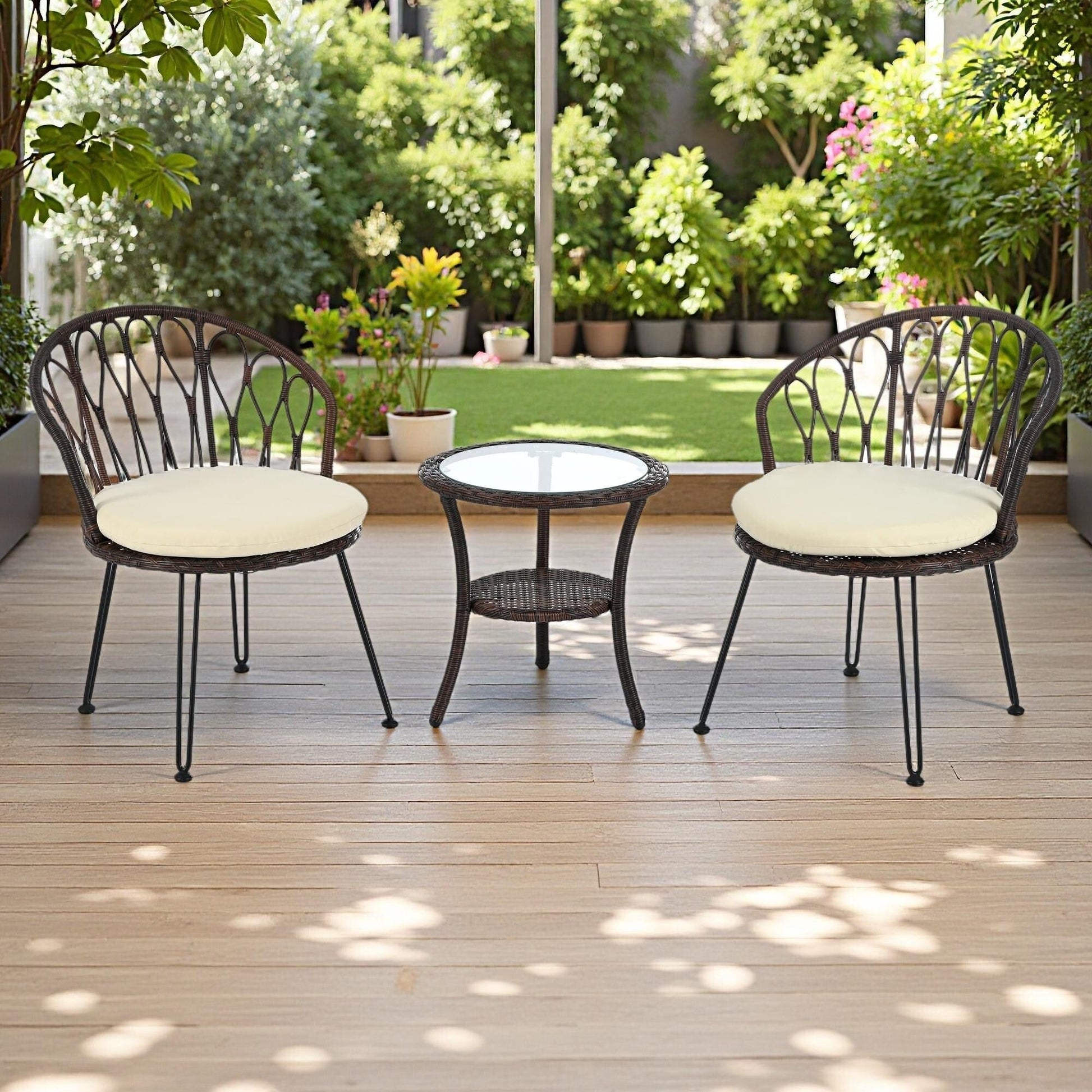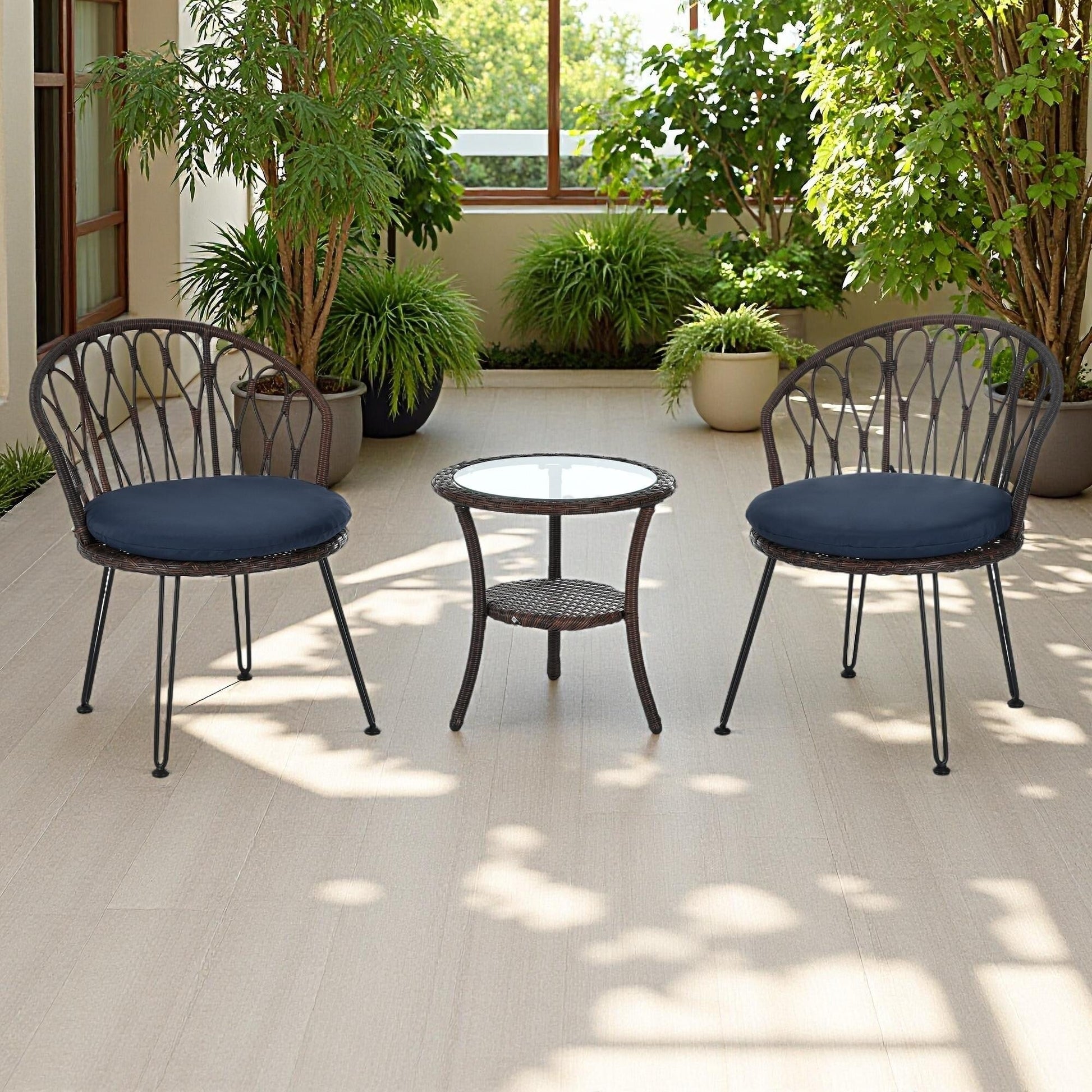Enhance your outdoor living space with this beautifully designed 3-piece bistro set, combining modern elegance with natural rattan texture. Ideal for balconies, patios, gardens, or sunrooms, this set features two cushioned chairs and a tempered glass table for a perfect blend of style, comfort, and practicality. Its lightweight frame makes it easy to rearrange to suit any setting, whether you're hosting guests or enjoying a quiet morning coffee.