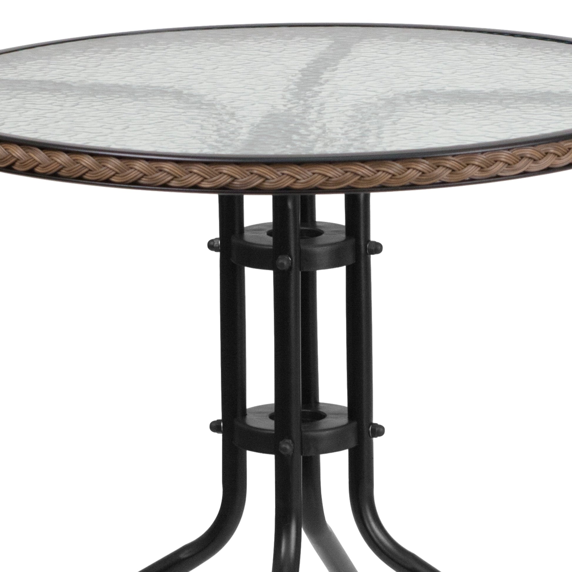 - 28' round, 5mm thick glass top with decorative rattan edge band