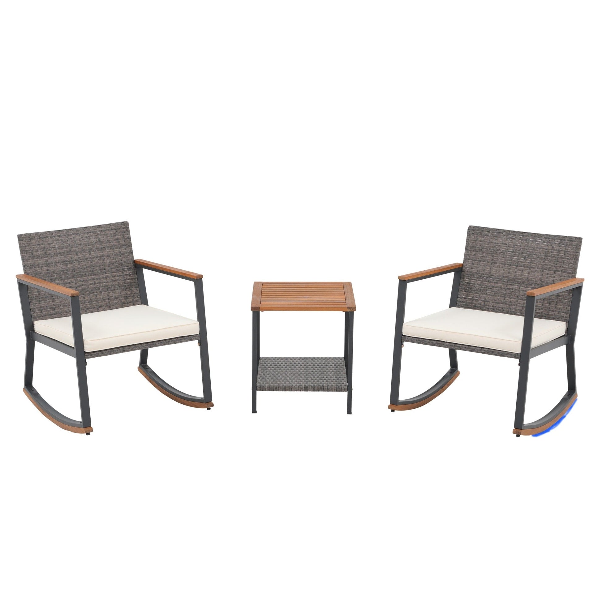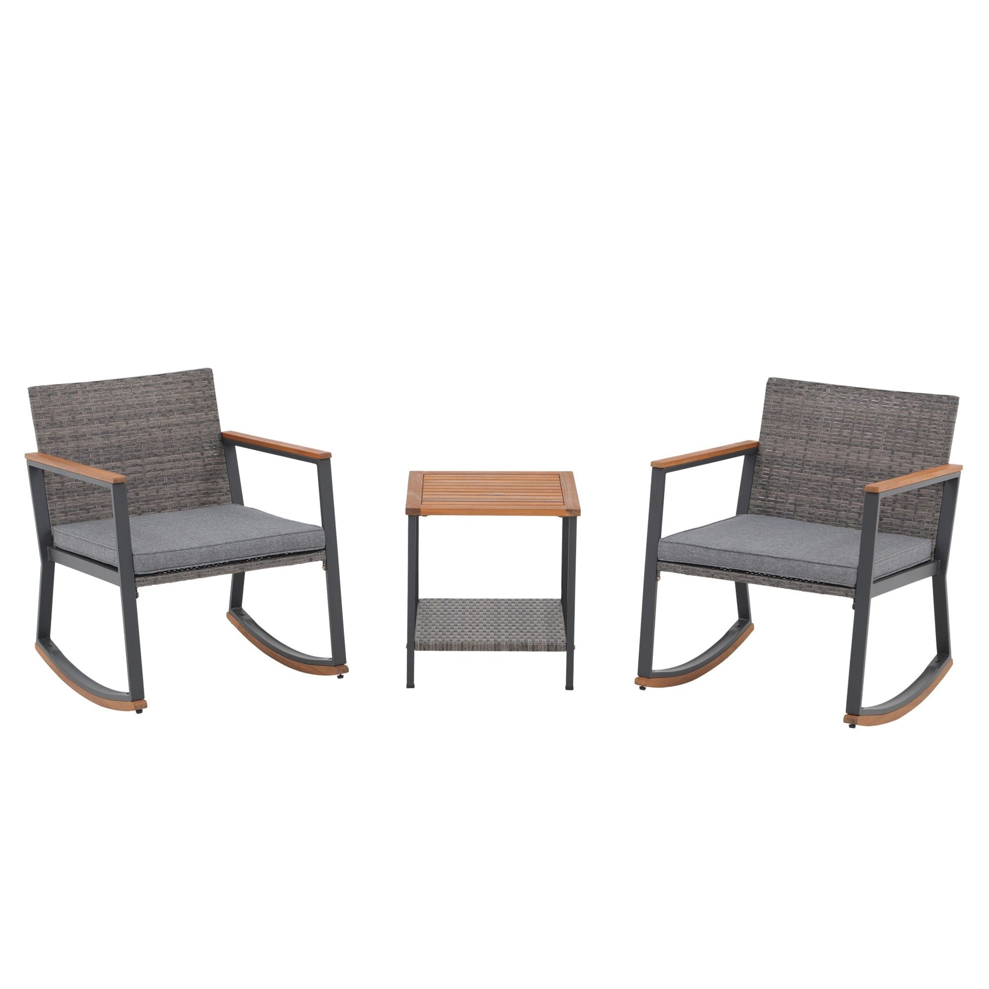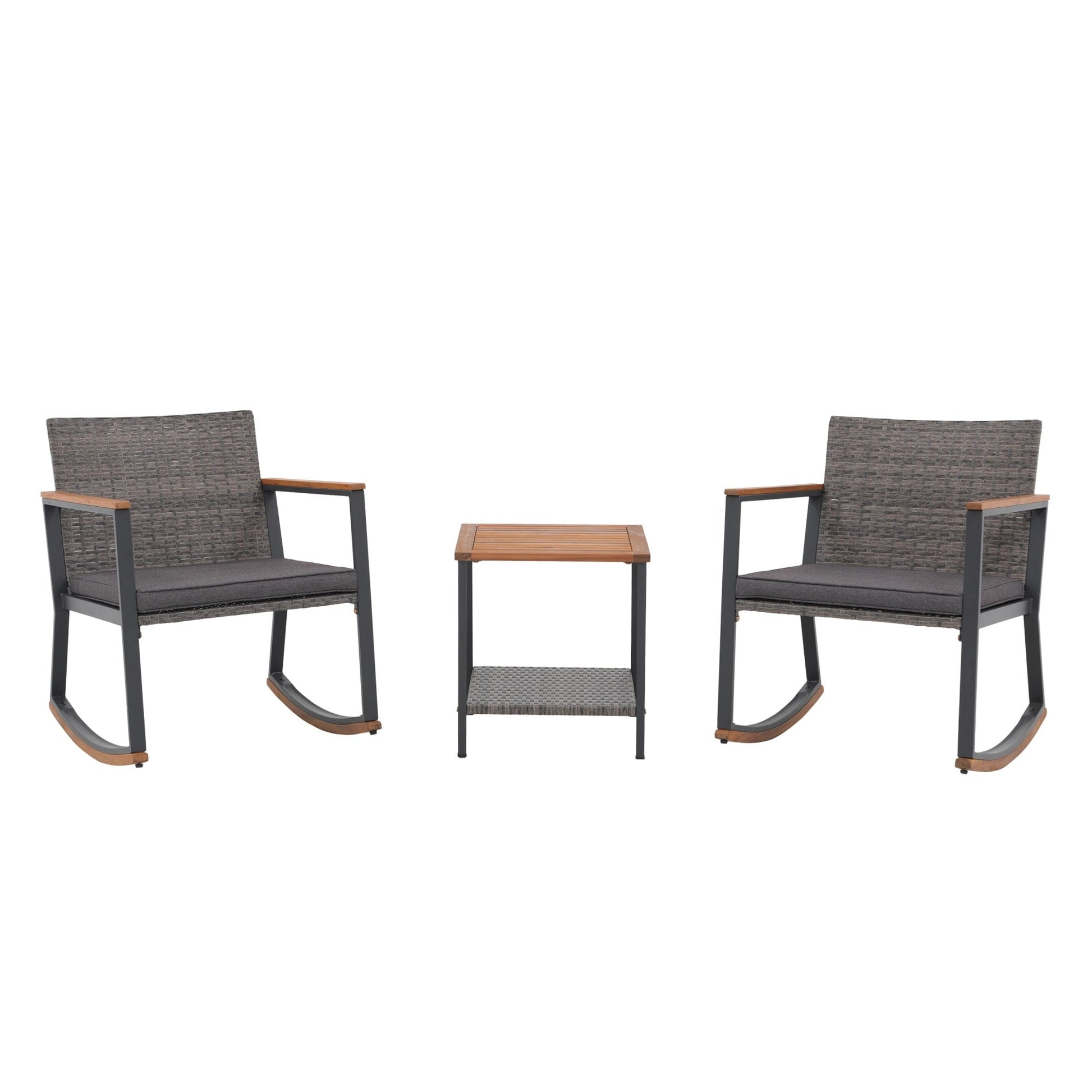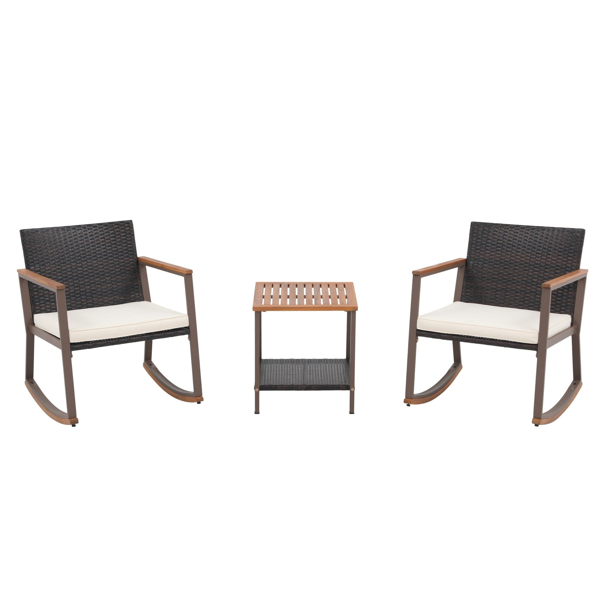 3-Piece Outdoor Wicker Rocking Chair Set with Cushions