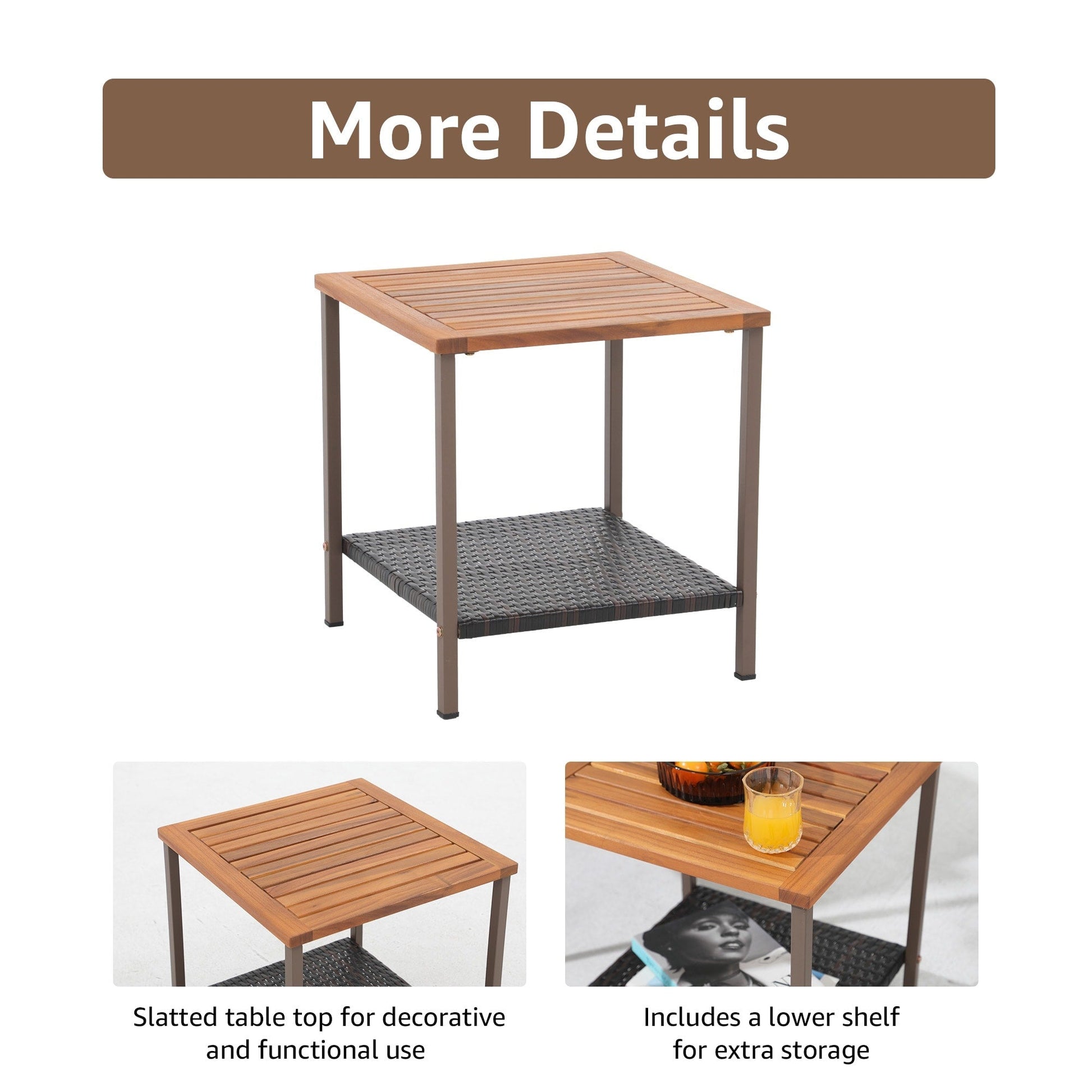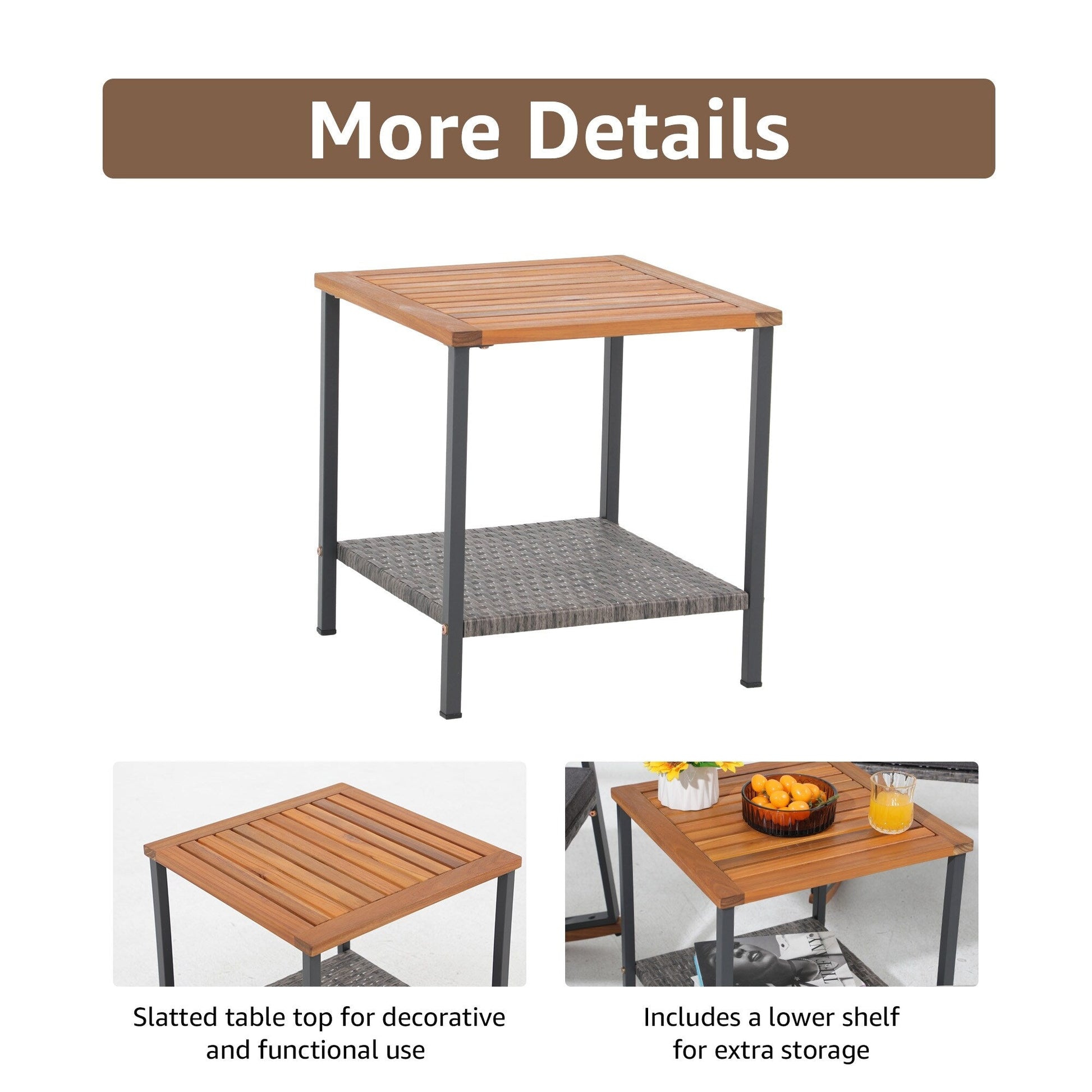 It's time to make your backyard or patio space complete with this delightful outdoor rocking chair set! Designed with your ultimate comfort and relaxation in mind, this set is perfect for those lazy summer afternoons spent lounging with loved ones. Crafted with a sturdy power-coated steel frame and high-quality wicker, our rocking chairs are built to withstand the elements and provide you with long-lasting enjoyment. A special touch of natural flair is added with the all-weather resistant Acacia wood armrests and table top. Rock back and forth, soak up the summer breeze, and create unforgettable memories in the embrace of our stylish and durable outdoor rocking chair set.