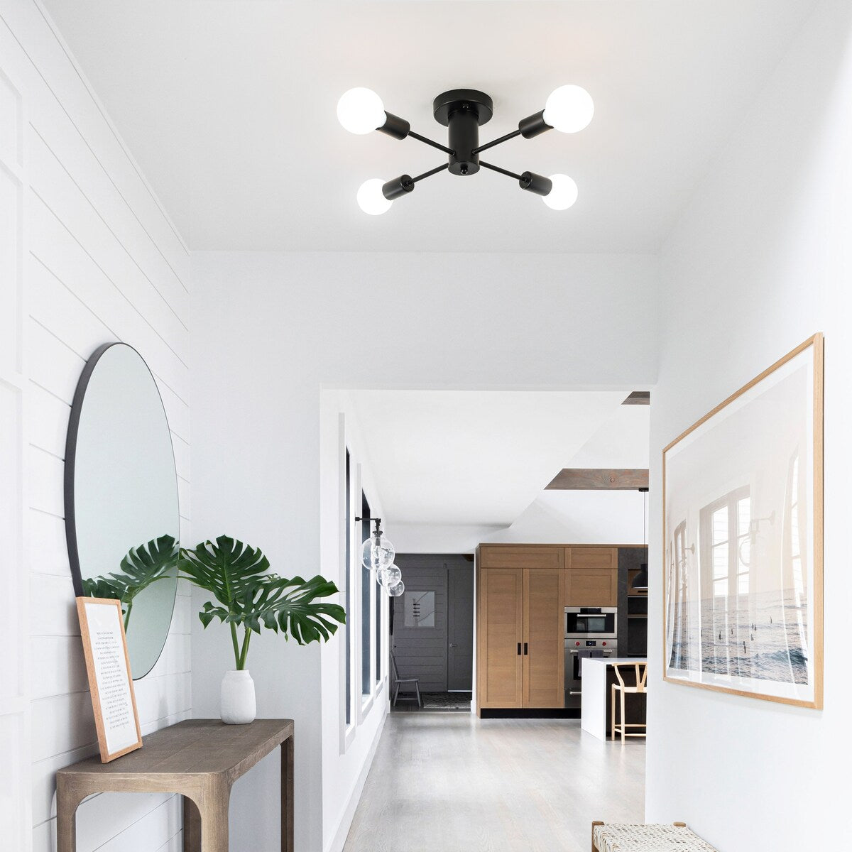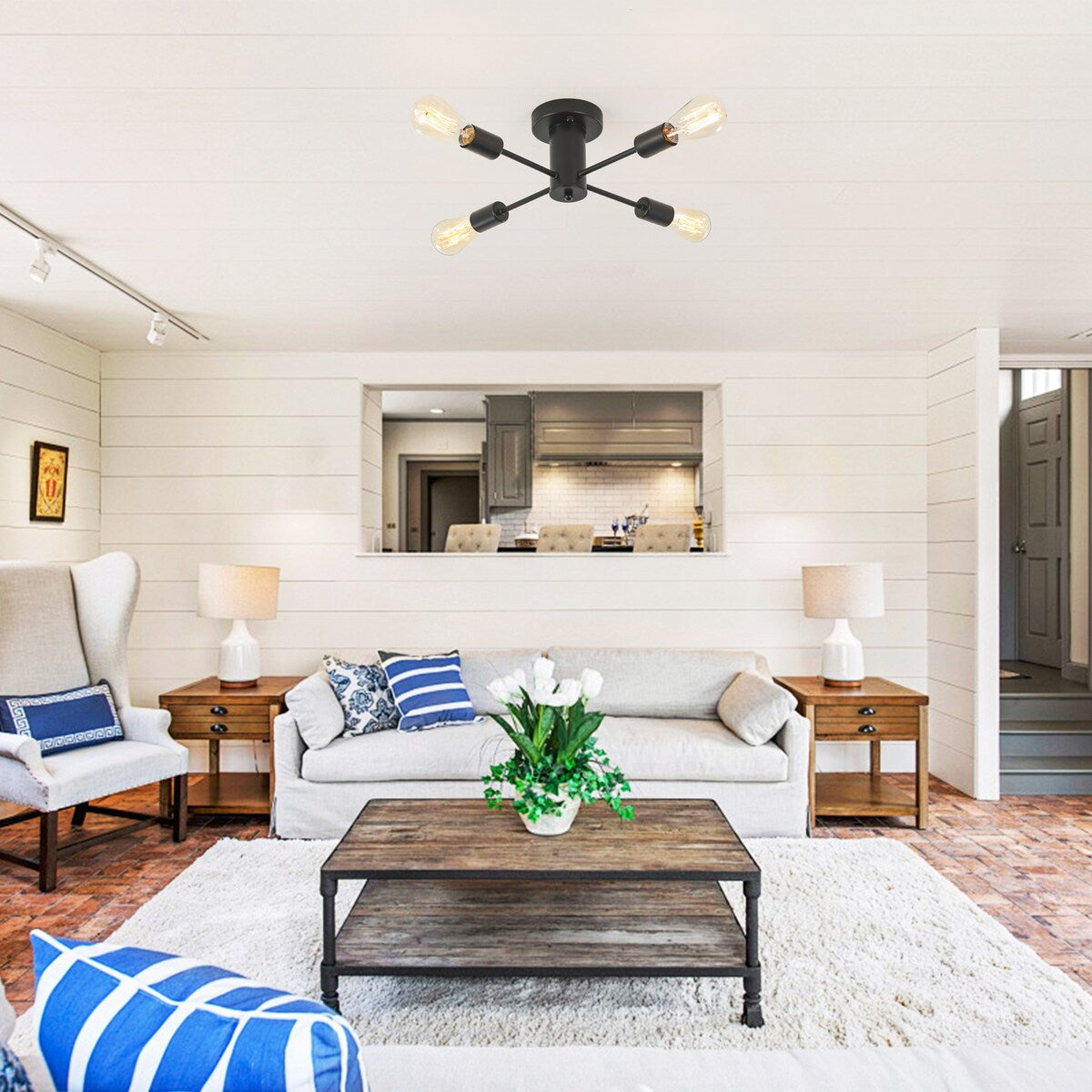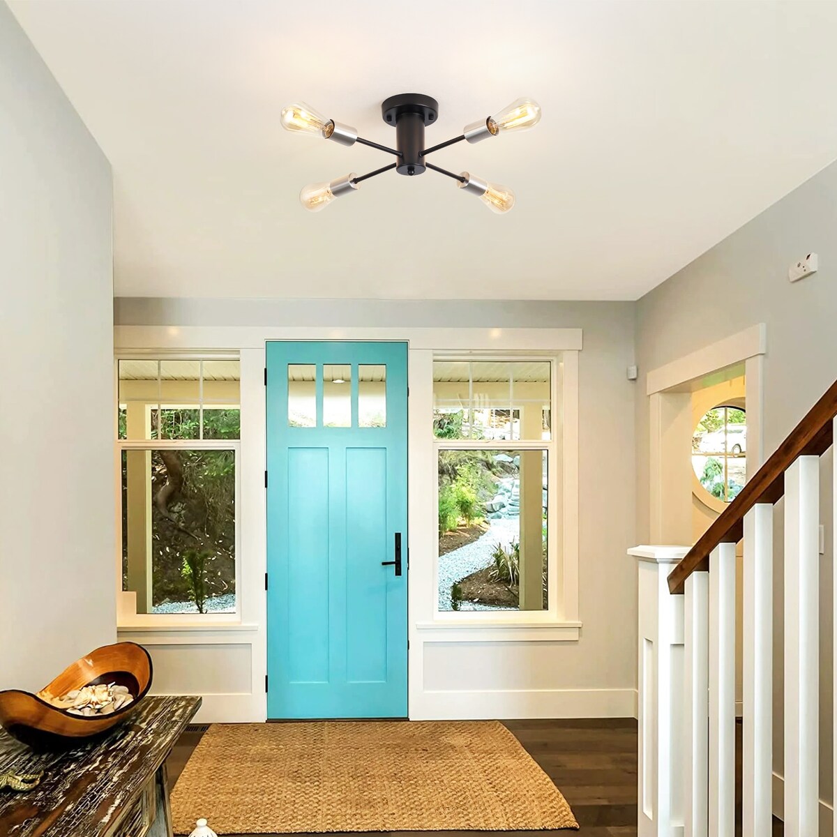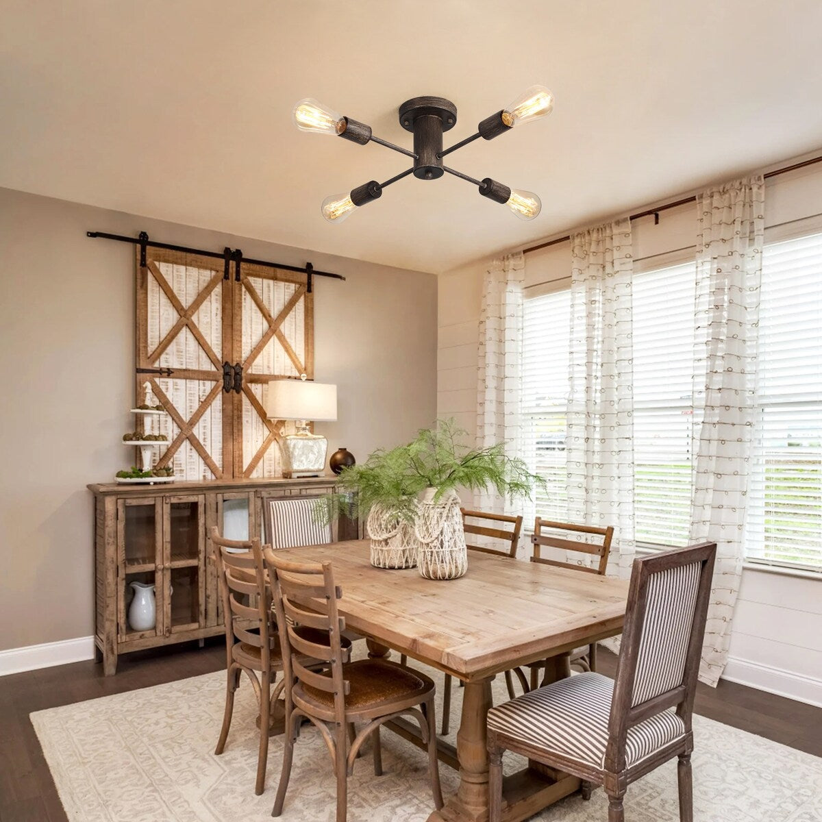 Add charm and personality to your home with this simple yet stylish semi-flush ceiling light. The 4 light ceiling light is made of high-quality metal iron and uses simple geometric lines design, creating a perfect balance between retro and contemporary style. More and more interior designer pick this lamp for their customers to reach a high end home deterioration and meet new home style. Perfect for bedrooms, living rooms, dining rooms, kitchens, halls, dining rooms, buffet restaurants, and any space you like.
