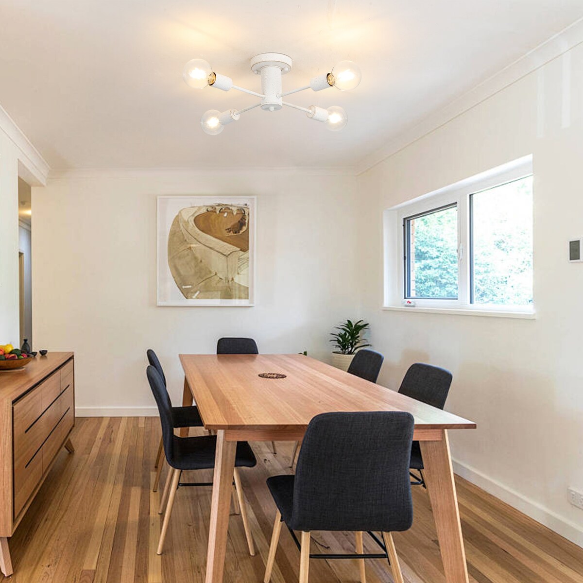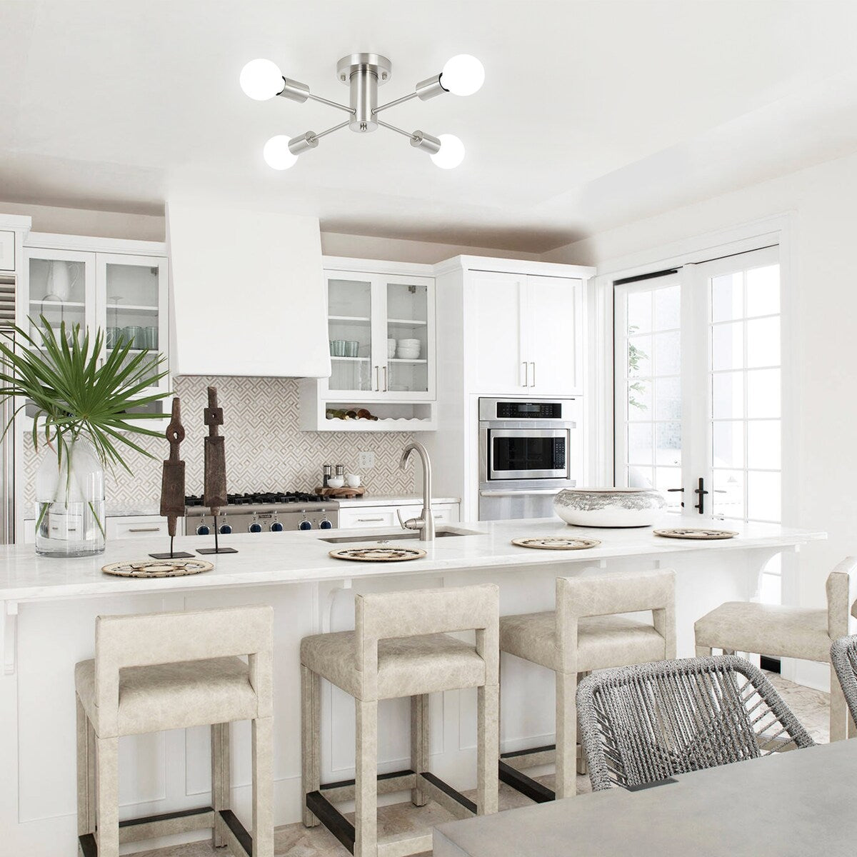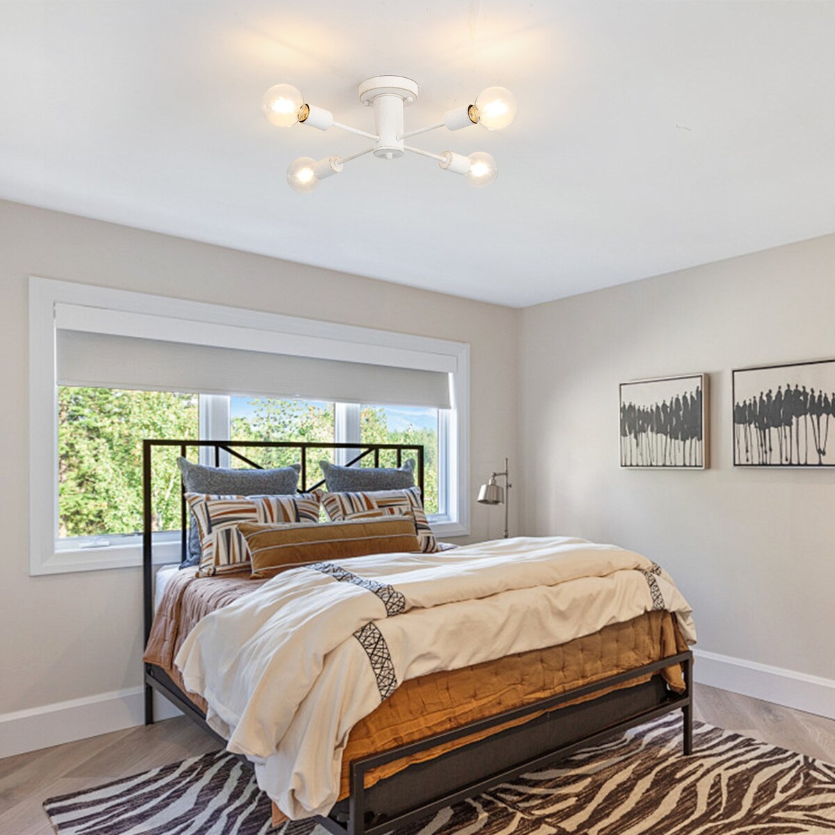Add charm and personality to your home with this simple yet stylish semi-flush ceiling light. The 4 light ceiling light is made of high-quality metal iron and uses simple geometric lines design, creating a perfect balance between retro and contemporary style. More and more interior designer pick this lamp for their customers to reach a high end home deterioration and meet new home style. Perfect for bedrooms, living rooms, dining rooms, kitchens, halls, dining rooms, buffet restaurants, and any space you like.