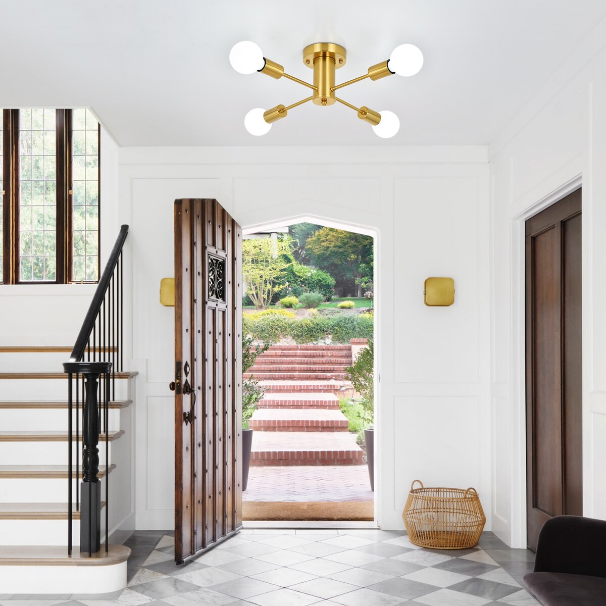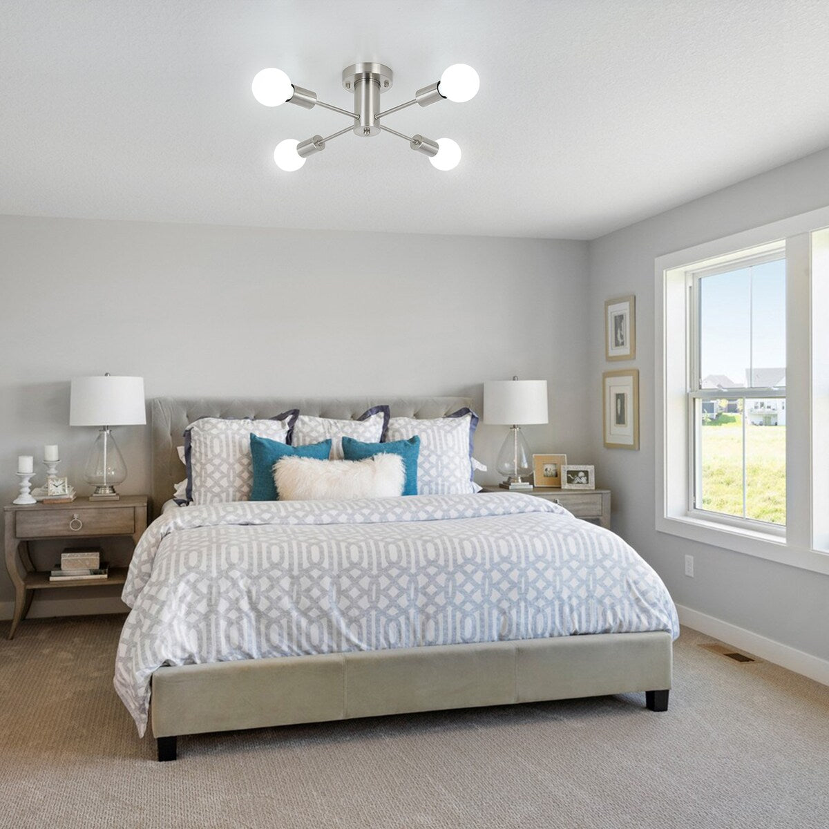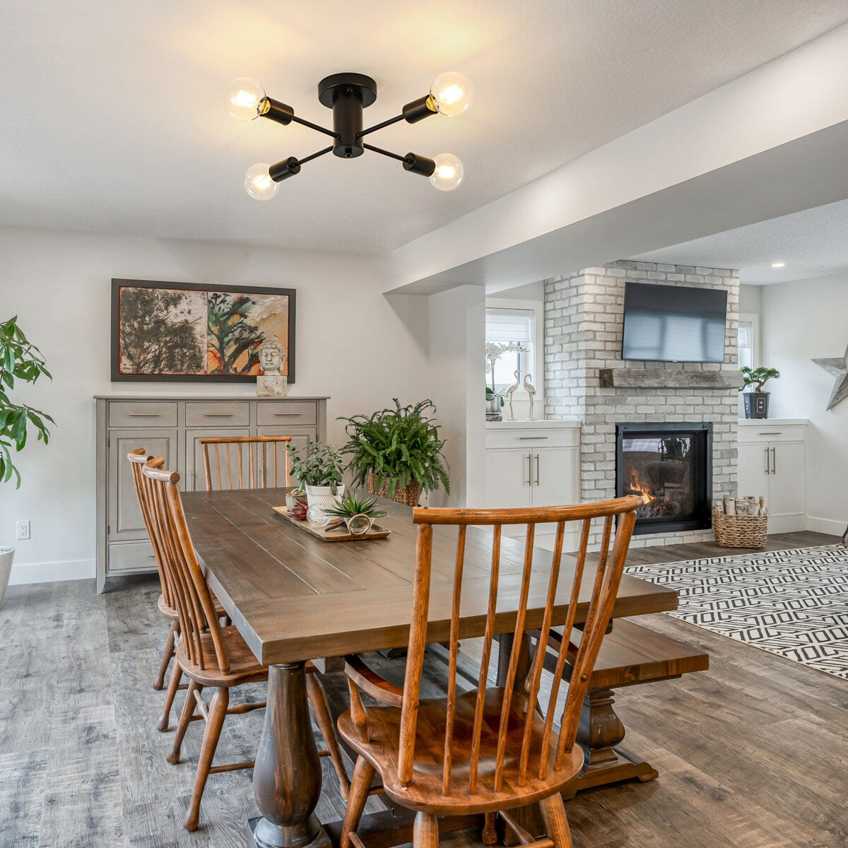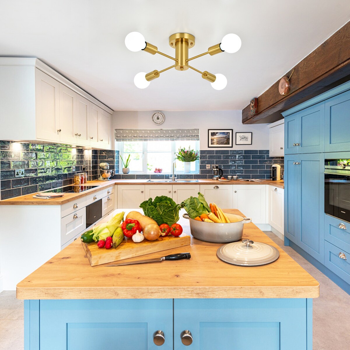 Add charm and personality to your home with this simple yet stylish semi-flush ceiling light. The 4 light ceiling light is made of high-quality metal iron and uses simple geometric lines design, creating a perfect balance between retro and contemporary style. More and more interior designer pick this lamp for their customers to reach a high end home deterioration and meet new home style. Perfect for bedrooms, living rooms, dining rooms, kitchens, halls, dining rooms, buffet restaurants, and any space you like.
