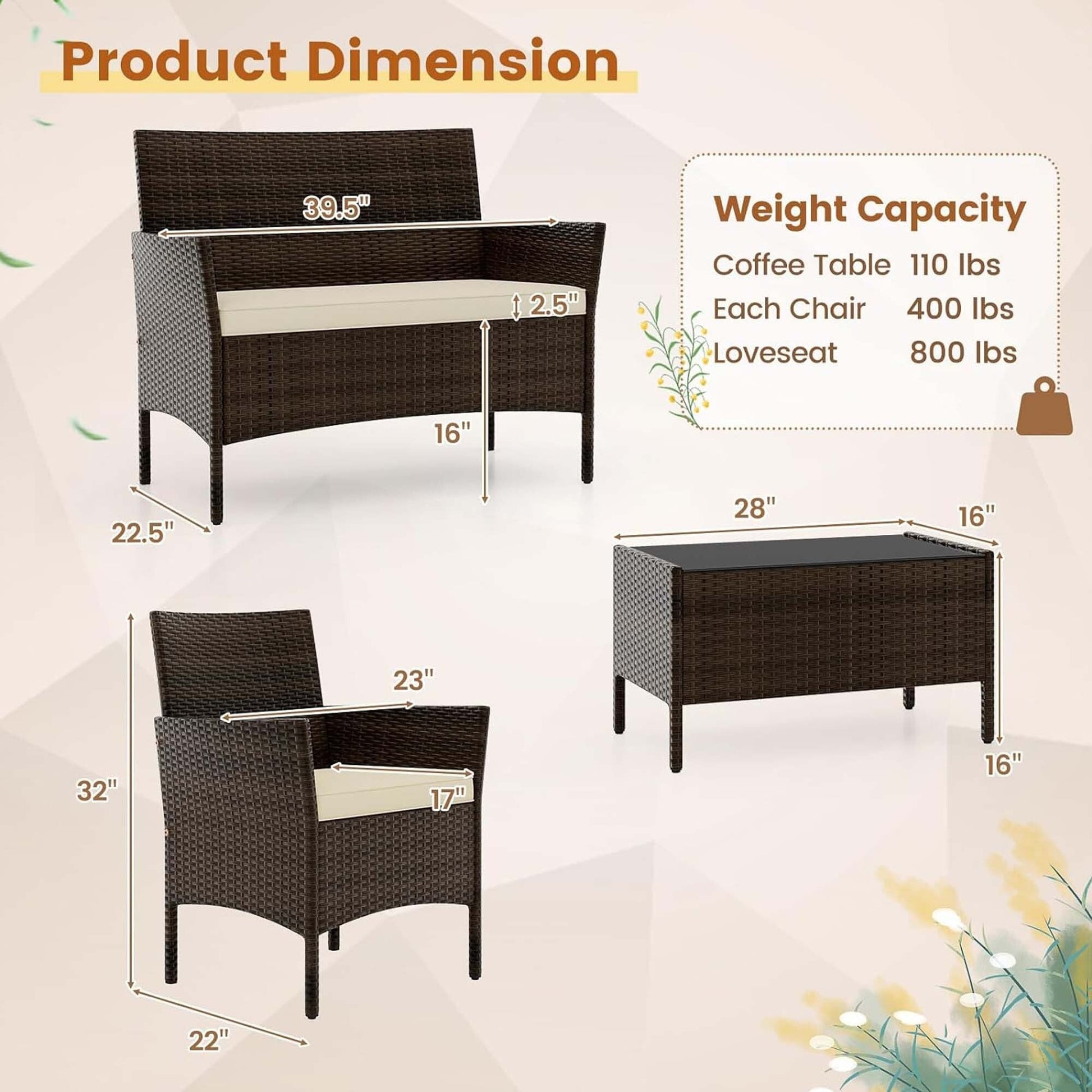 4 PCS Outdoor Rattan Conversation Set Patio Wicker Furniture Set