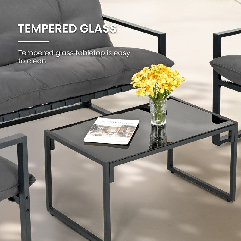 This outdoor sofa set includes two single sofas seats, a double sofa seat and a coffee table. The outdoor sectional sofa combines clean lines and a metal finish that adds a contemporary touch to your garden, porch, or poolside, etc. Meanwhile, the sectional sofa is designed to be light and easy to take apart, so you can easily move it to anywhere you want.