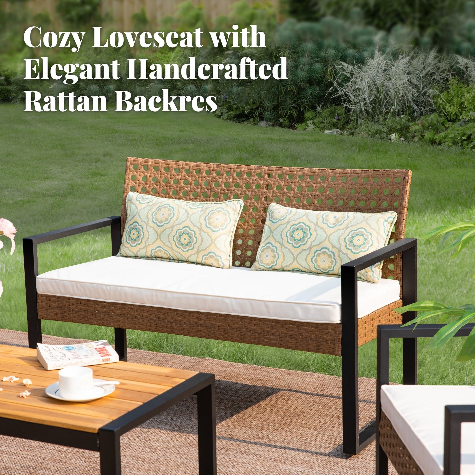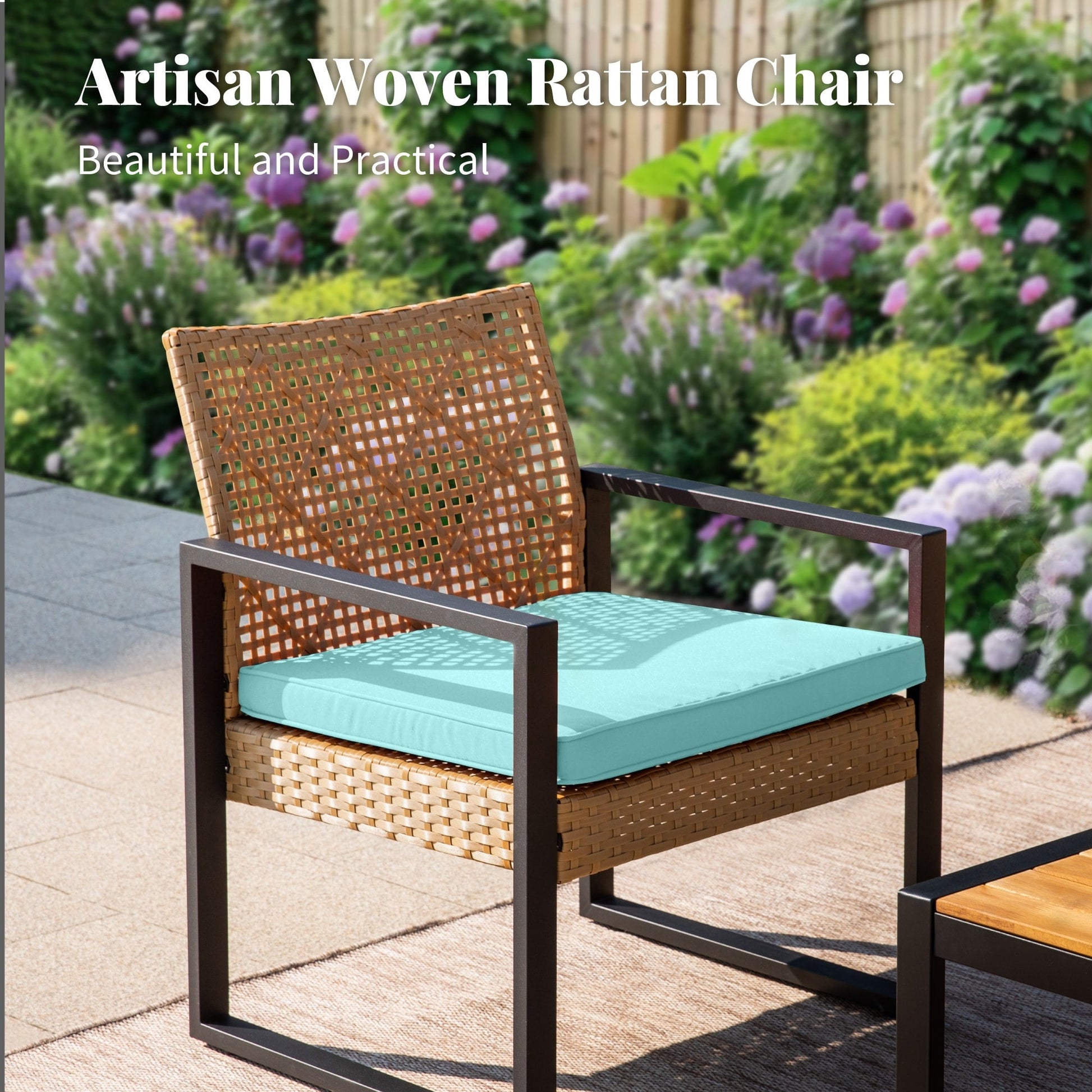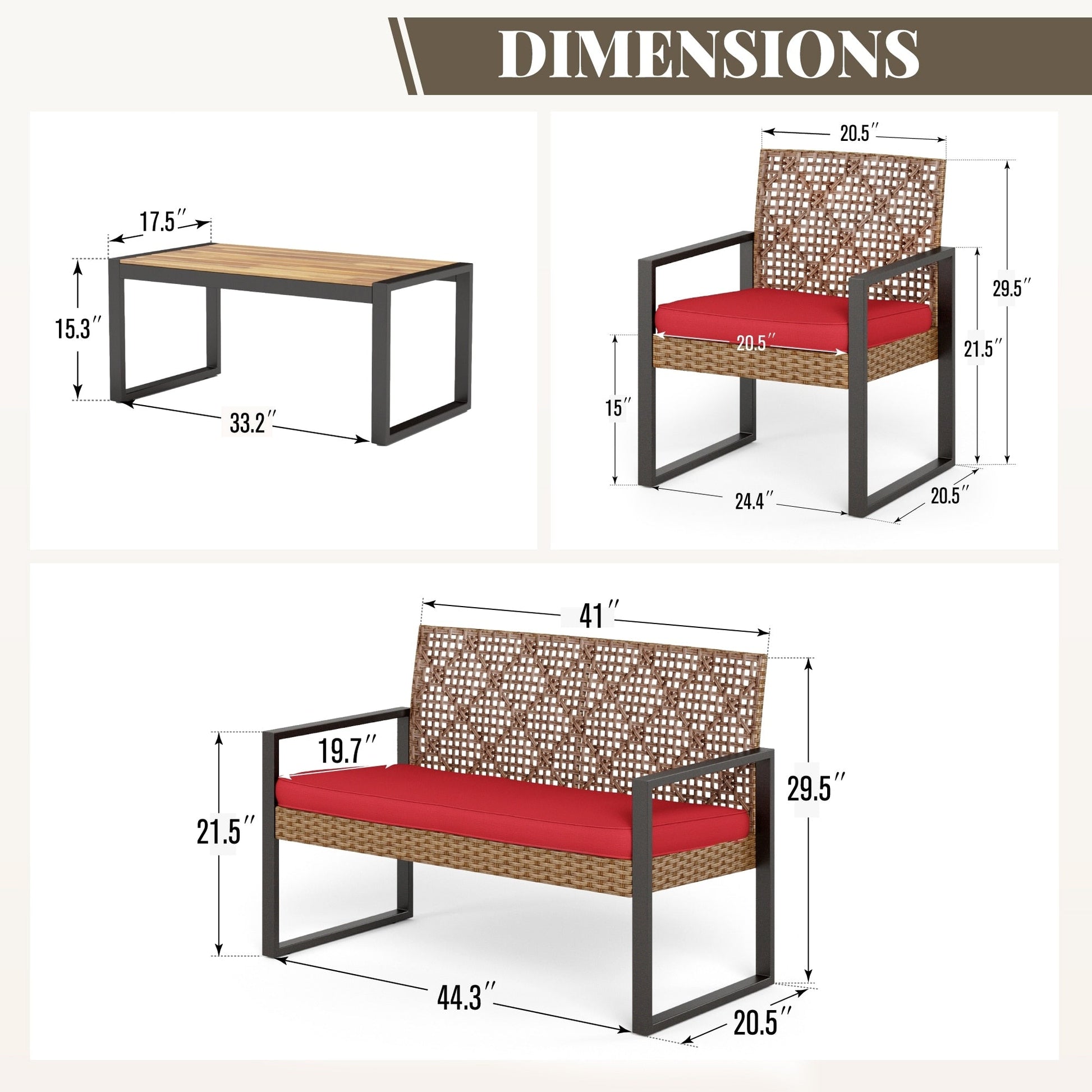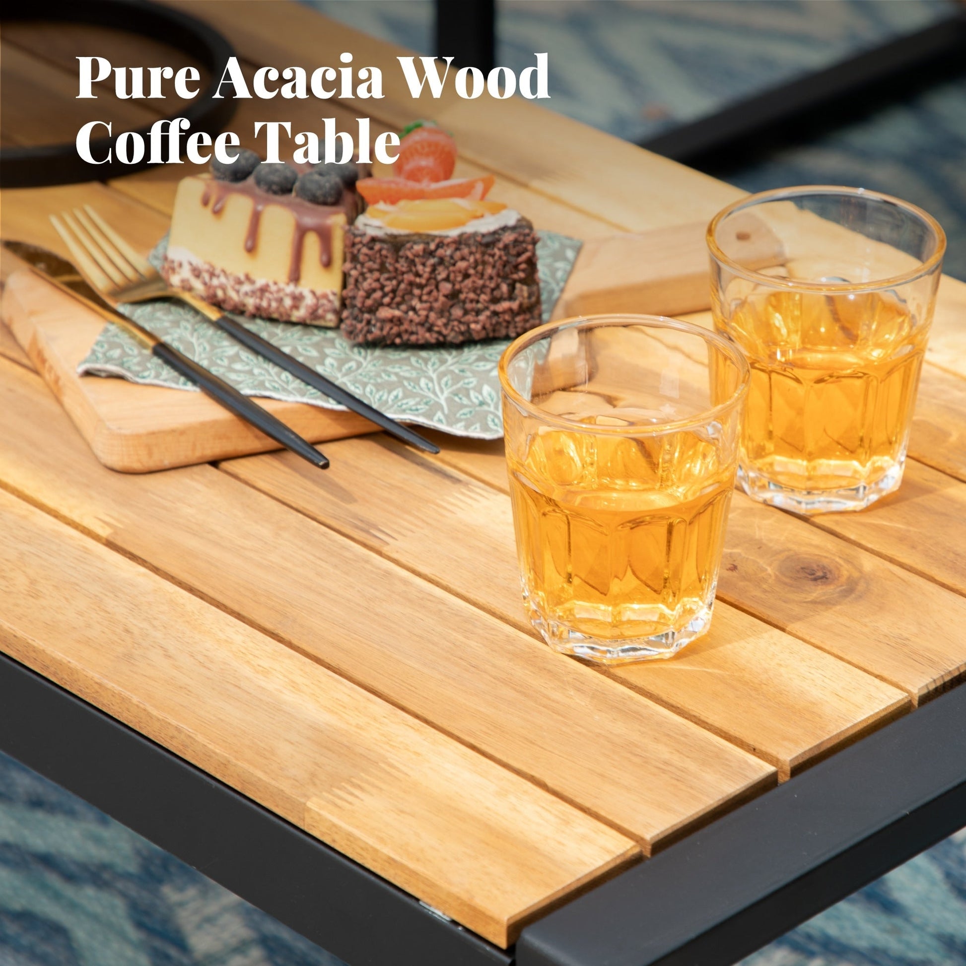 - Multiple-element Combinations: A perfect combination of rattan, Acacia Wood, and Powder-coated Steel Frame that highlights your patio decor and offers a wonderful place to enjoy your cozy time with family and friends.