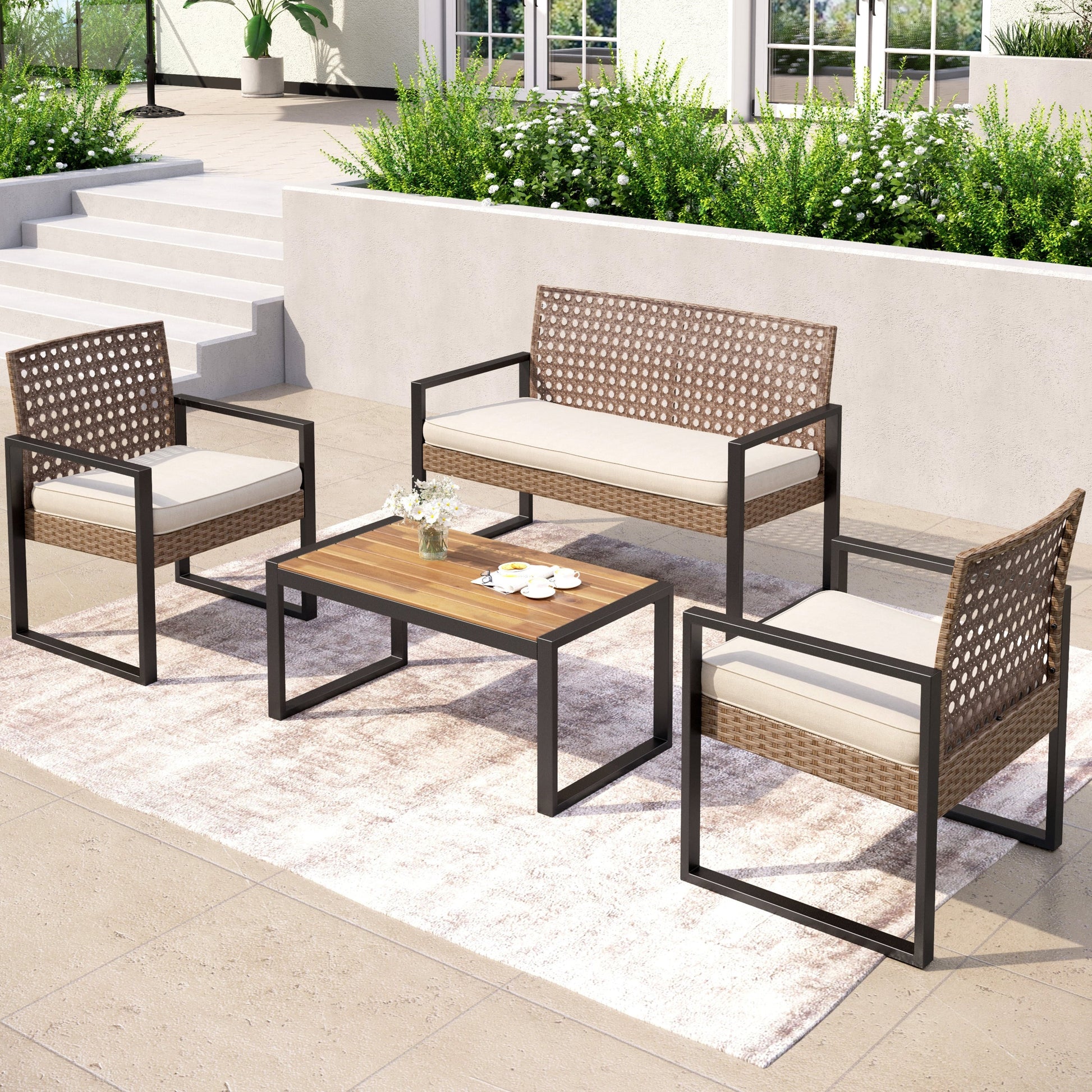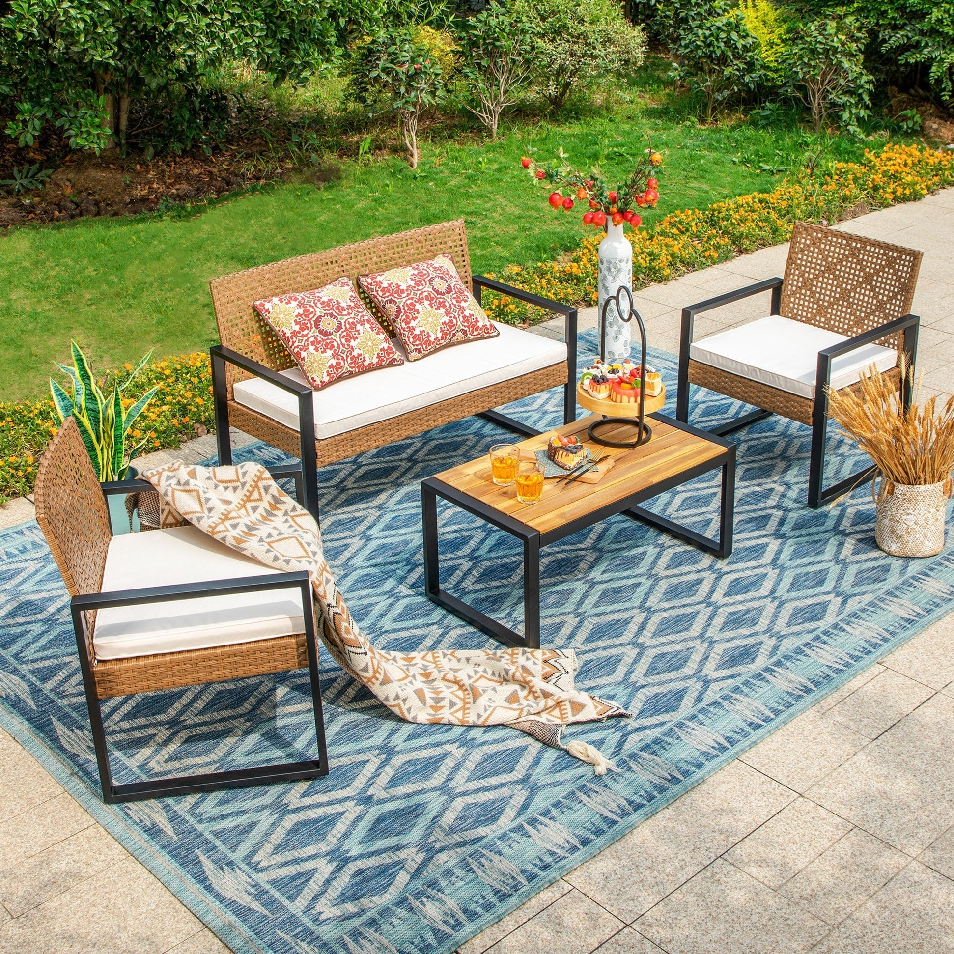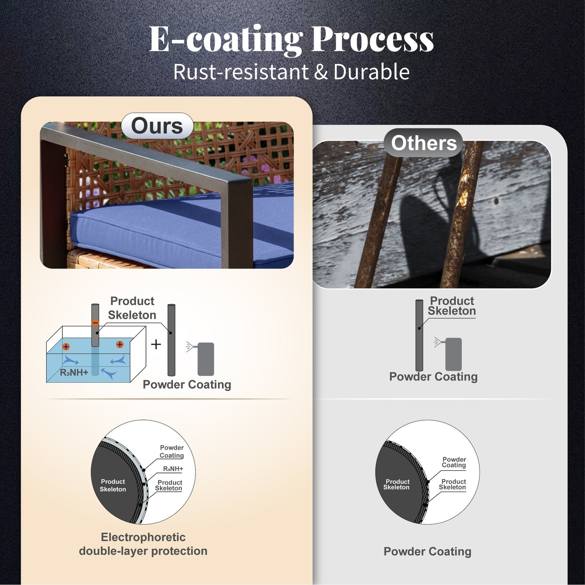 - Multiple-element Combinations: A perfect combination of rattan, Acacia Wood, and Powder-coated Steel Frame that highlights your patio decor and offers a wonderful place to enjoy your cozy time with family and friends.