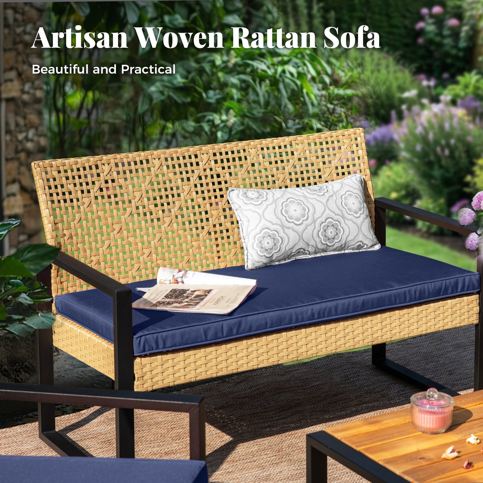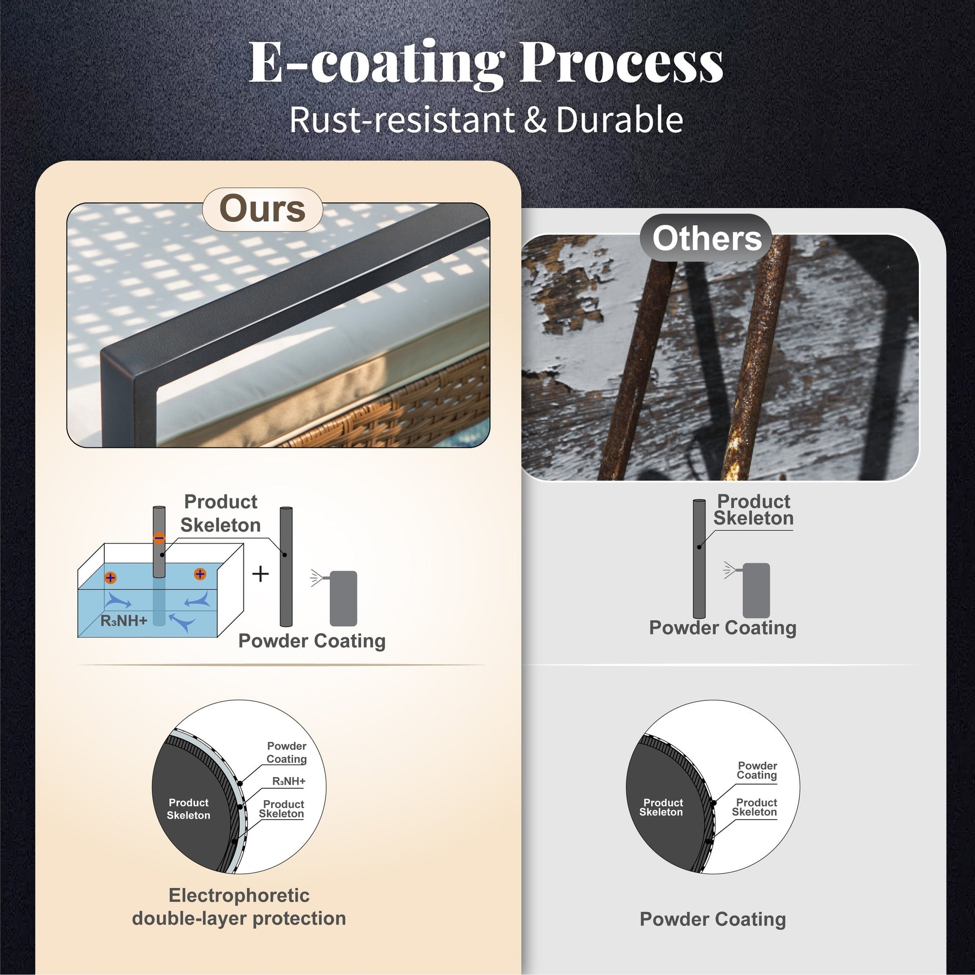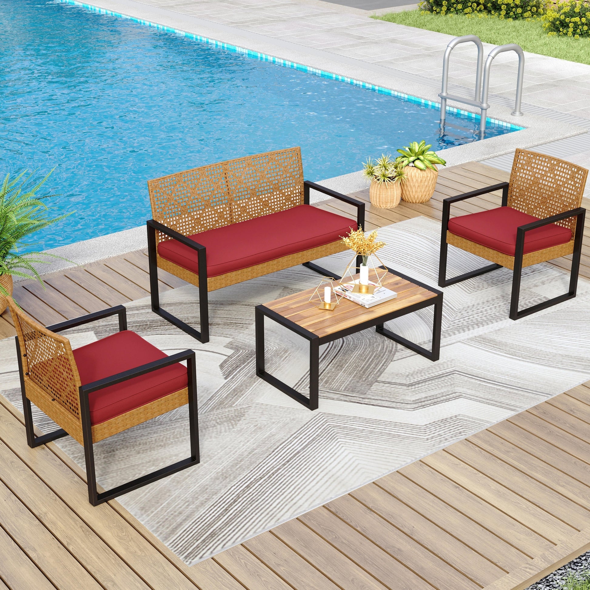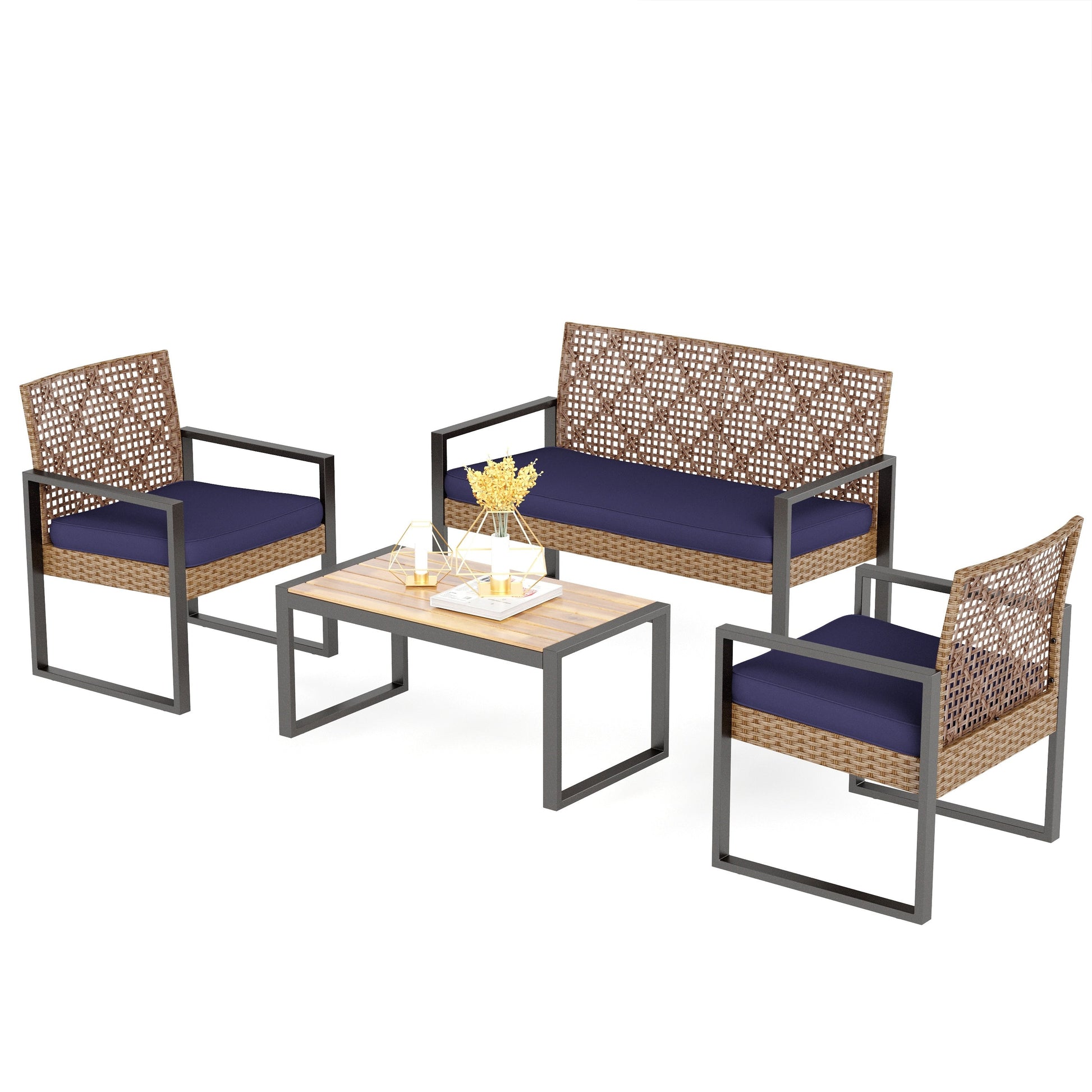 - Multiple-element Combinations: A perfect combination of rattan, Acacia Wood, and Powder-coated Steel Frame that highlights your patio decor and offers a wonderful place to enjoy your cozy time with family and friends.