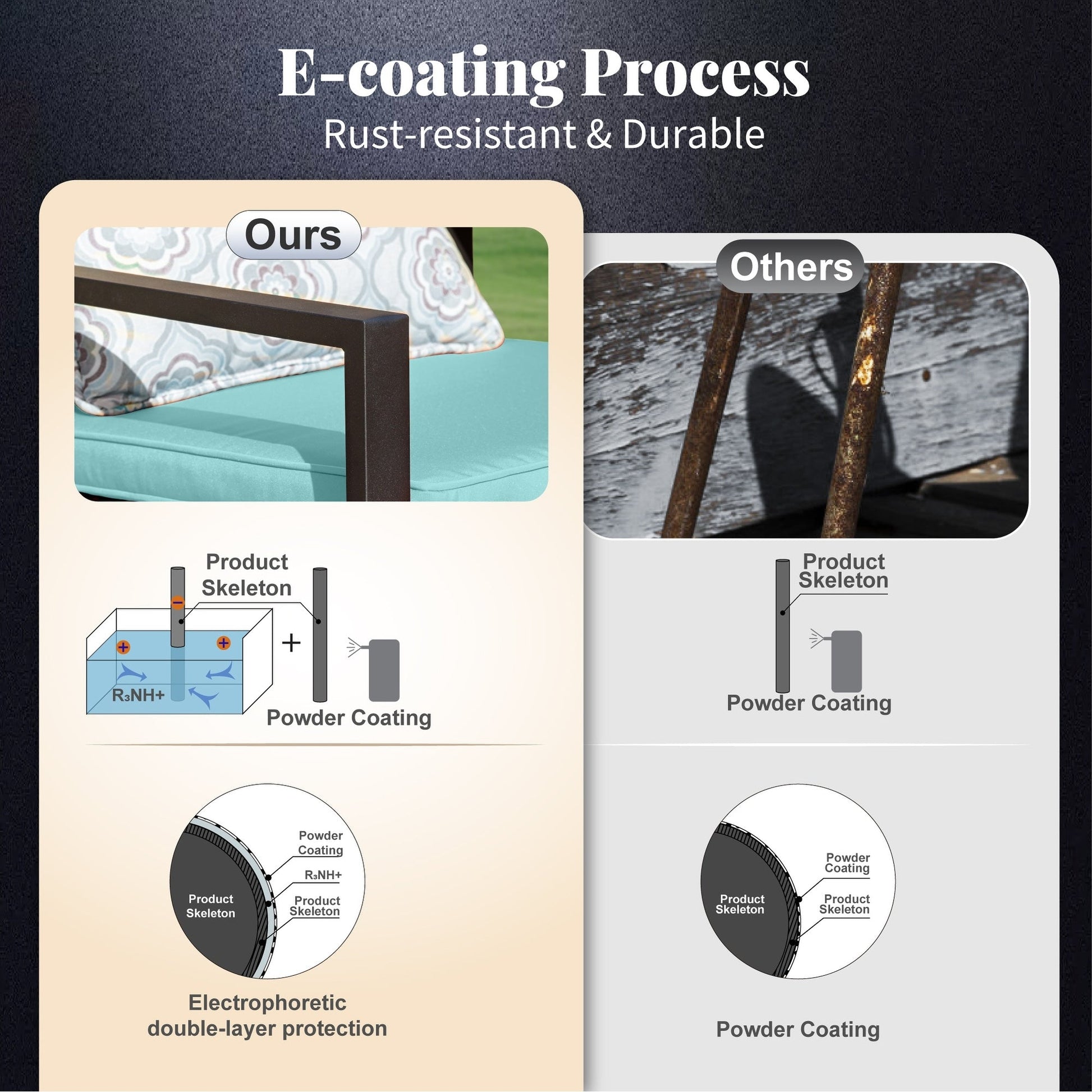 - Sturdy Steel Frame Simple, modern, and stylish. Constructed from the strong powder-coated durable steel frame, creating a whole new look and feel for your patio, pool, garden, outdoor, porch and serves as a relaxing place to enjoy time outdoors.rust and weather-resistant, no special maintenance required, easy to clean, wipe with a wet cloth to keep clean as new.