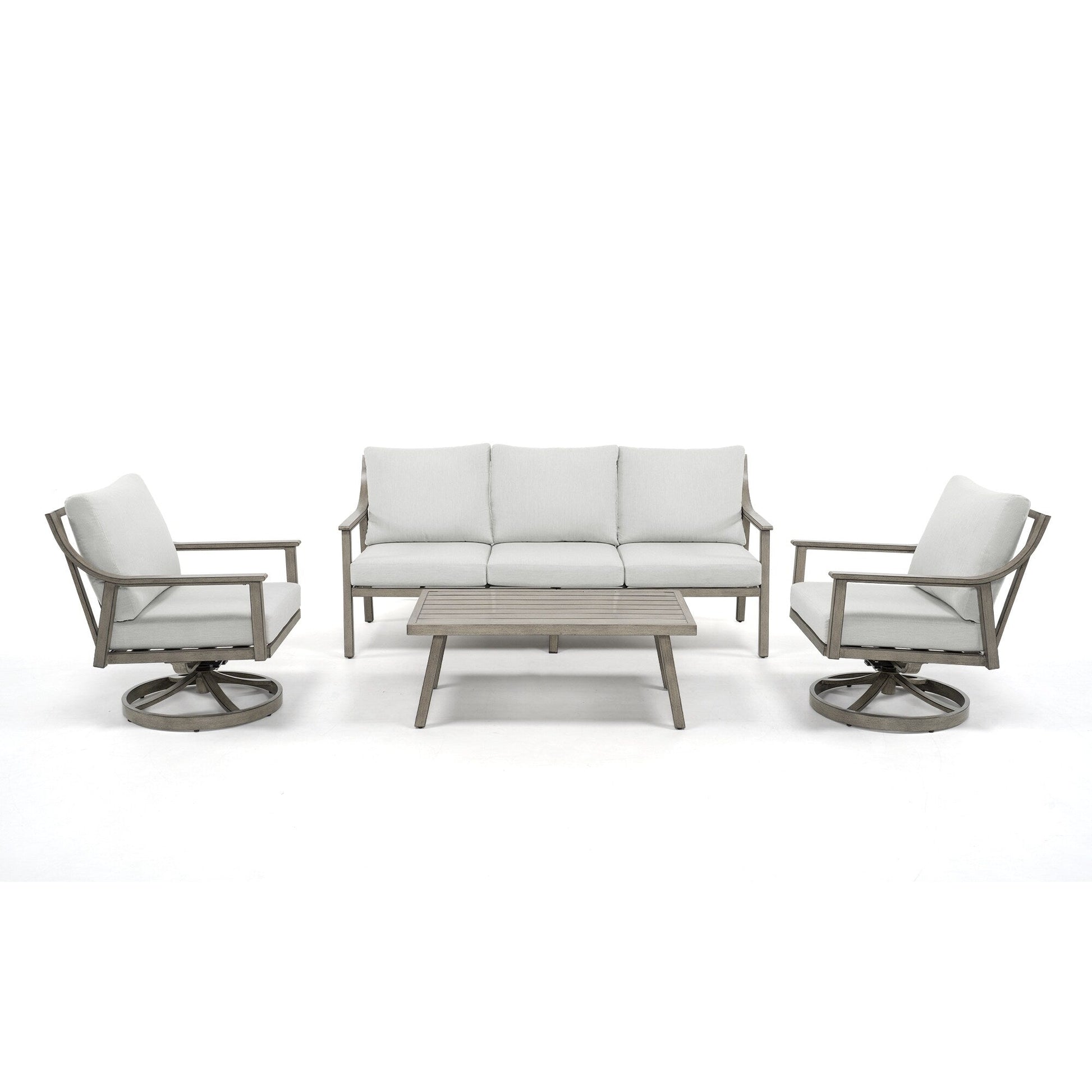5-Person Aluminum Patio Conversation Set with Swivel Chairs, Coffee Table and Cushions