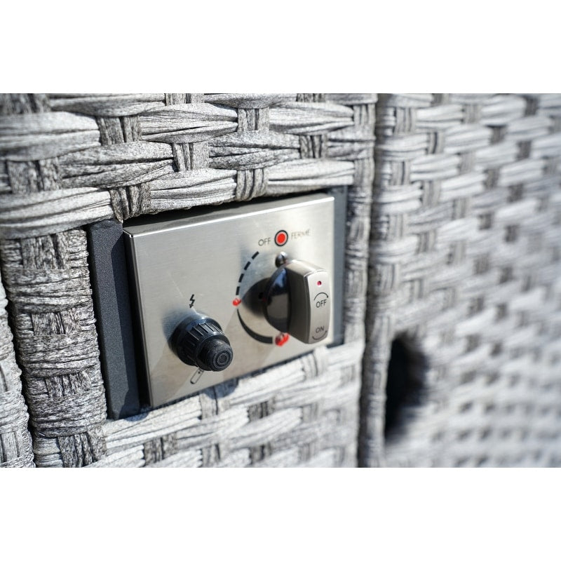 Entertain guests in the open air or plan a family night sure to please with the help of this five-piece sofa sectional set. A robust design is paired with a sleek contemporary silhouette, for an elegant pop of cozy seating ideal for wiling away the hours in the golden sunshine. The included fire table provides plenty of warmth to stay comfortable in the evening. The wide rain cover can be used for protection when the product is not applicable.