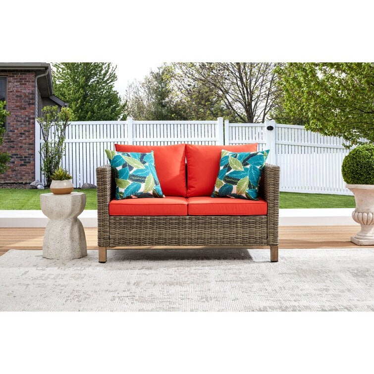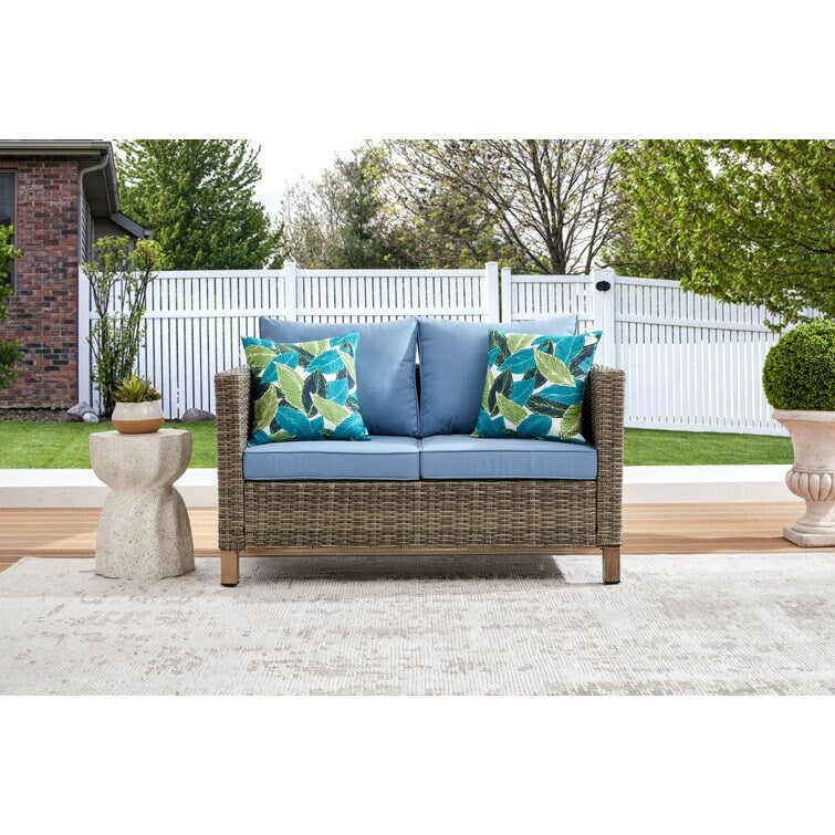 This outdoor loveseat sofa brings a cozy and inviting atmosphere to your patio or backyard. The set includes a loveseat sofa providing seating for up to 2 people. Each piece is crafted with a steel frame wrapped in breezy rattan for a coastal vibe. The weather-resistant cushions are filled with foam and polyester, and they feature removable covers that can be machine-washed for easy care. To maintain the appearance of this seating group, simply store it indoors or cover it when not in use.