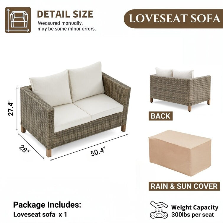 50.4'' Wicker Outdoor Patio Sofa with Cushions