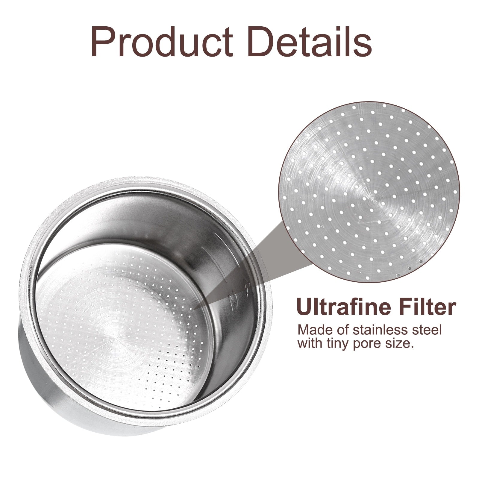 - 【Precision design】Filter basket cup with ultra‑fine filter, the dense filter screen is effective for filtering espresso powder to make sure the delicate taste of coffee, gets smooth and intense espresso or coffee taste more.