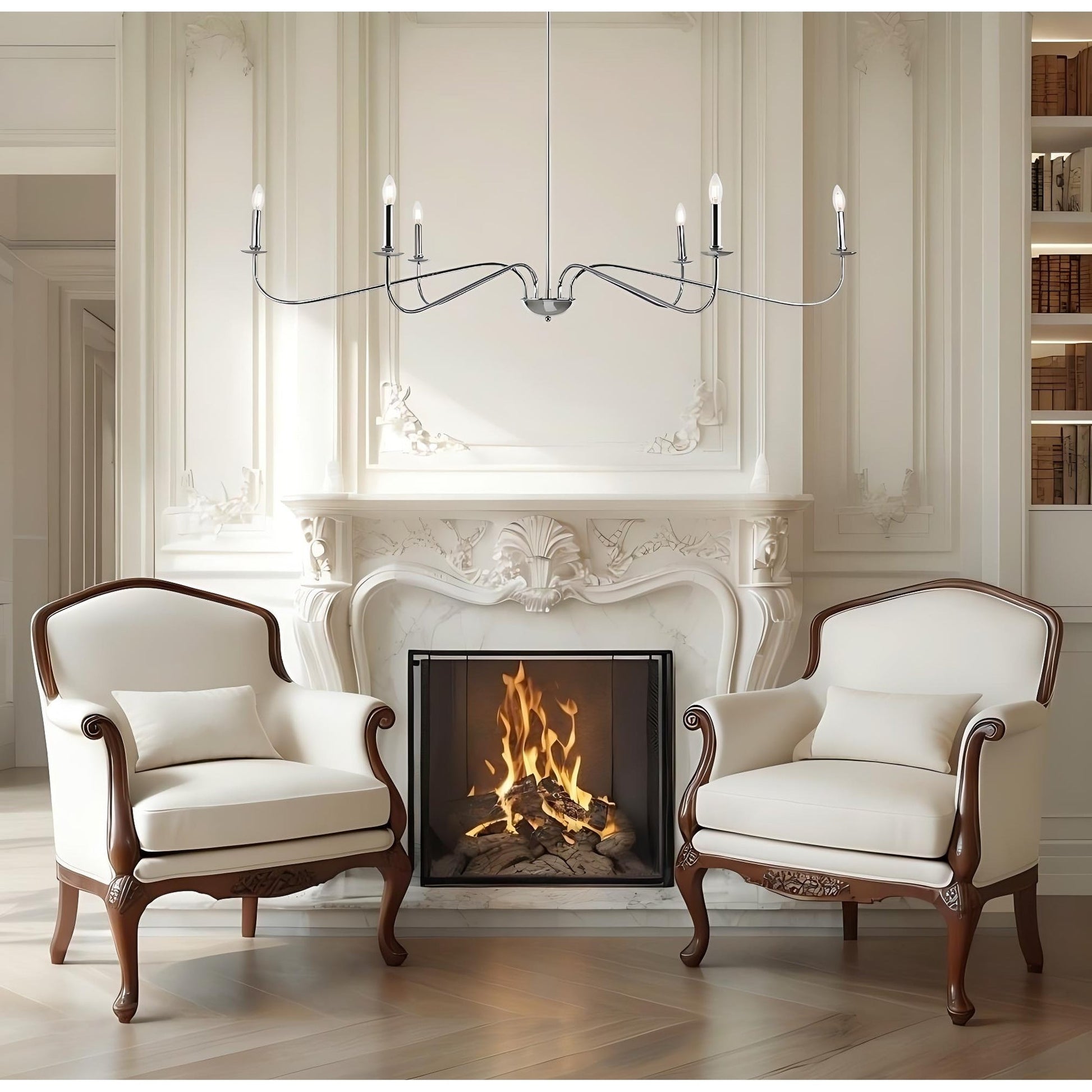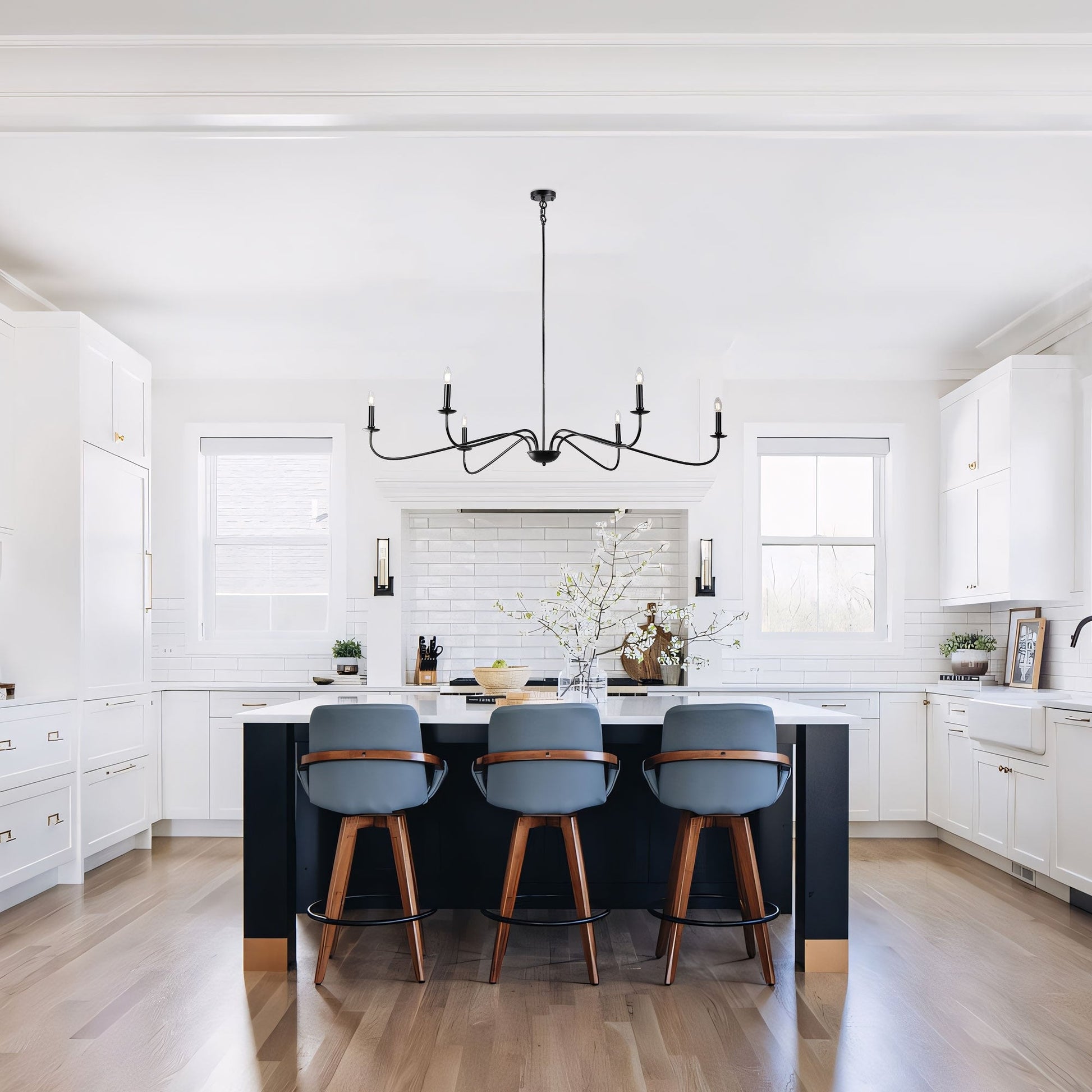 Simple in design, the traditional Candler 6-light chandelier gives your kitchen island, dining room, or entryway an elegant ambiance. Its understated design boasts metal arms that support exposed candelabra bulbs for an old-world look and feel. Additionally, its versatile configuration allows it to be installed on angled surfaces, making this fixture an excellent option for sloped ceilings. Mounting hardware is included for your convenience.
