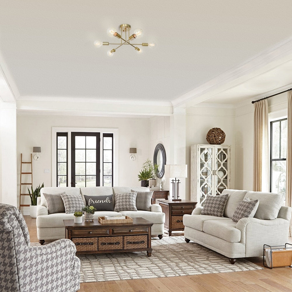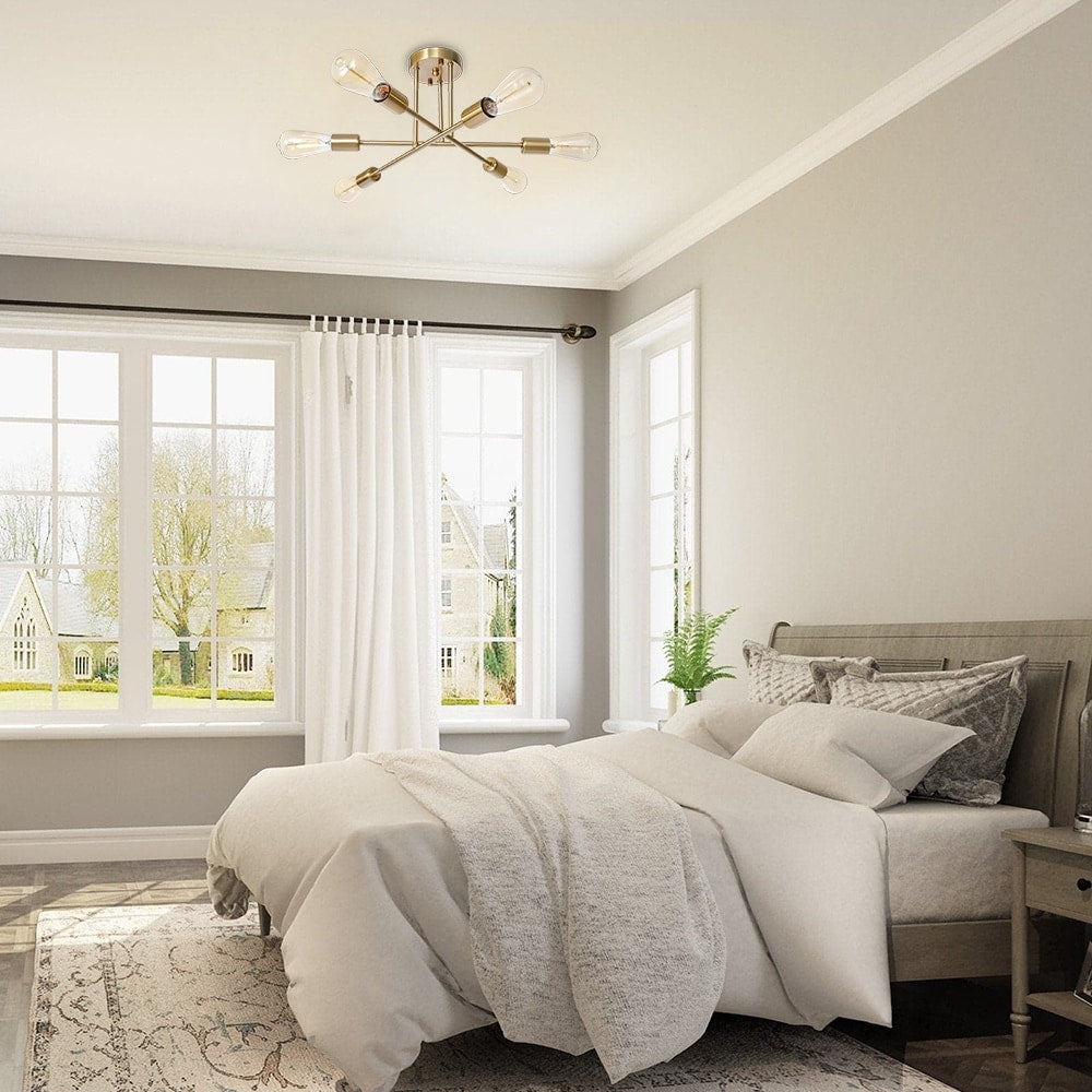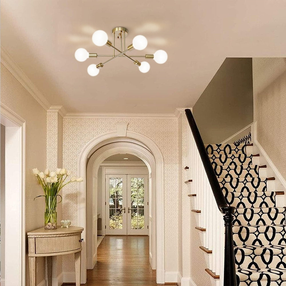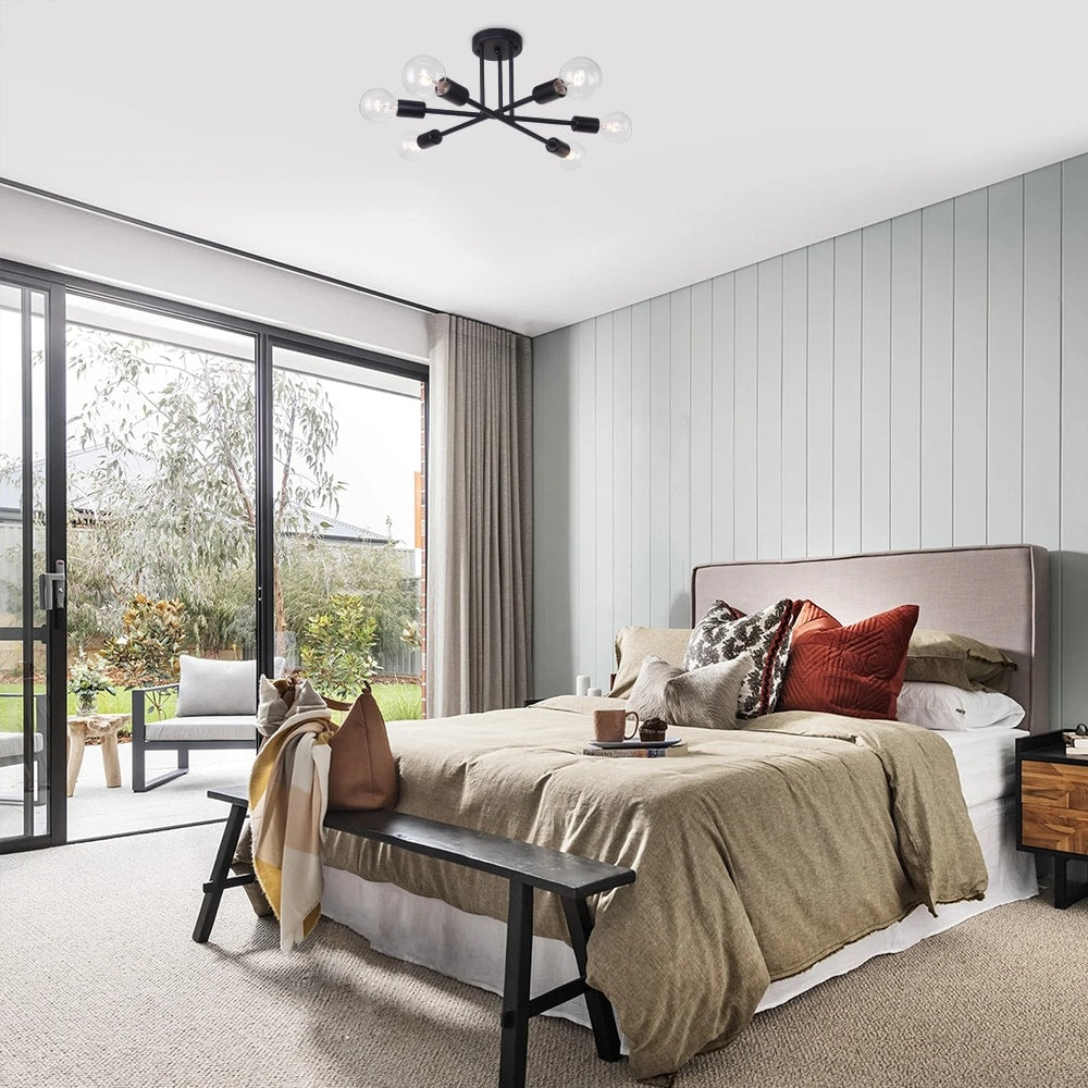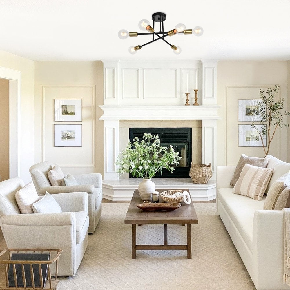 Add a pop of antique style to your living space with this 6-light Sputnik linear semi-flush mount ceiling light fixture. It has a classic industrial black finish and three metal arms that intersect for a mid-century-inspired look, suitable for low ceilings, and emits ample dazzling light overhead like a sun. Each metallic arm ends with six E26 base 40-watt max bulbs (not included) which can be compatible with a standard dimmer switch. Ideal for indoor use or any other location.