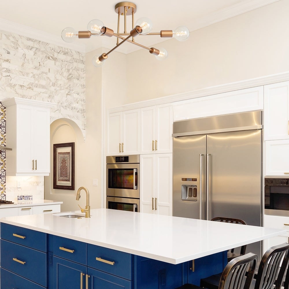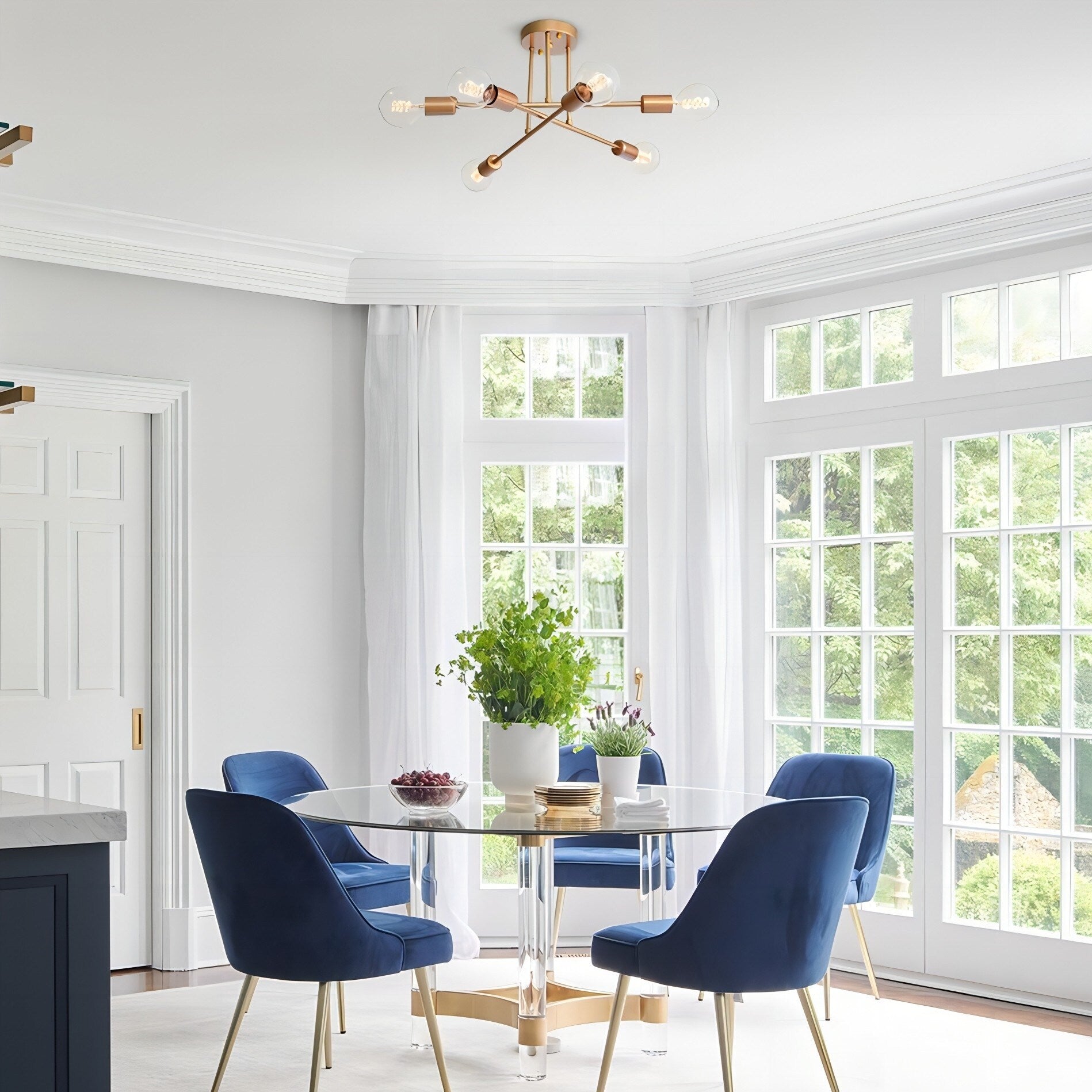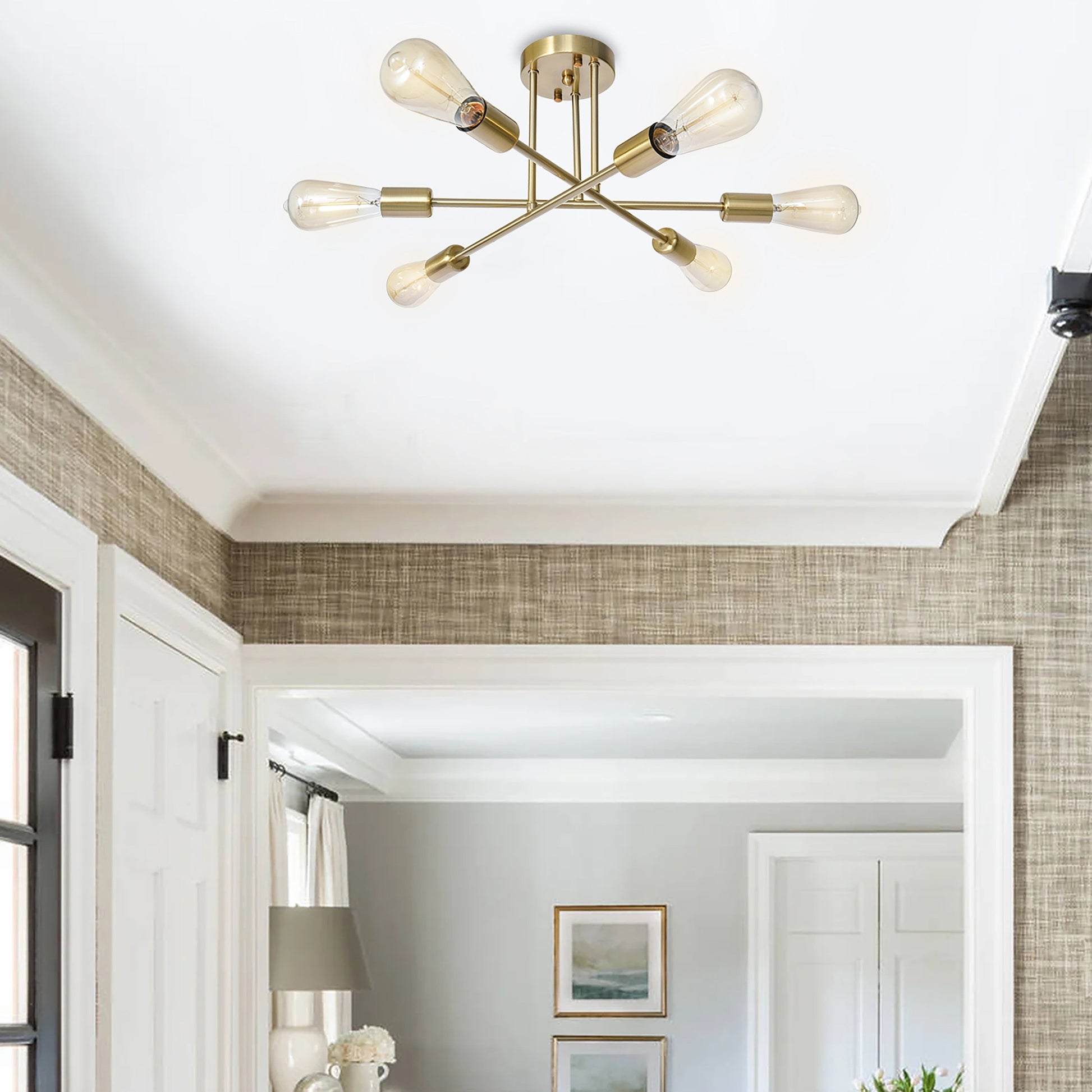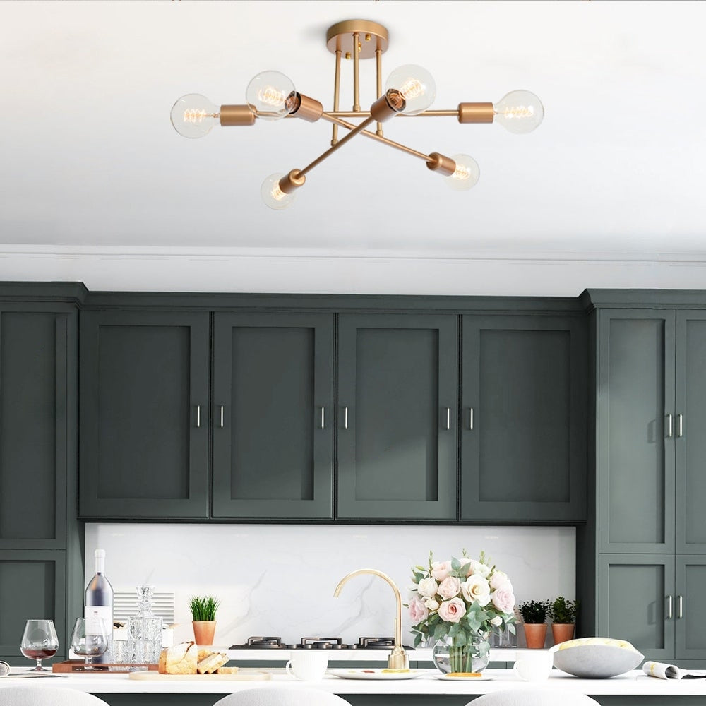 6-Light Modern Industrial Linear Sputnik Branch Semi-Flush Mount Light Ceiling Light