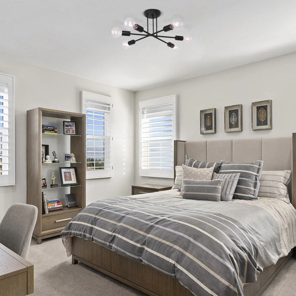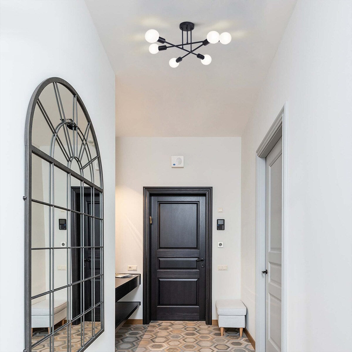 6 - Light Modern Metal Black Sputnik Semi-Flush Mount Ceiling Light
