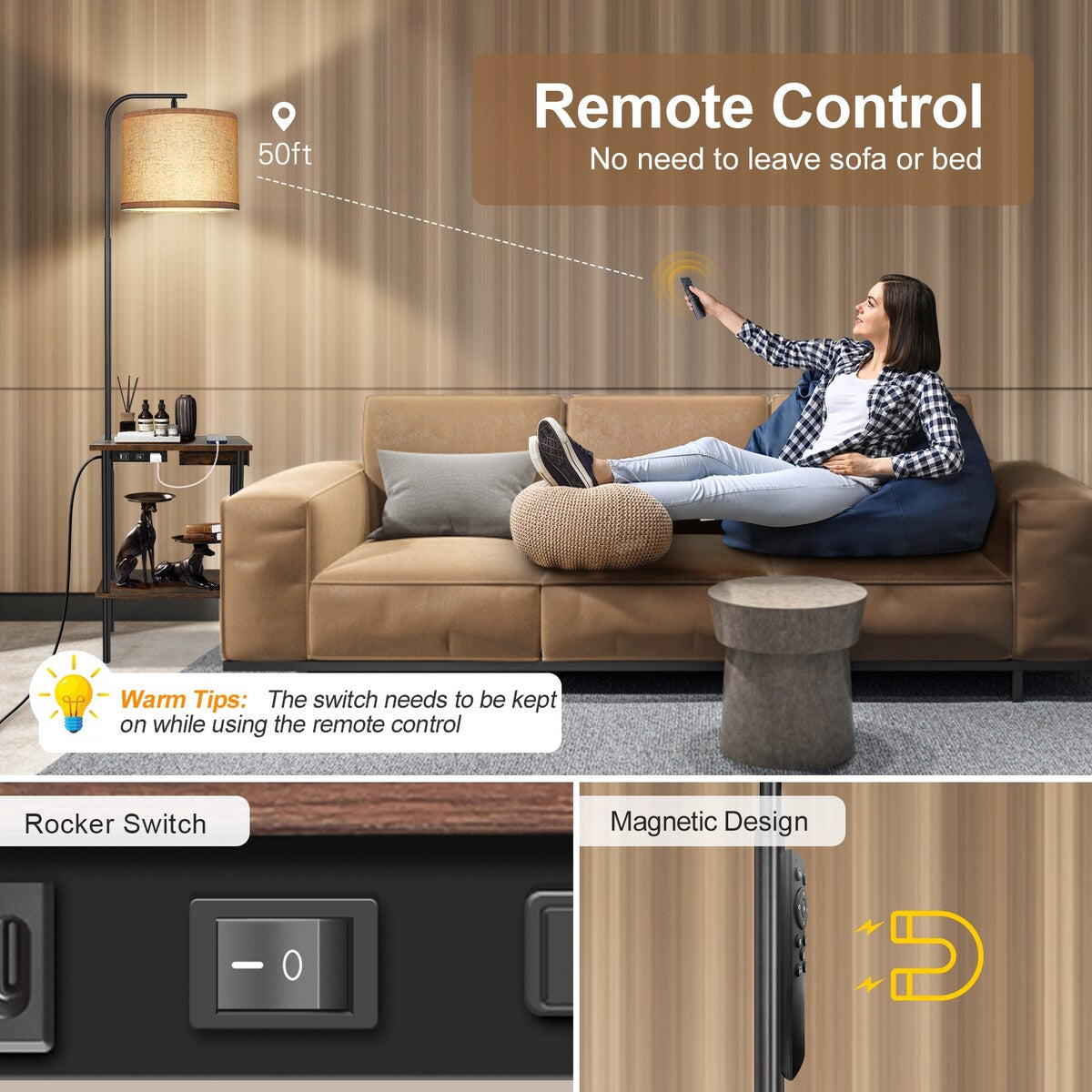 This floor lamp with magazine table is dual-purpose. It can not only place items on the table, but also provide lighting for reading.Paired with a portable magnetic remote control, it can be attached anywhere and can be adjusted to your favorite color temperature and brightness anytime, anywhere. It has 5 built-in scene modes for easy selection.