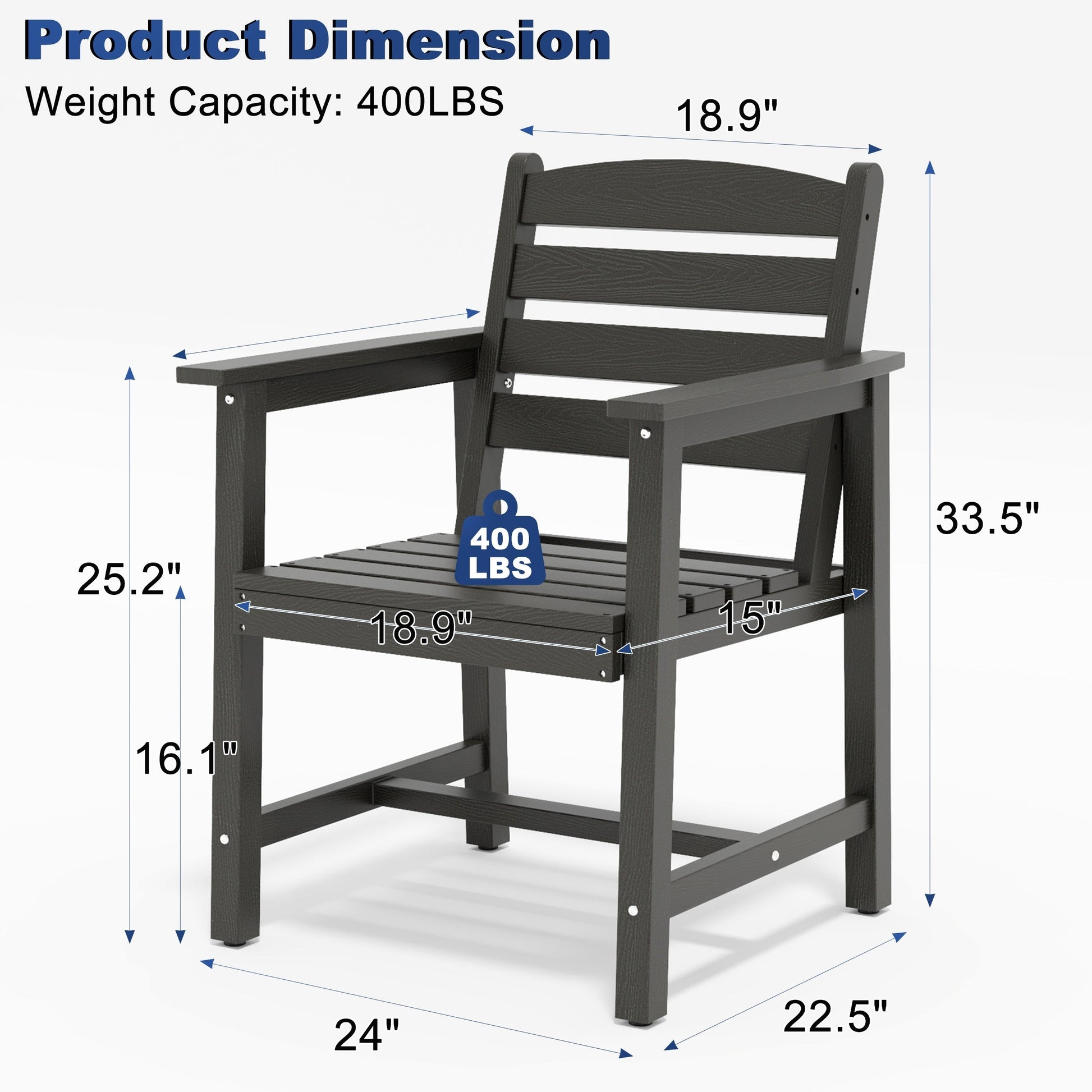 - Chairs Dimensions: 24''W x 22.5''D x 33.5''H