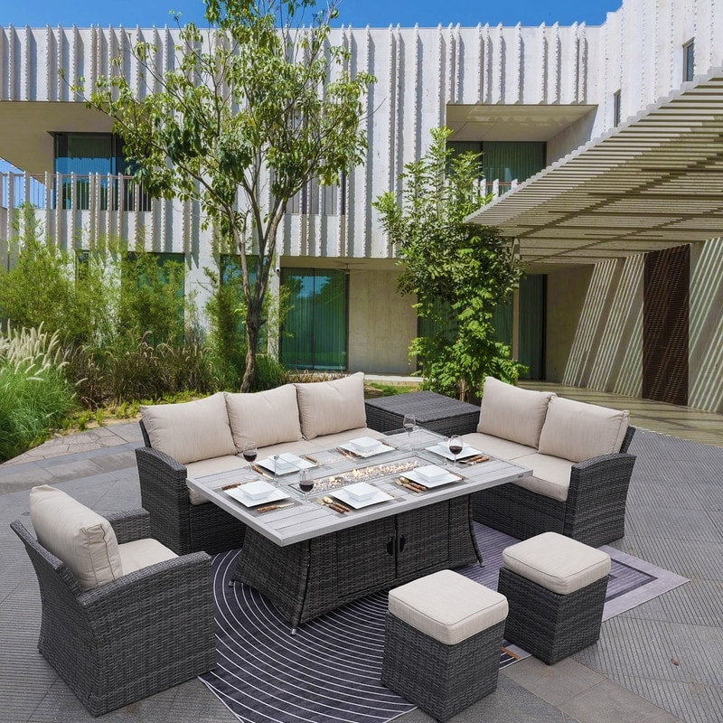 7-Piece Patio Conversational Sofa Set with Aluminium Firepit Table