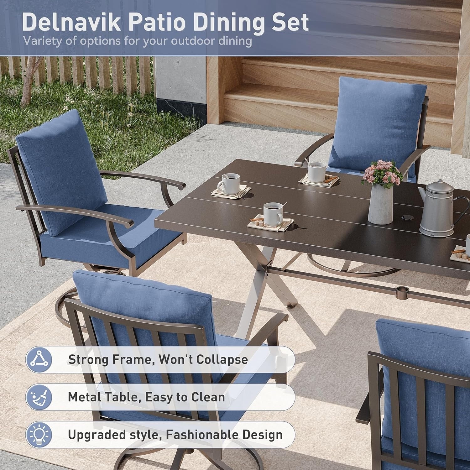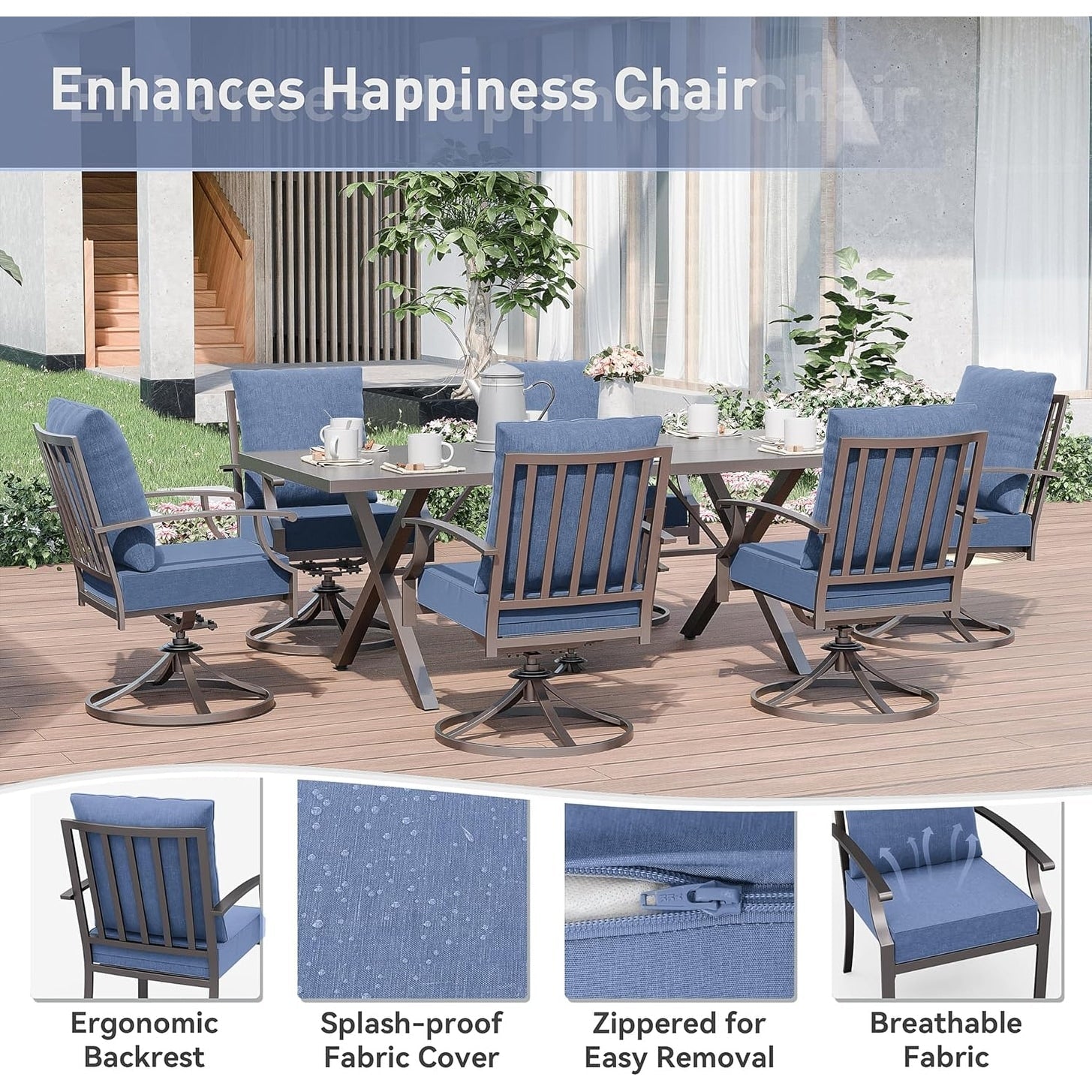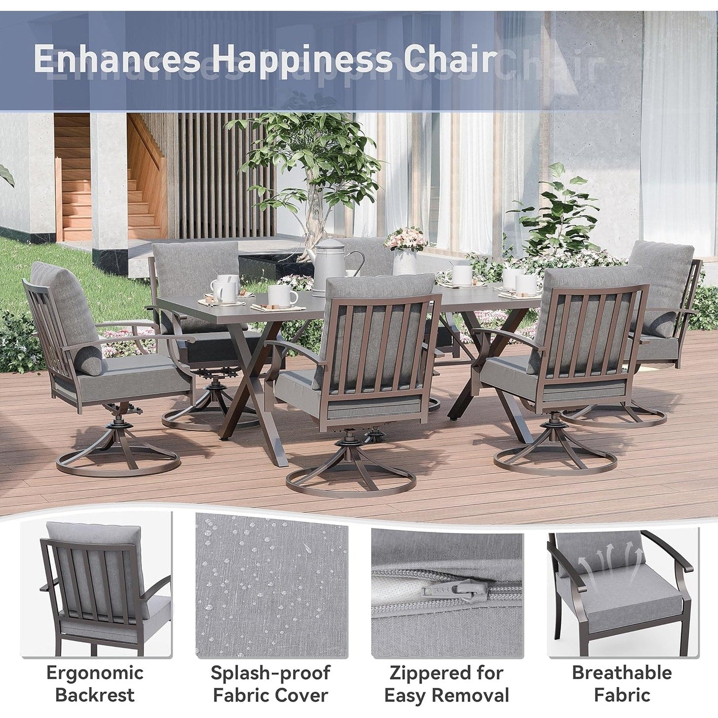 7-Pieces Outdoor Dining Set with X-Leg Table and Swivel Chairs