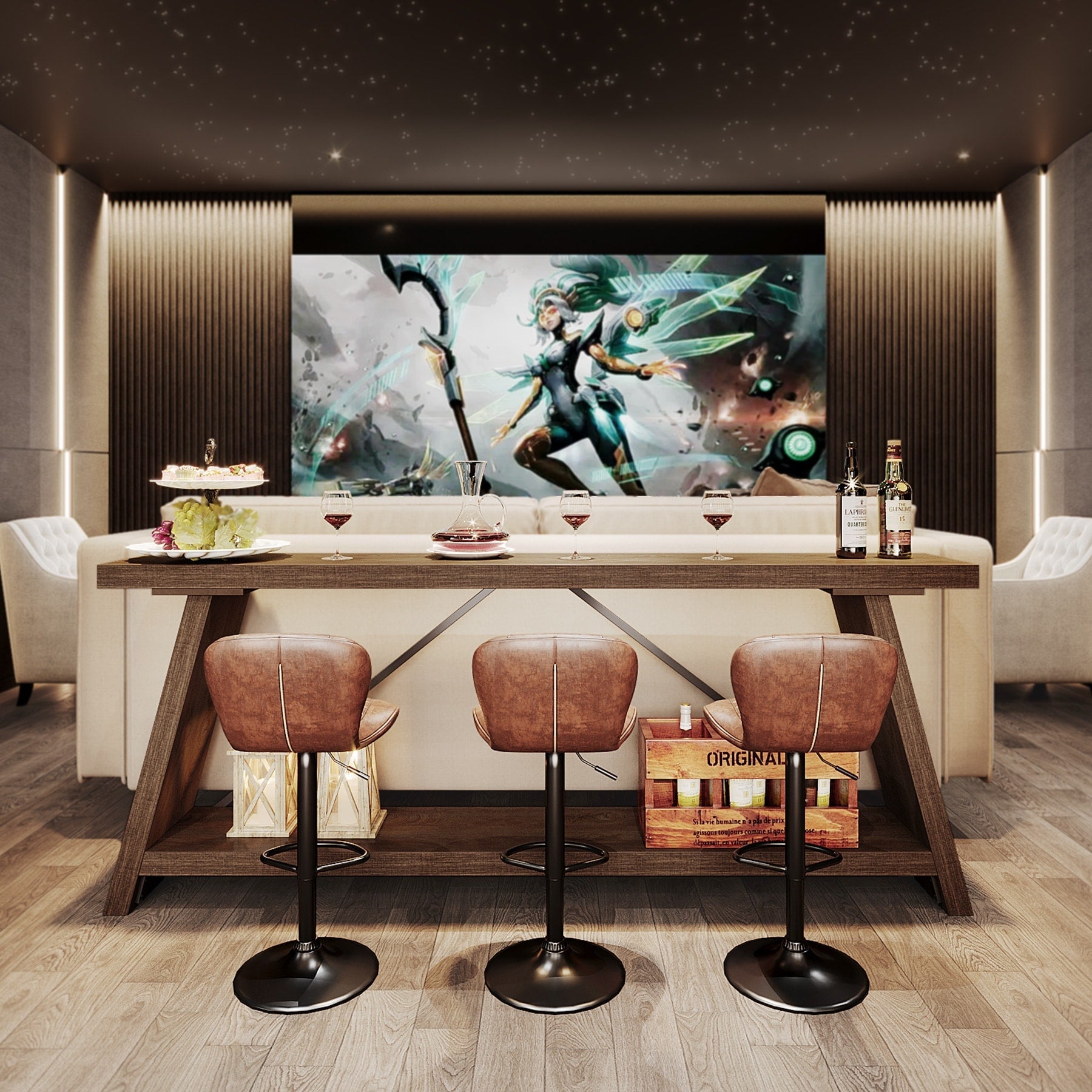 This rustic brown sofa table enhances any decor and showcases your treasured items with ample two-tier storage. With a narrow, elongated design, this table is a versatile addition, perfect as a sofa table, entryway console, or TV stand. Constructed from high-quality MDF and robust metal, it ensures long-lasting durability.