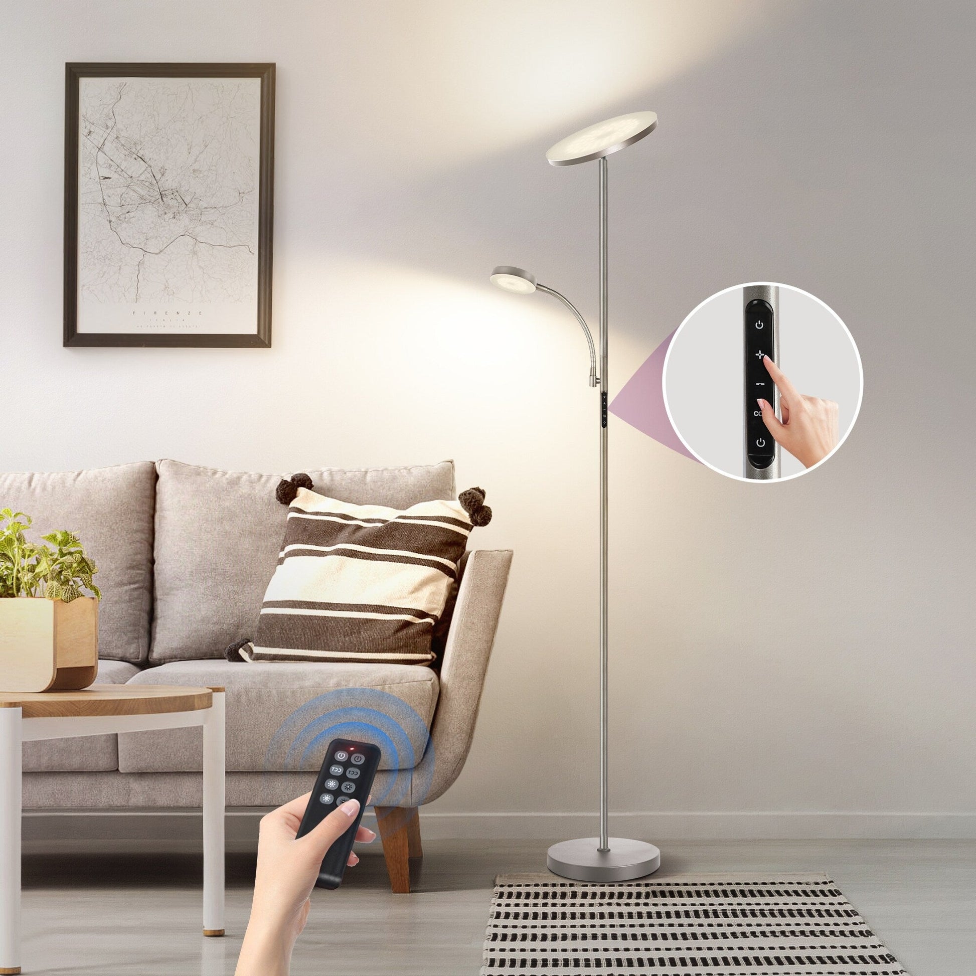 70 LED Torchiere Floor Lamp with Touch Control and Remote - N/A
