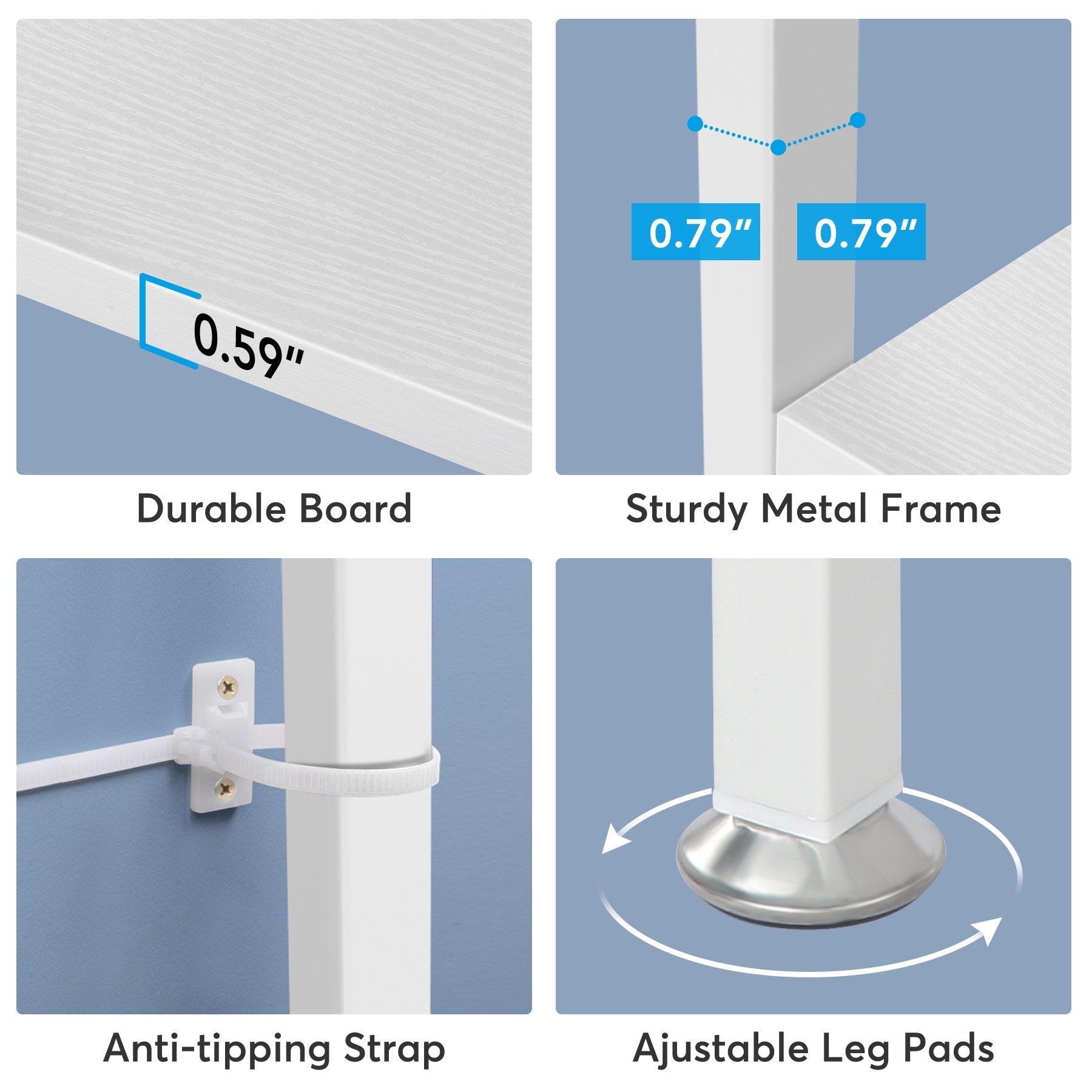 - Stable Structure: Made of high quality environmentally friendly E1 Particleboard and thickened stainless steel tubes frame, our bookcases and bookshelves are super sturdy, stable and durable, and with high load bearing capacity up to 300lb. Staggered steel back support added to strengthen the sturdiness and firmness of the display stand.