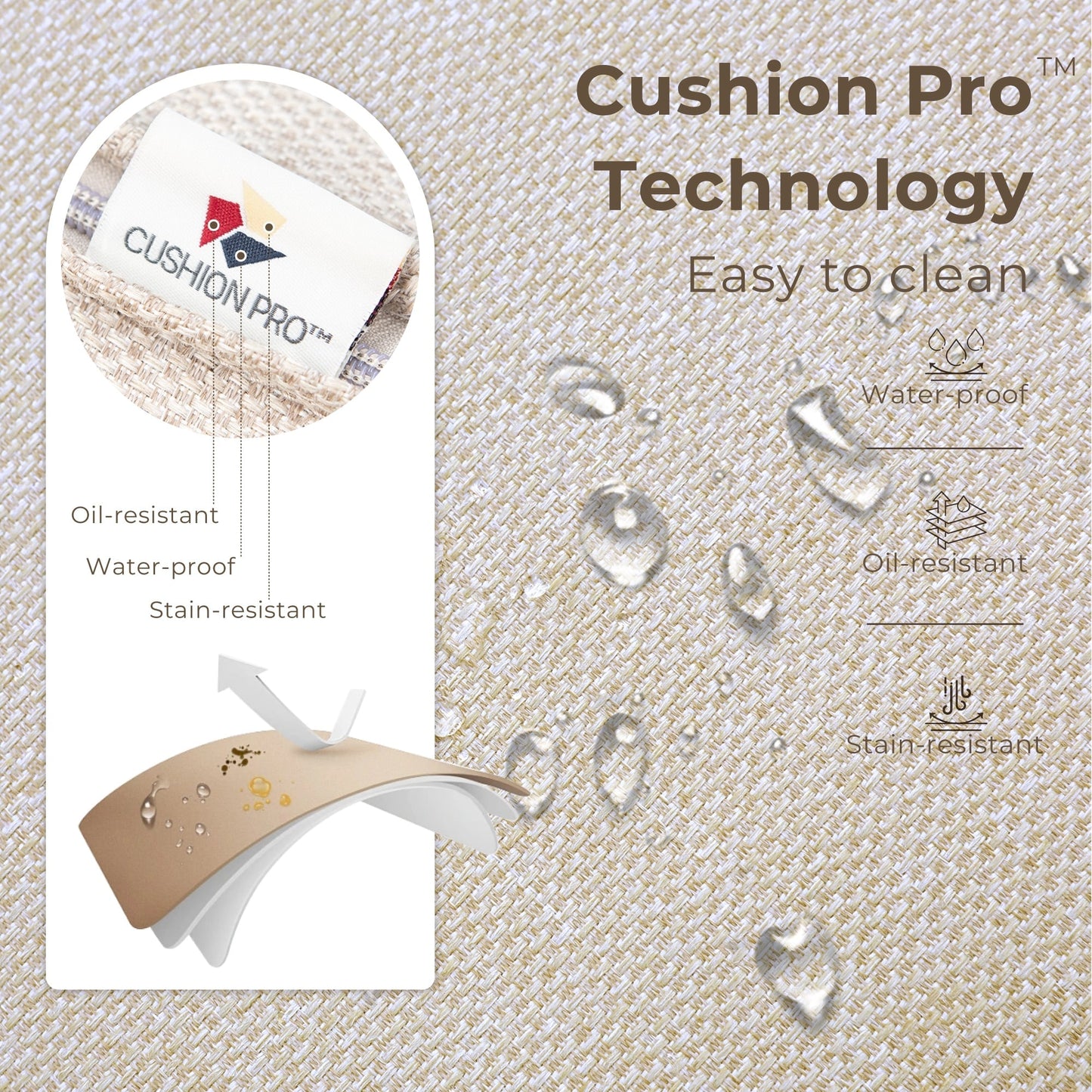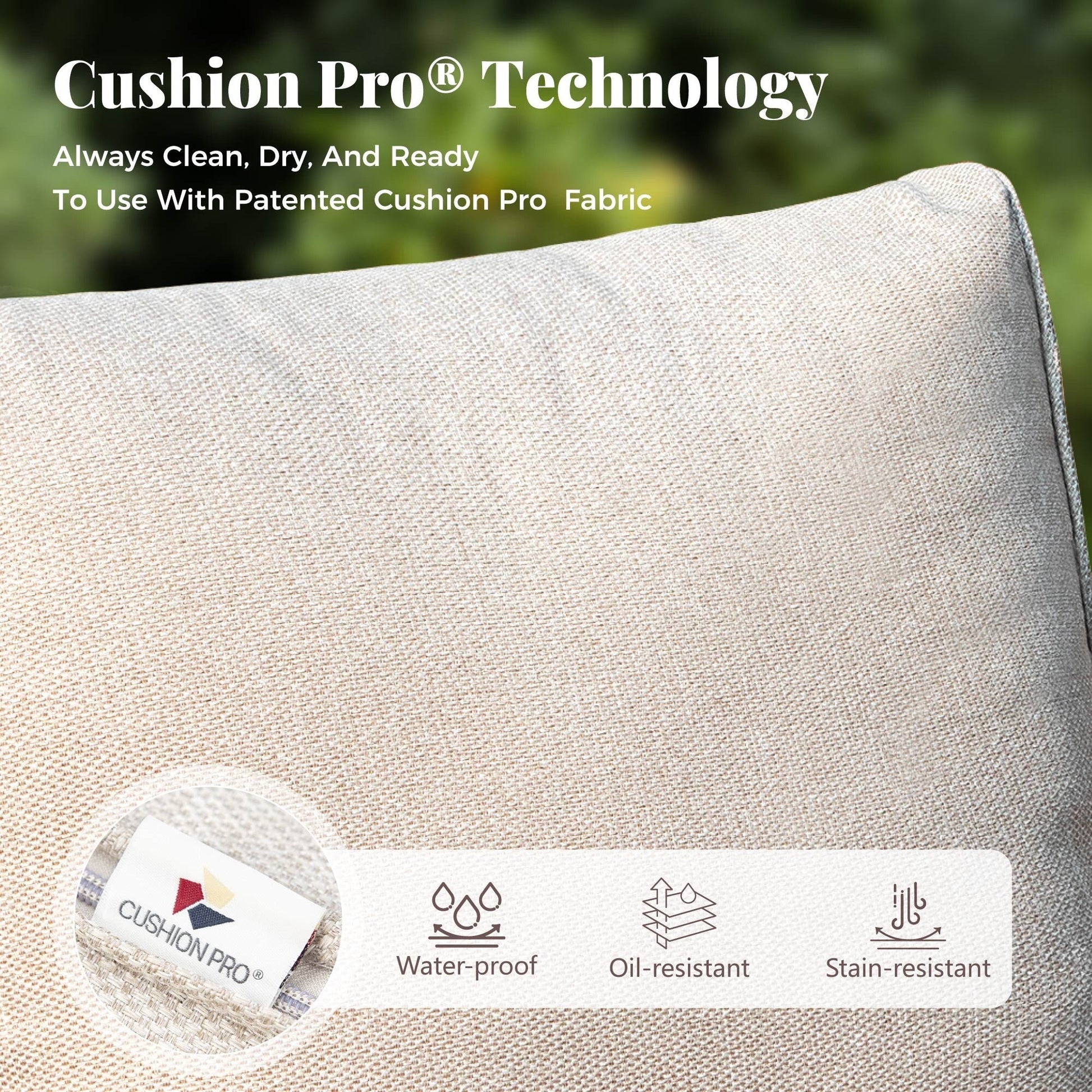 - Patent CushionPro outdoor fabric with water-repellent, soil-release, and stain-resistant properties, making it easy to clean with just a sponge and cleaning spray?